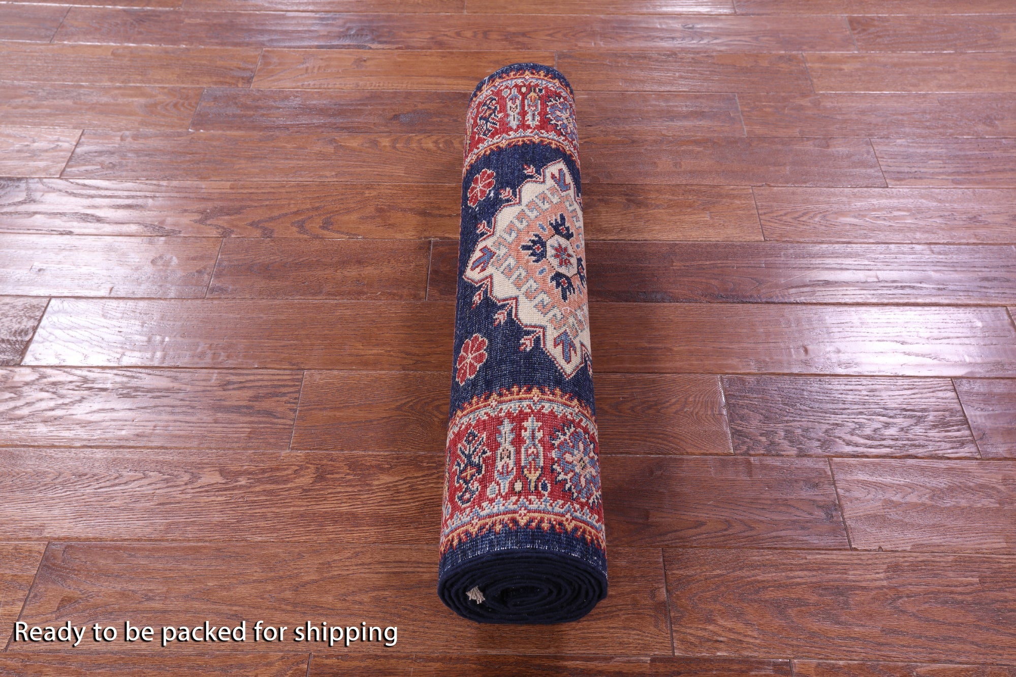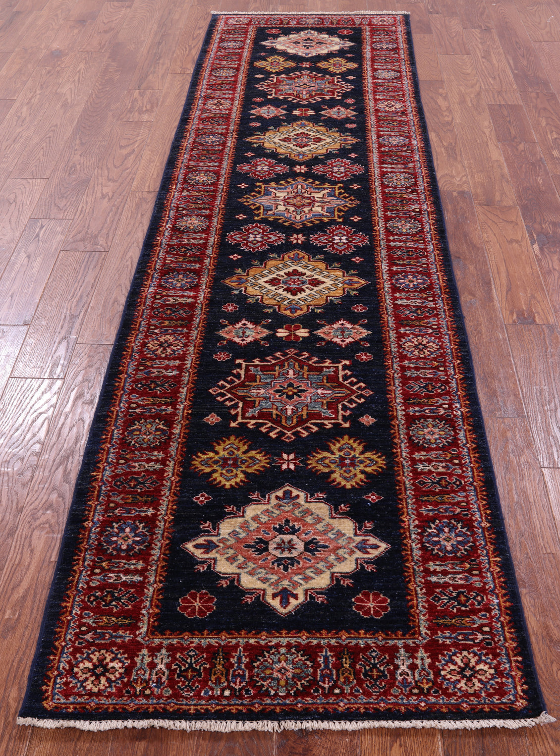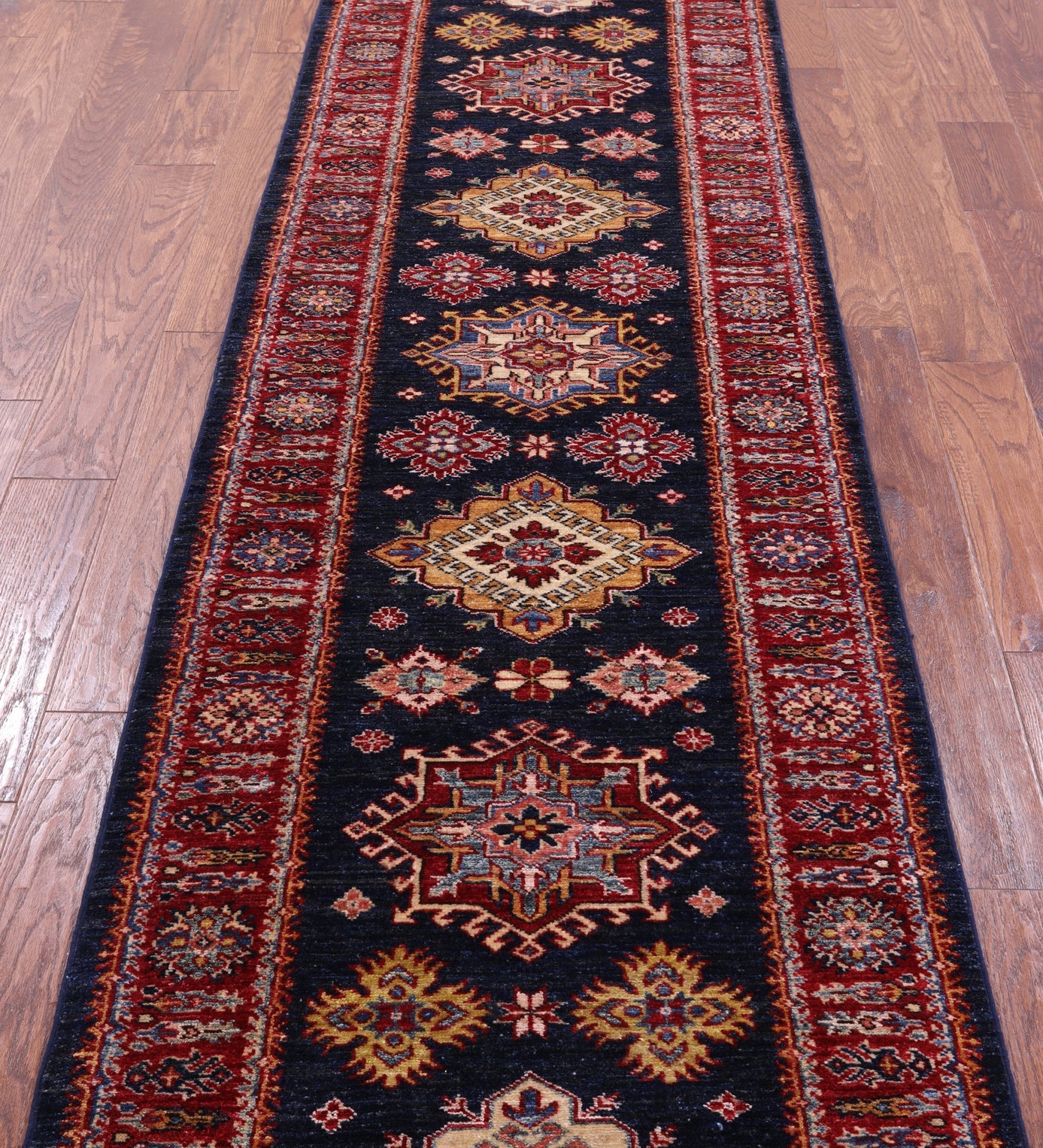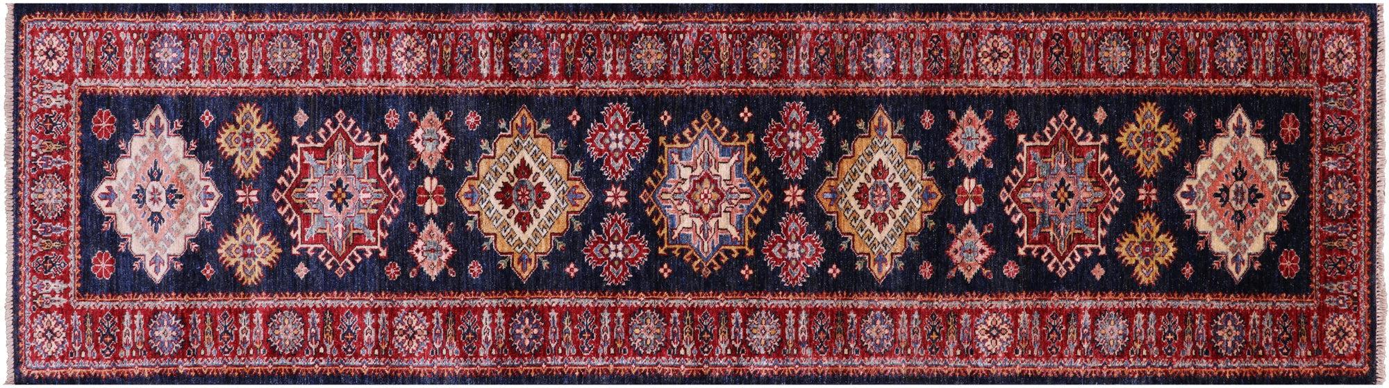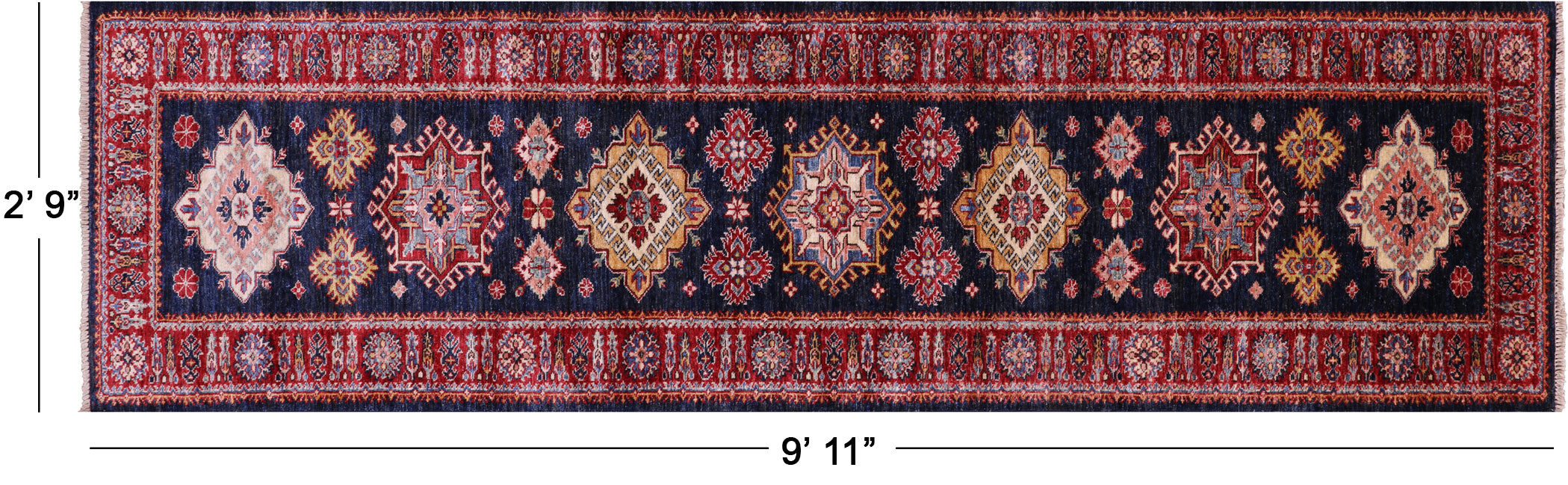 Blue 2' 9" X 9' 11" Runner Super Kazak Handmade Wool Rug - Q18210