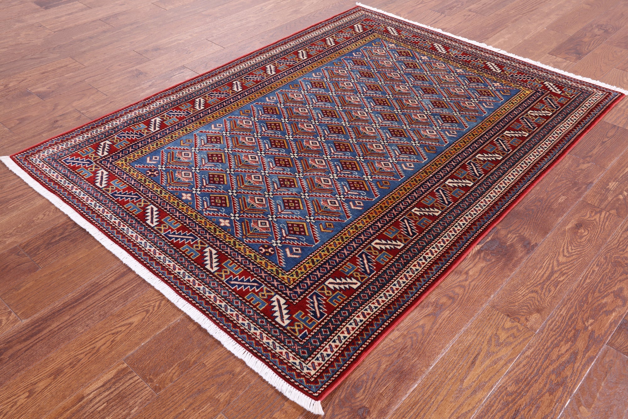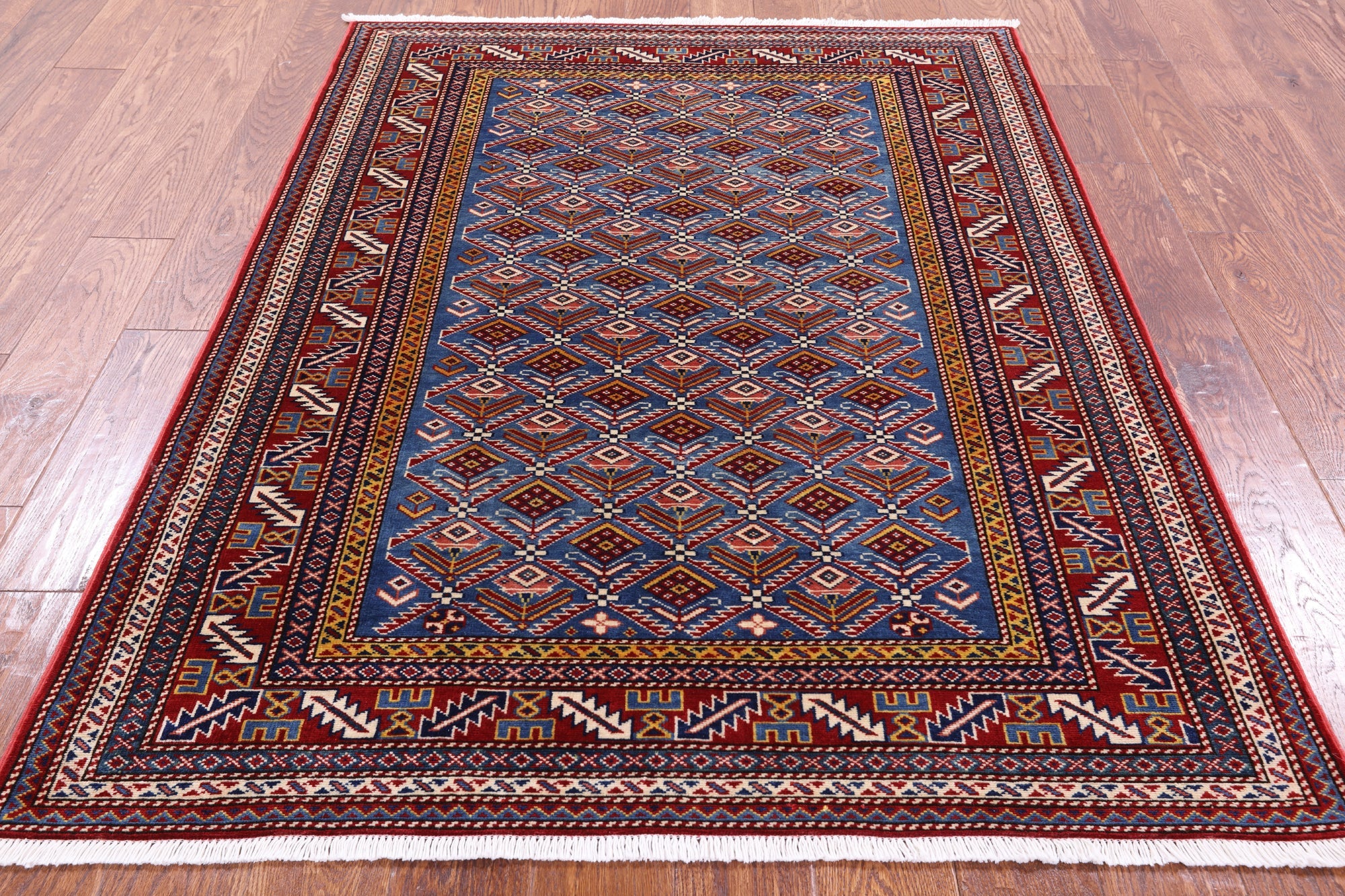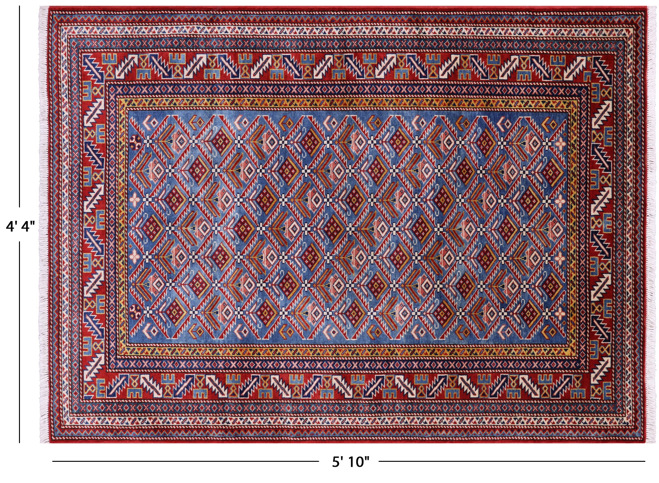 Blue Shirvan Hand Knotted Wool Rug 4' 4" X 5' 10" - Q6775