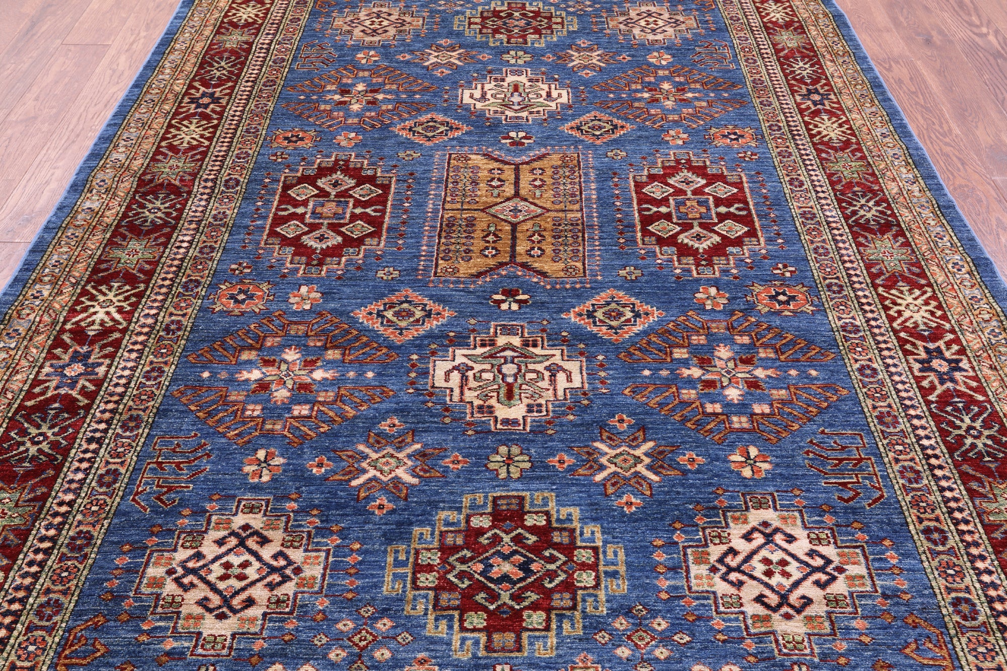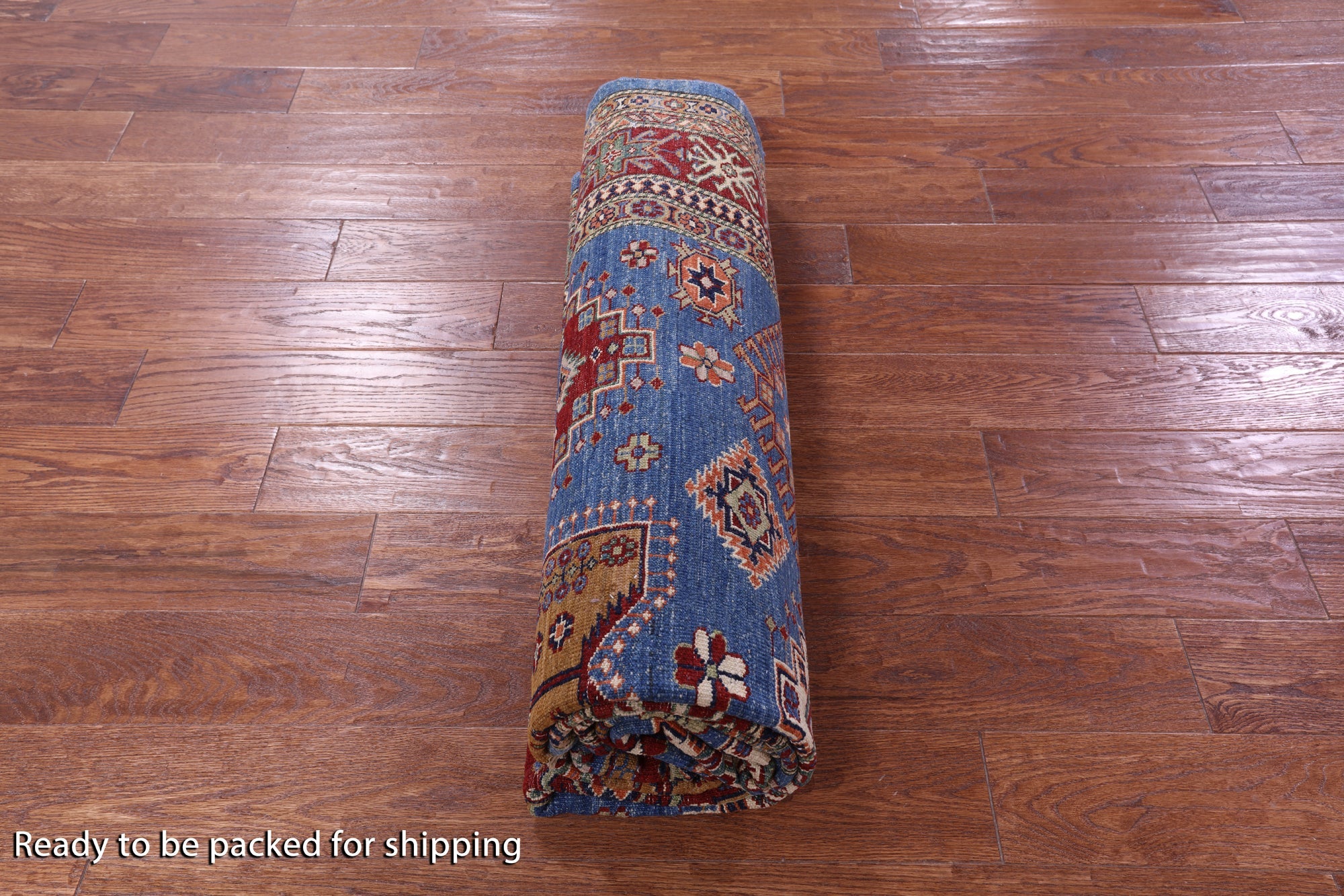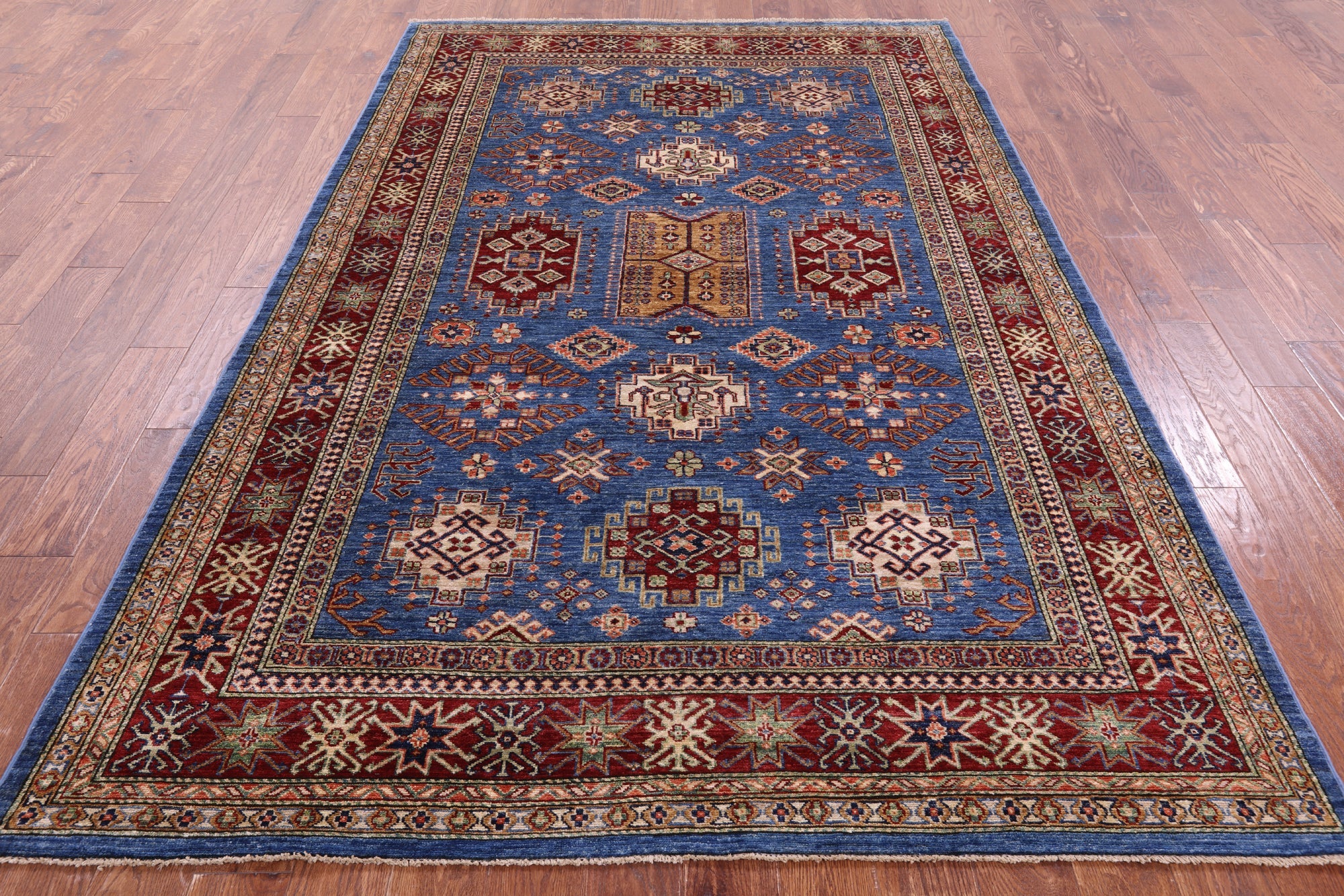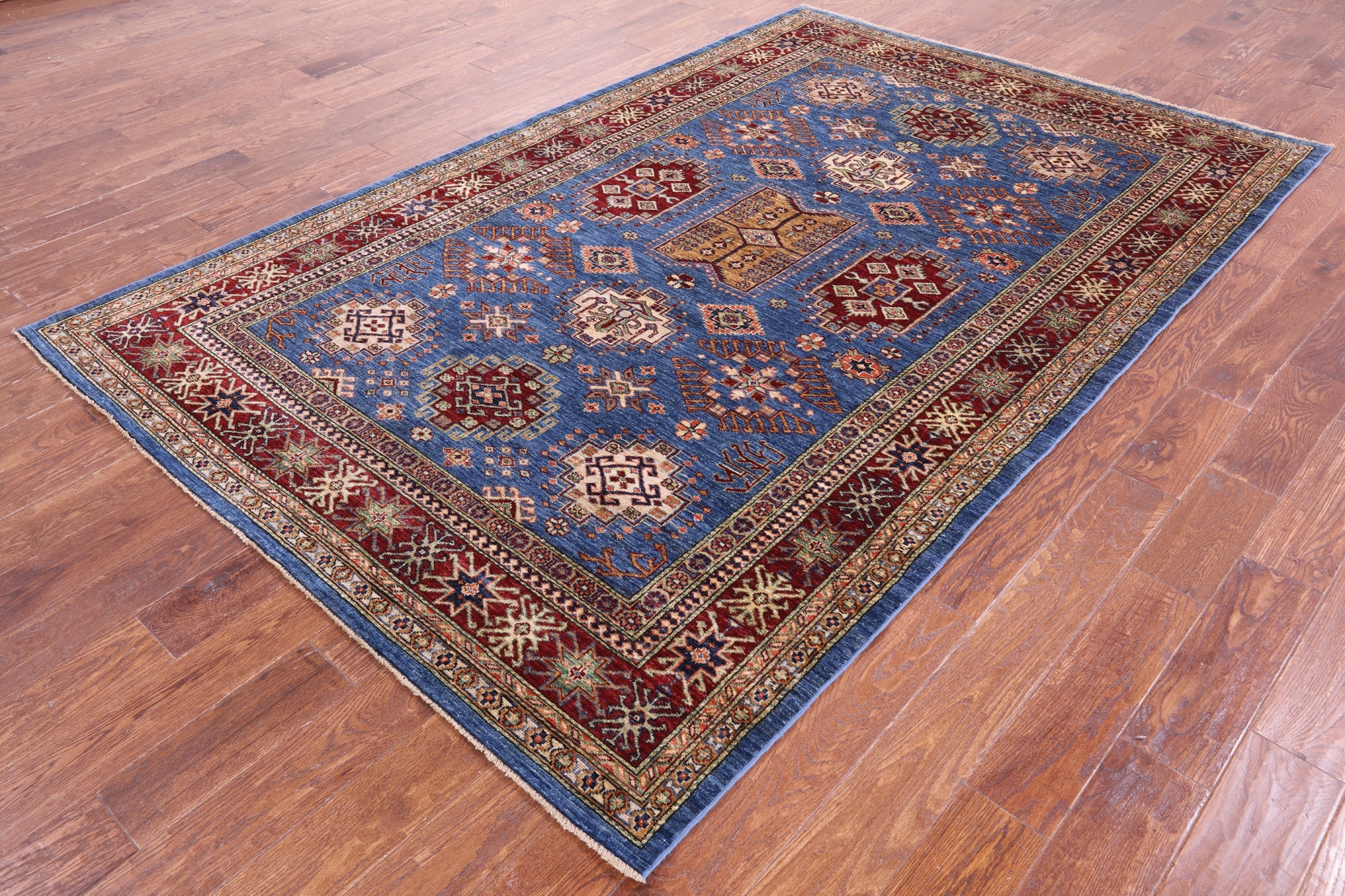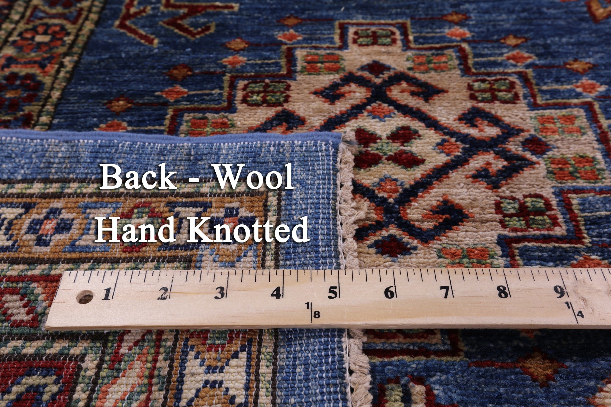 Blue Super Kazak Geometric Handmade Wool Rug 6' 0" X 9' 1" - Q18246 is backordered and will ship as soon as it is back in stock.