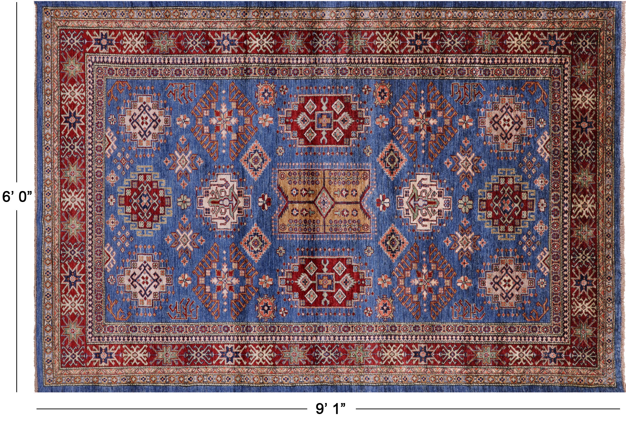 Blue Super Kazak Geometric Handmade Wool Rug 6' 0" X 9' 1" - Q18246