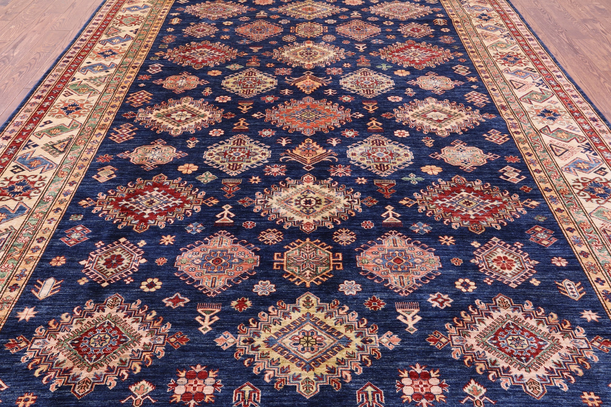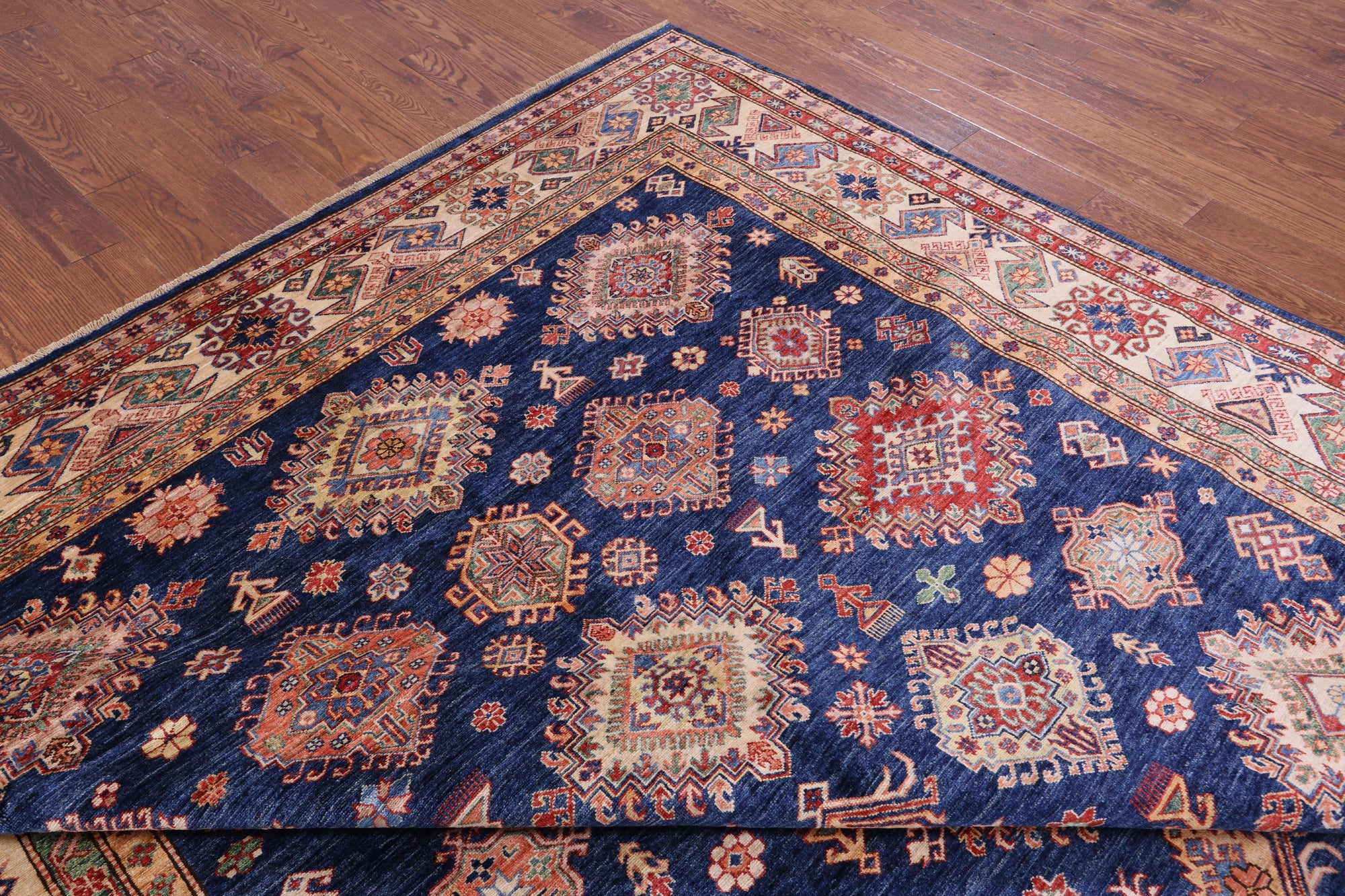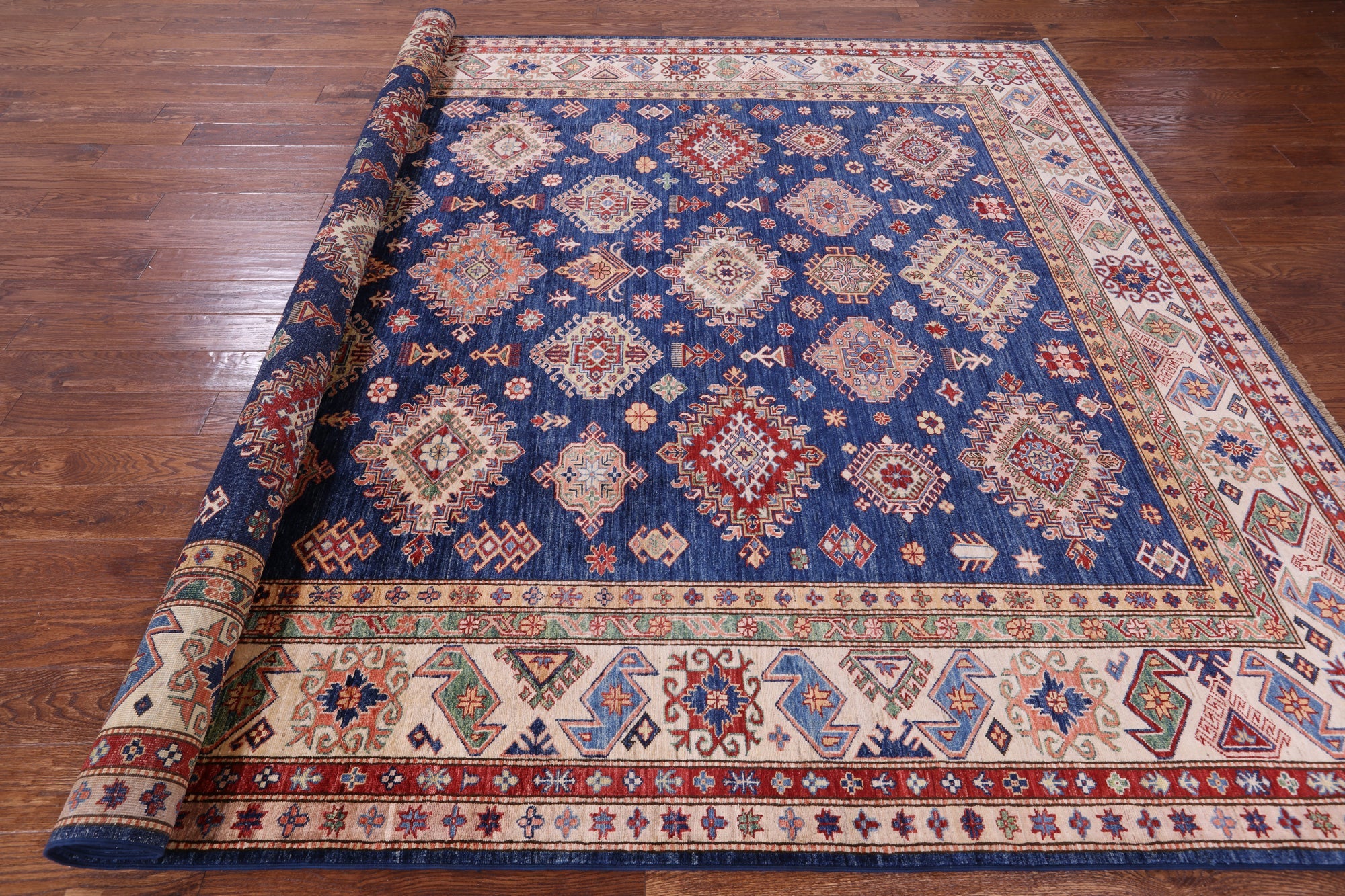 Blue Super Kazak Hand Knotted Geometric Rug 8' 11" X 12' 4" - Q10616 is backordered and will ship as soon as it is back in stock.