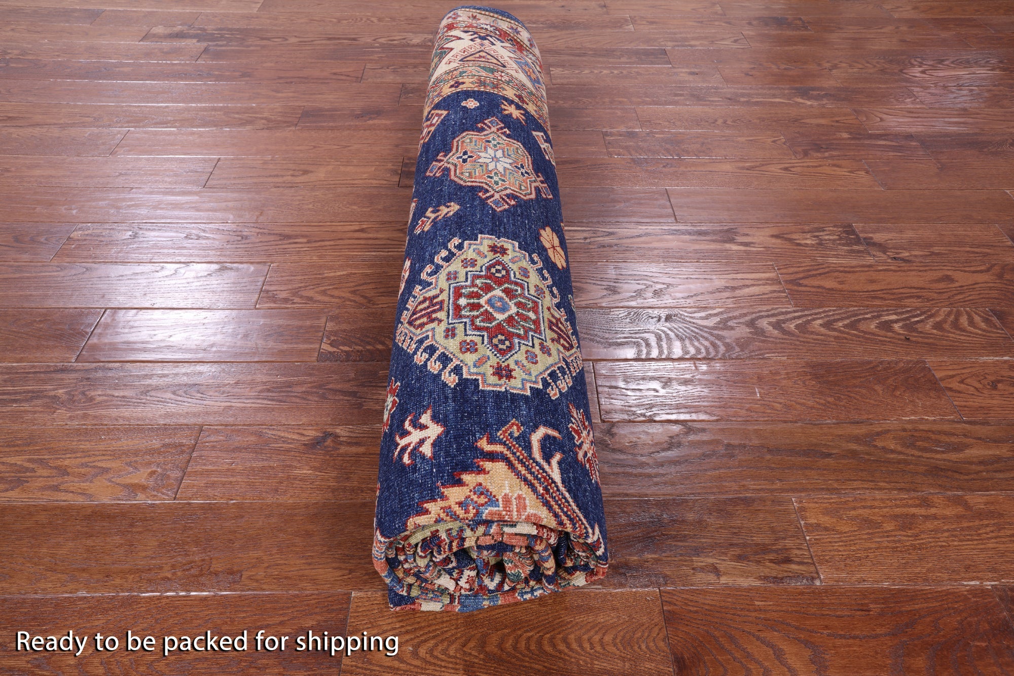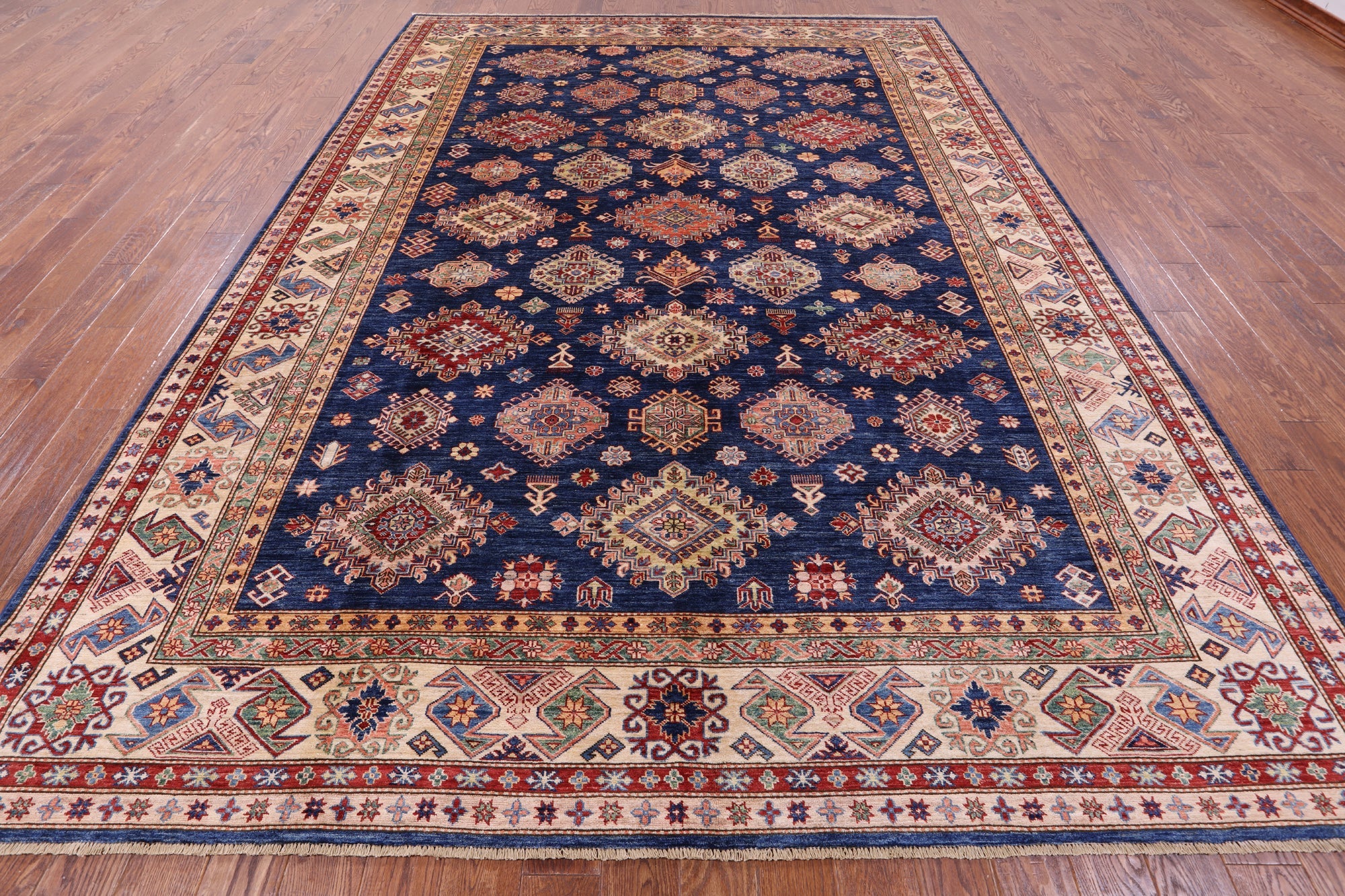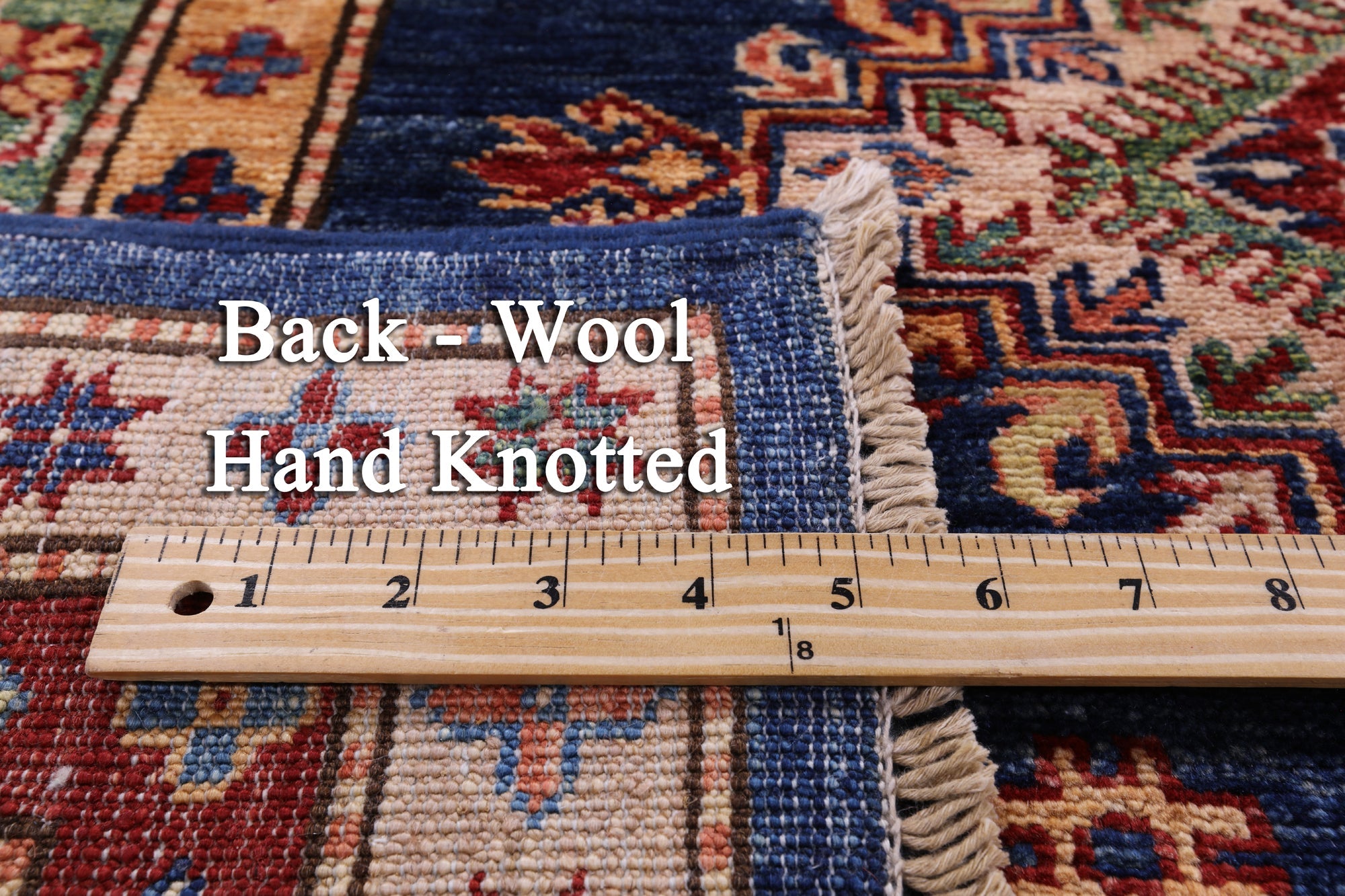 Blue Super Kazak Hand Knotted Geometric Rug 8' 11" X 12' 4" - Q10616 is backordered and will ship as soon as it is back in stock.
