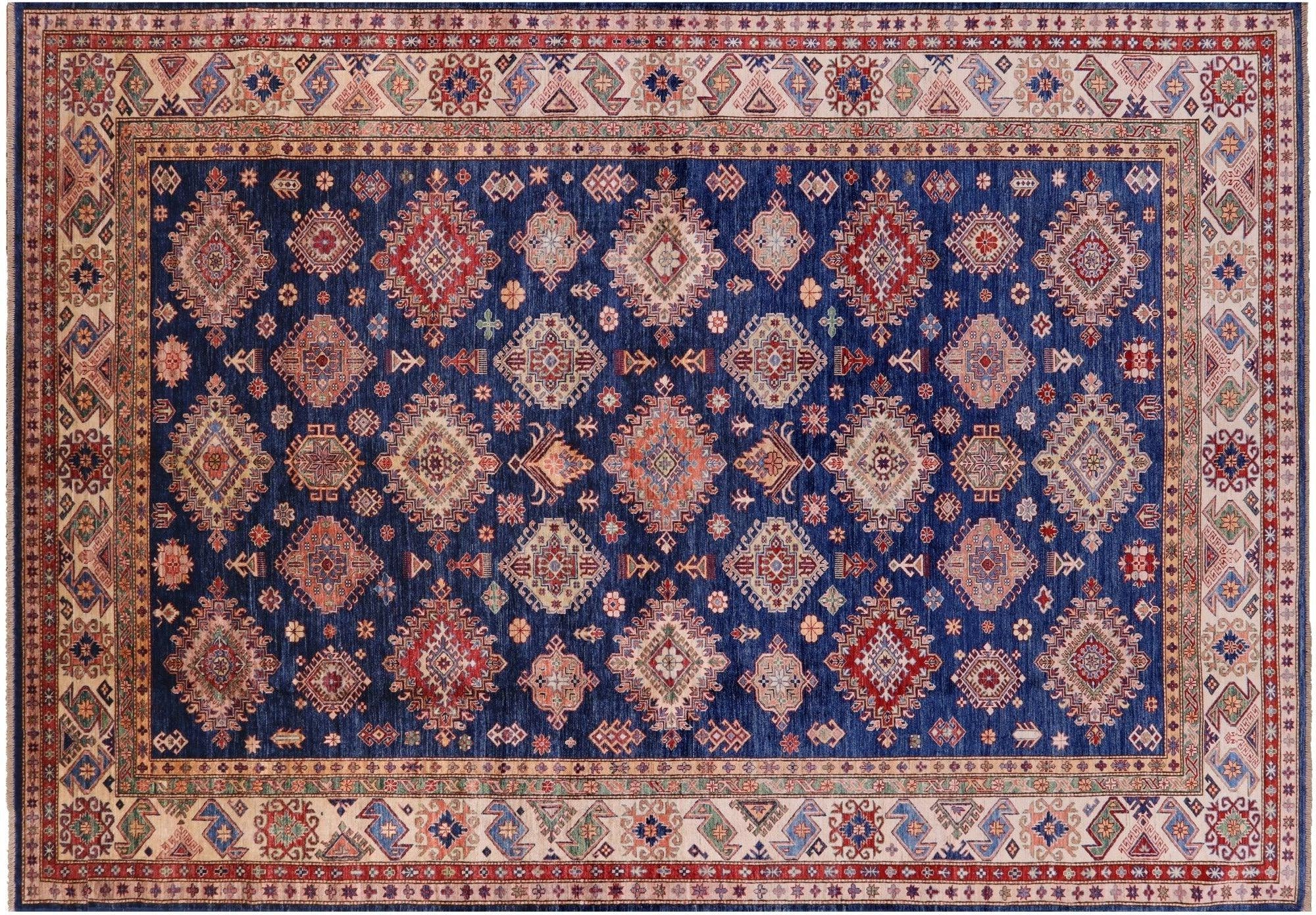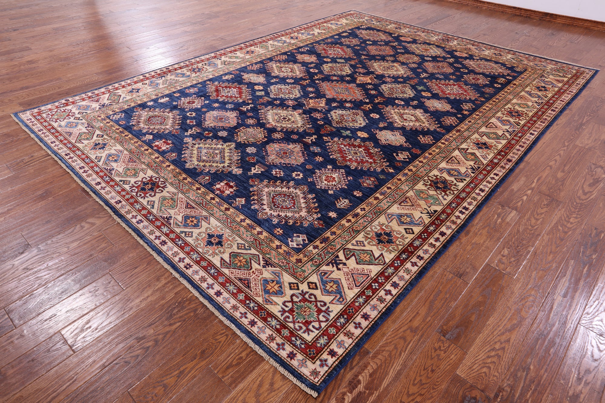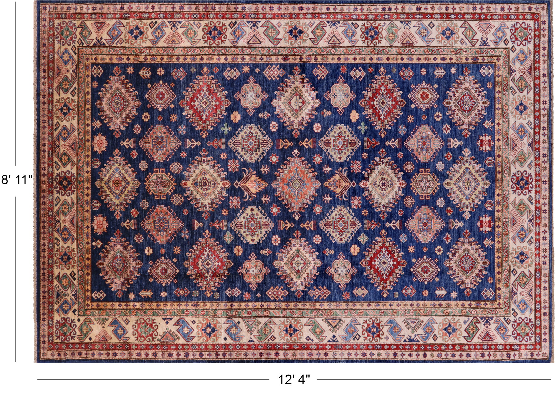 Blue Super Kazak Hand Knotted Geometric Rug 8' 11" X 12' 4" - Q10616