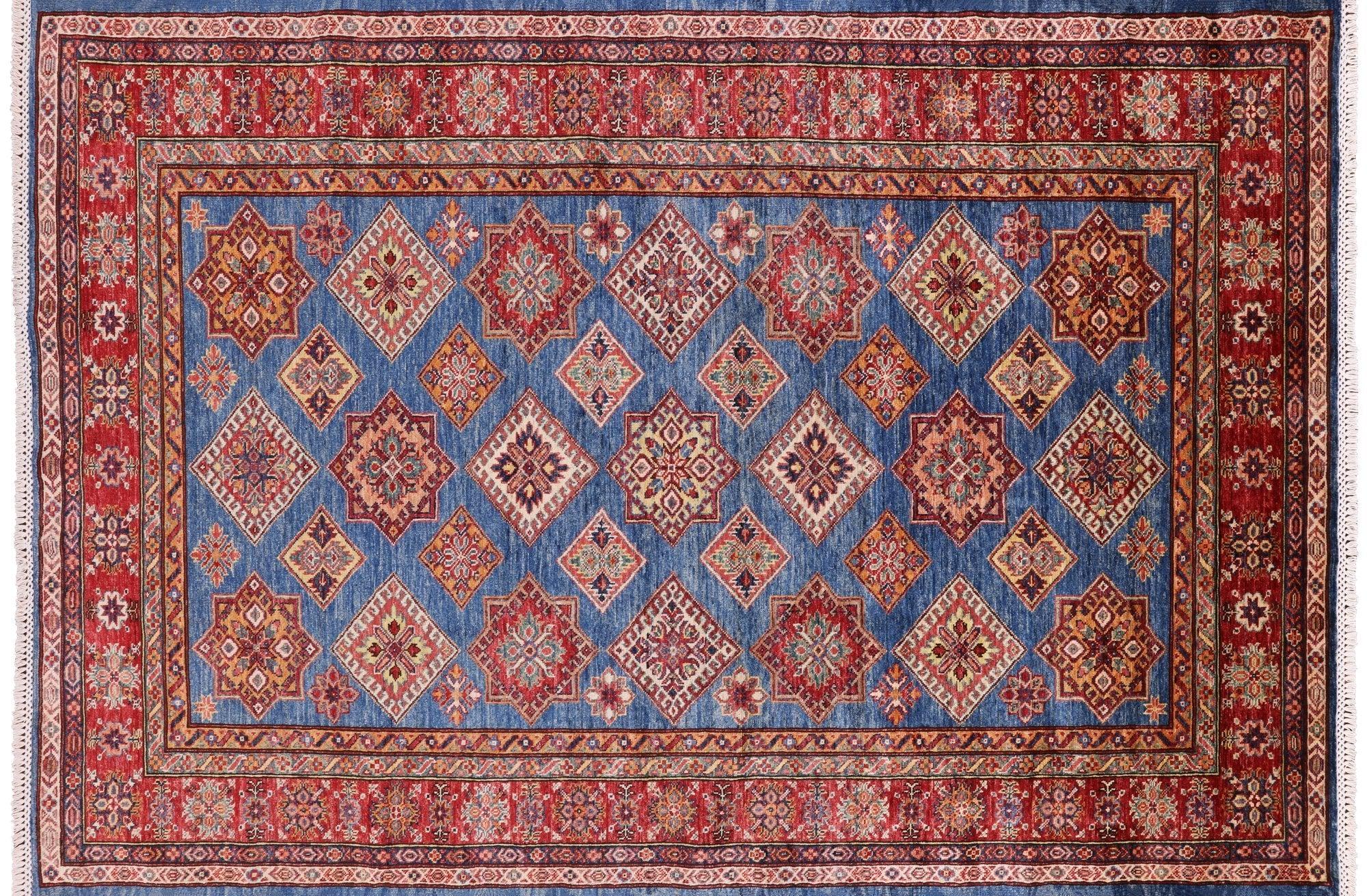 Blue Super Kazak Hand Knotted Wool Rug 5' 6" X 8' 0" - P9035