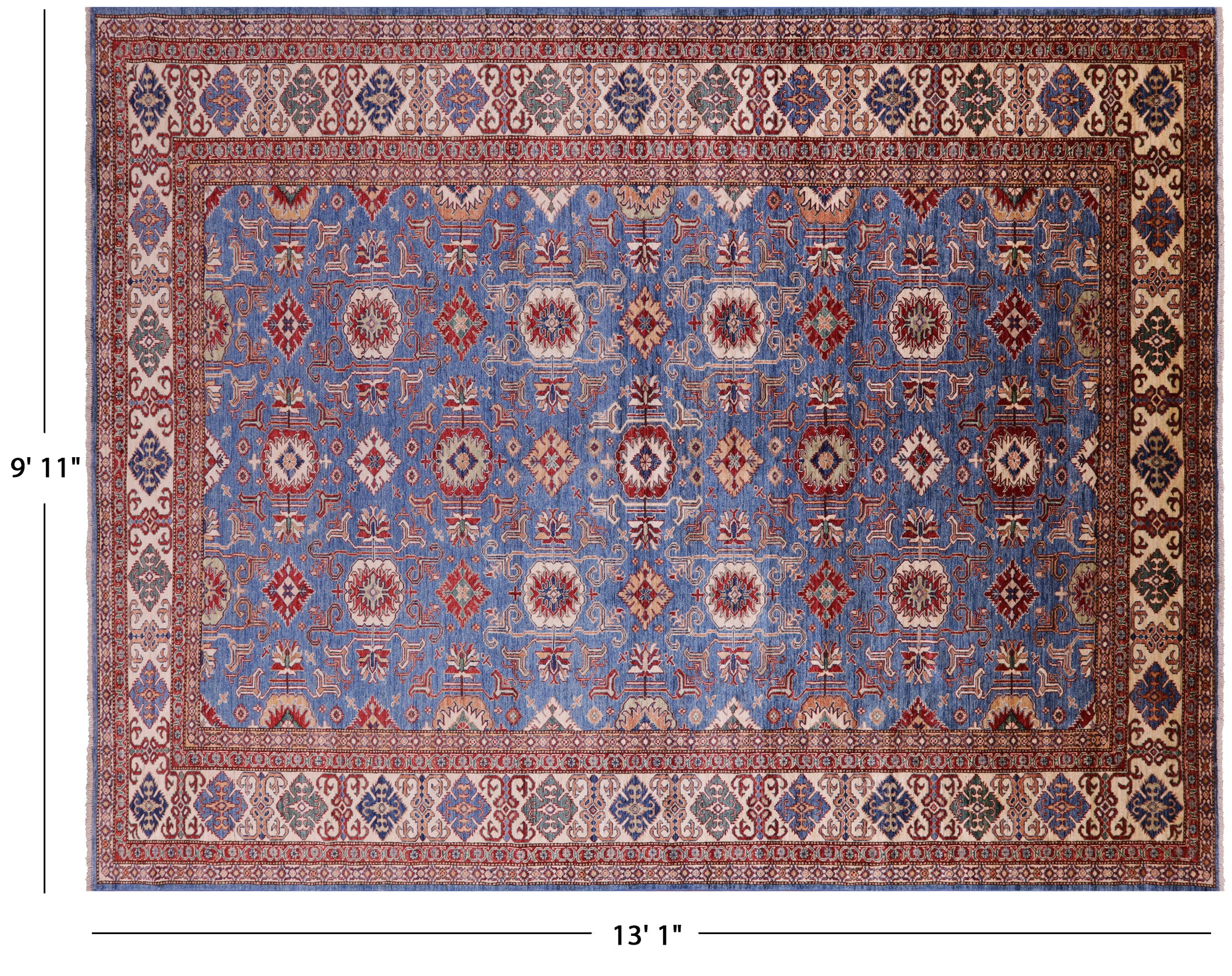 Blue Super Kazak Hand Knotted Wool Rug 9' 11" X 13' 1" - Q10605