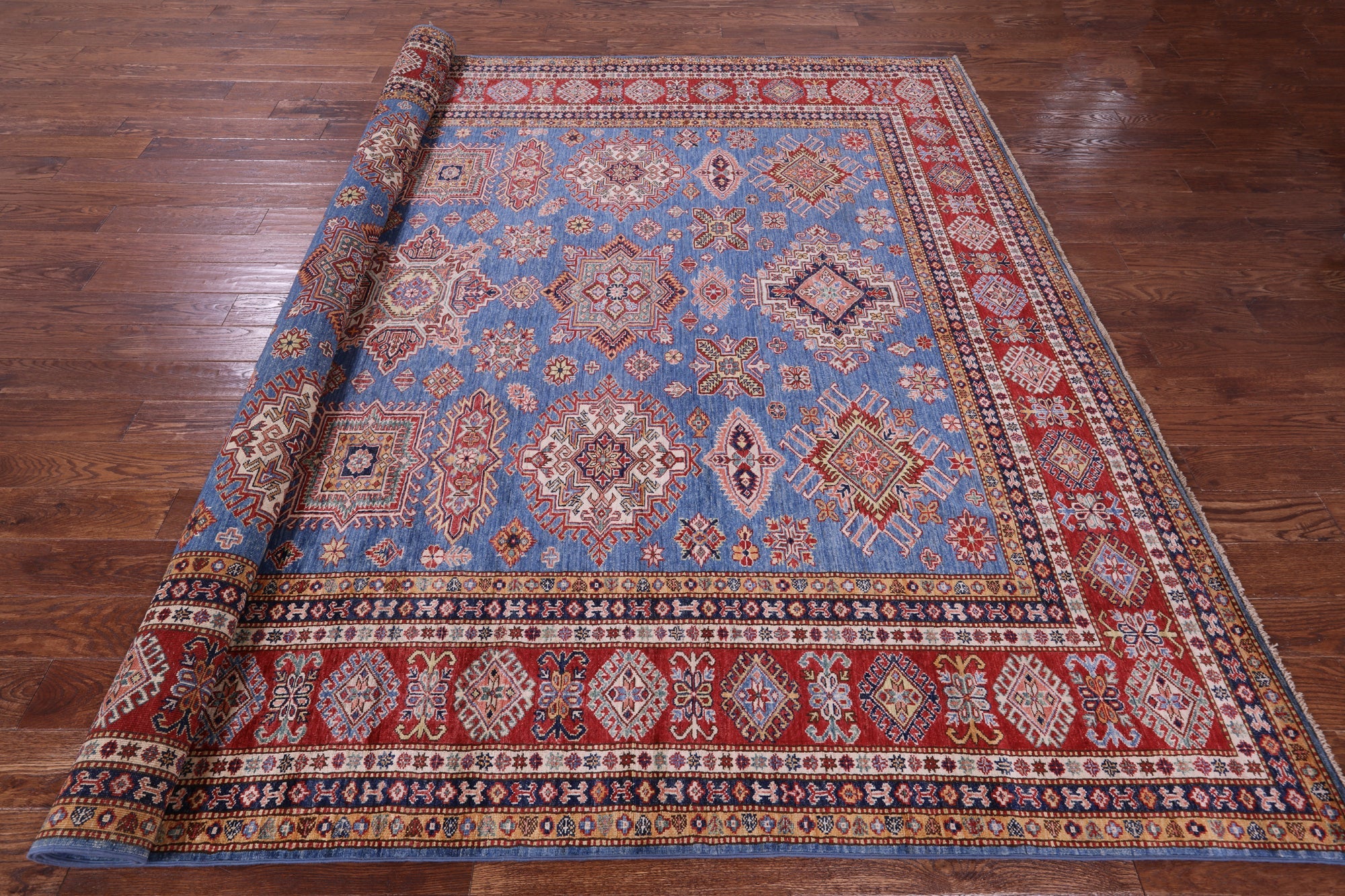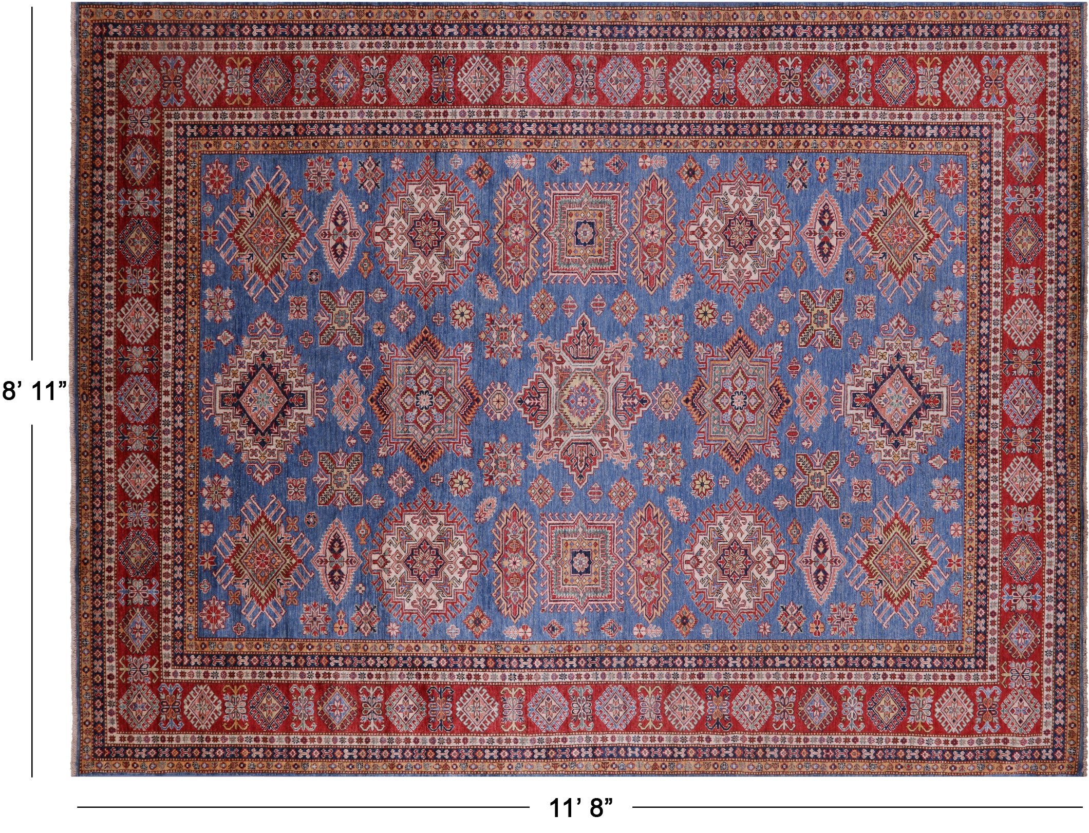 Blue 8' 11" X 11' 8" Super Kazak Hand-Knotted Wool Rug - Q18238