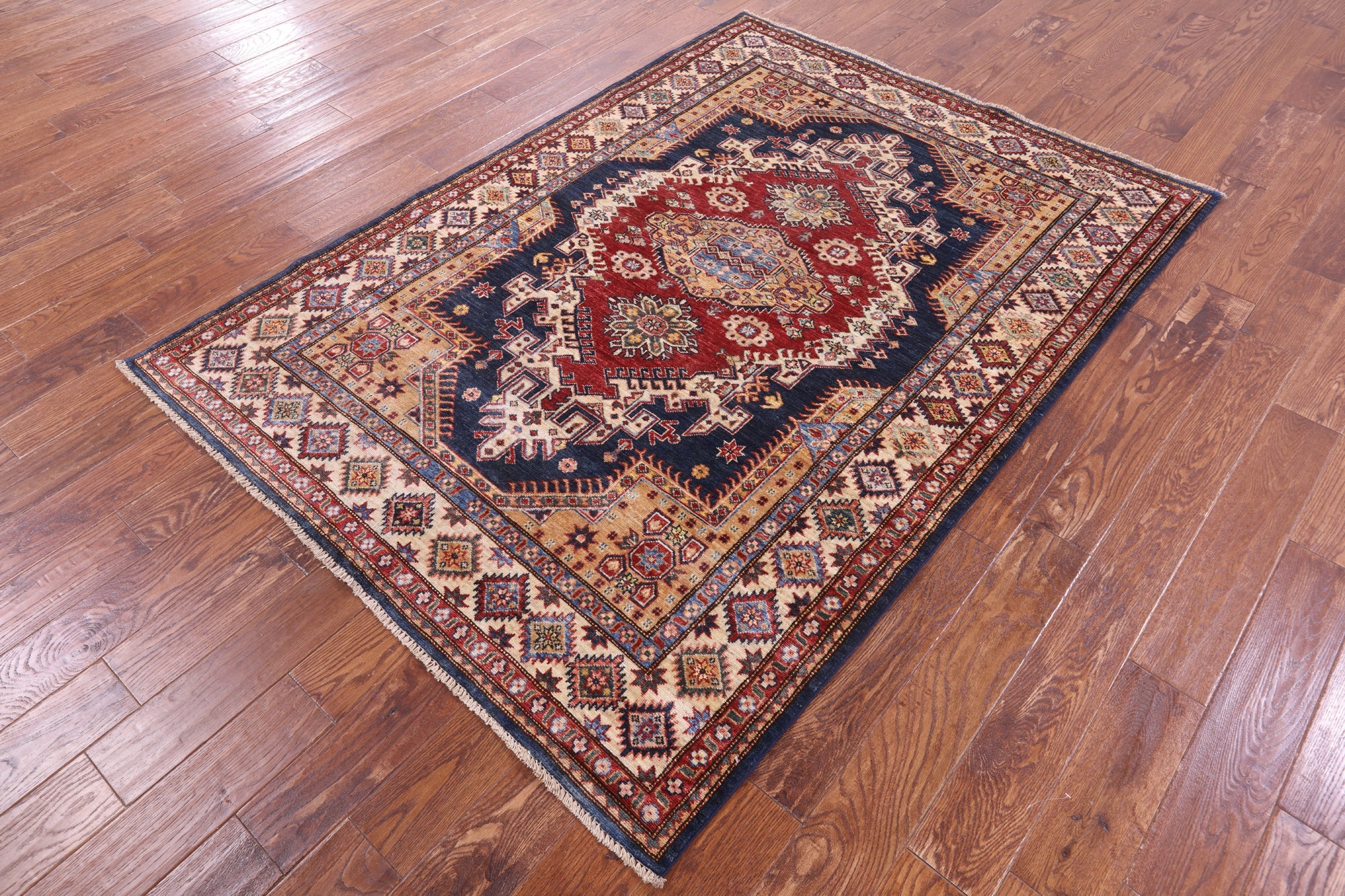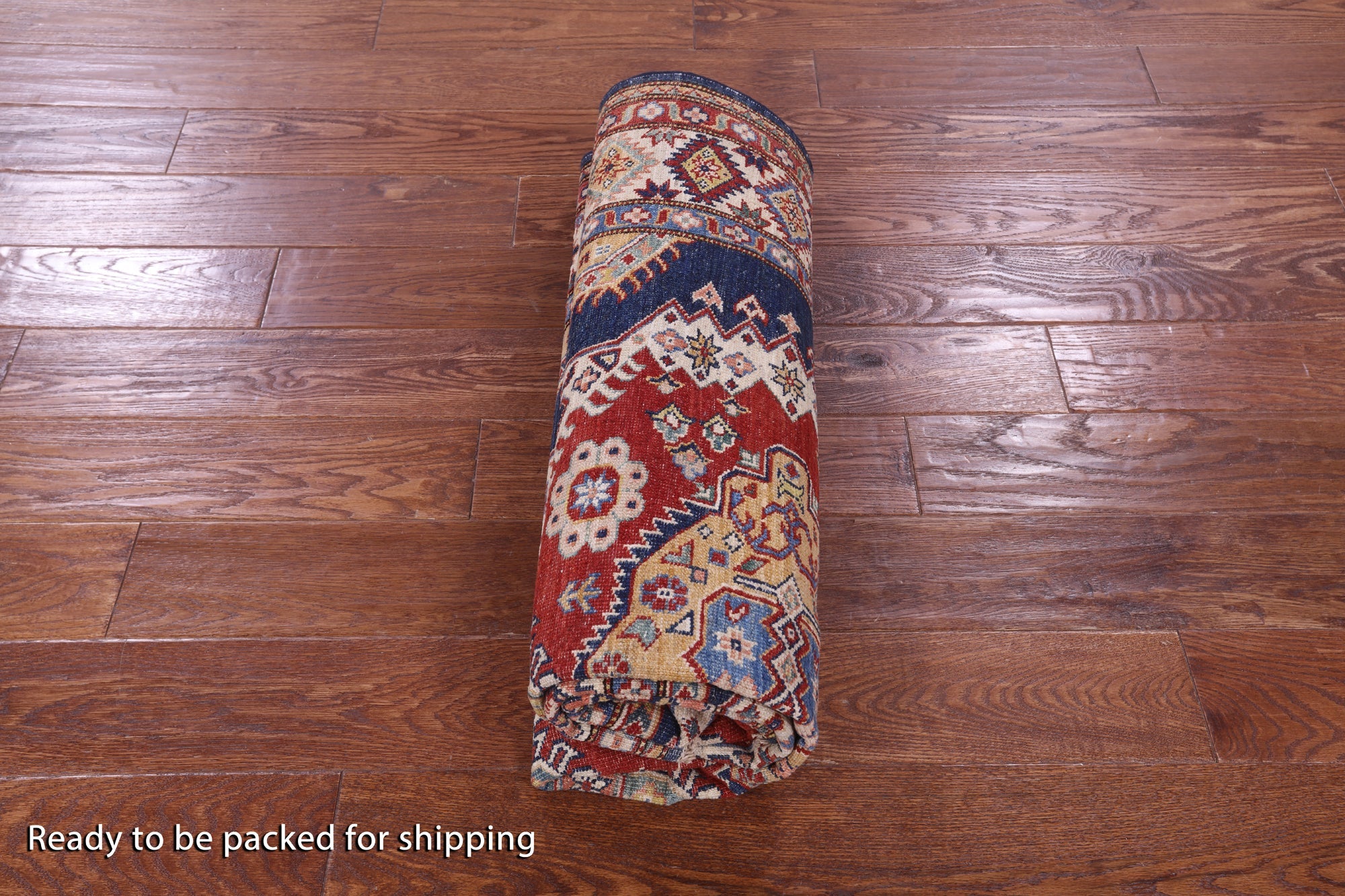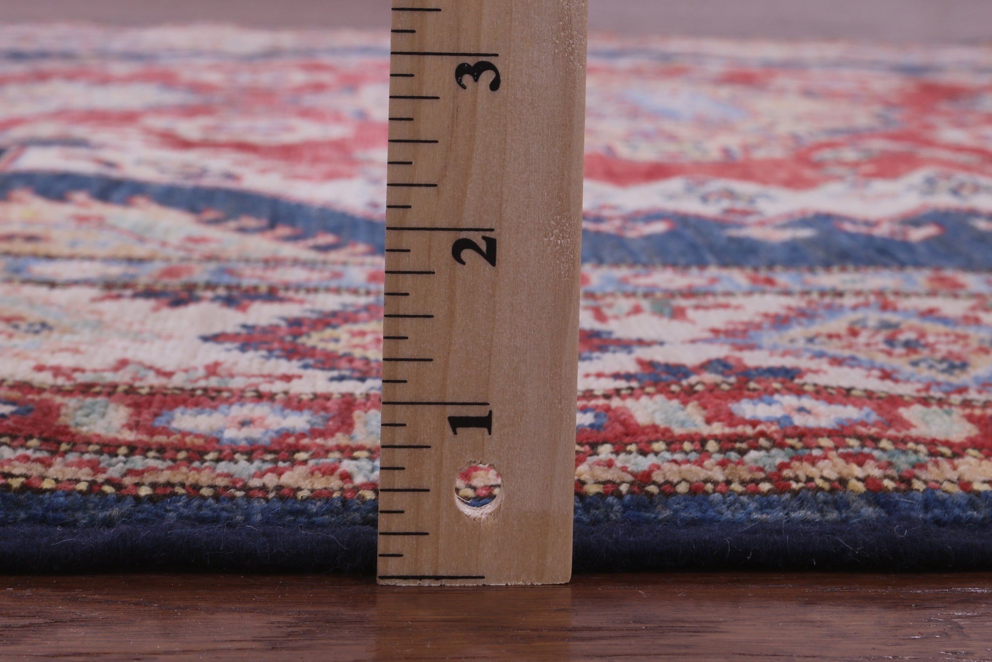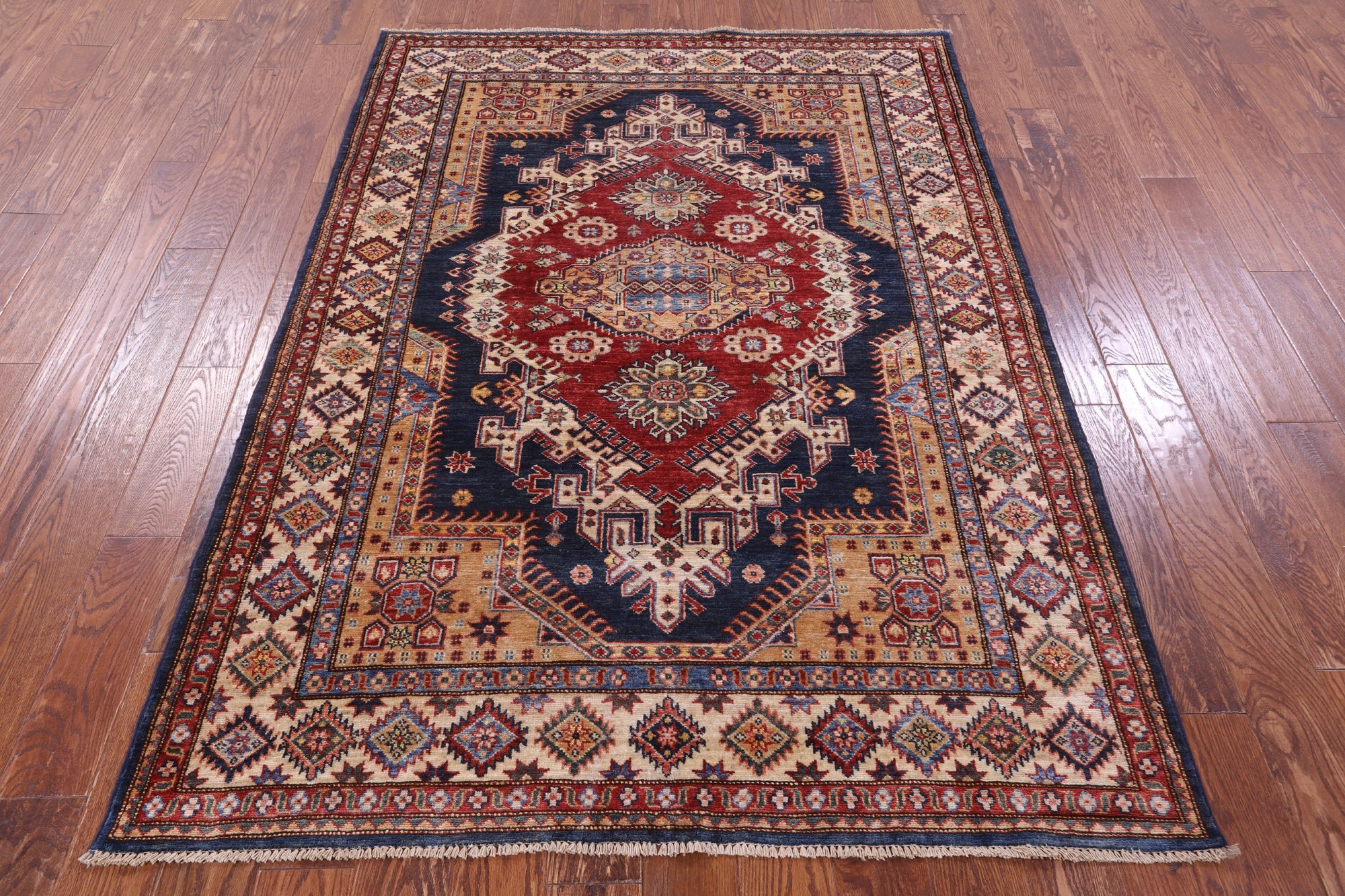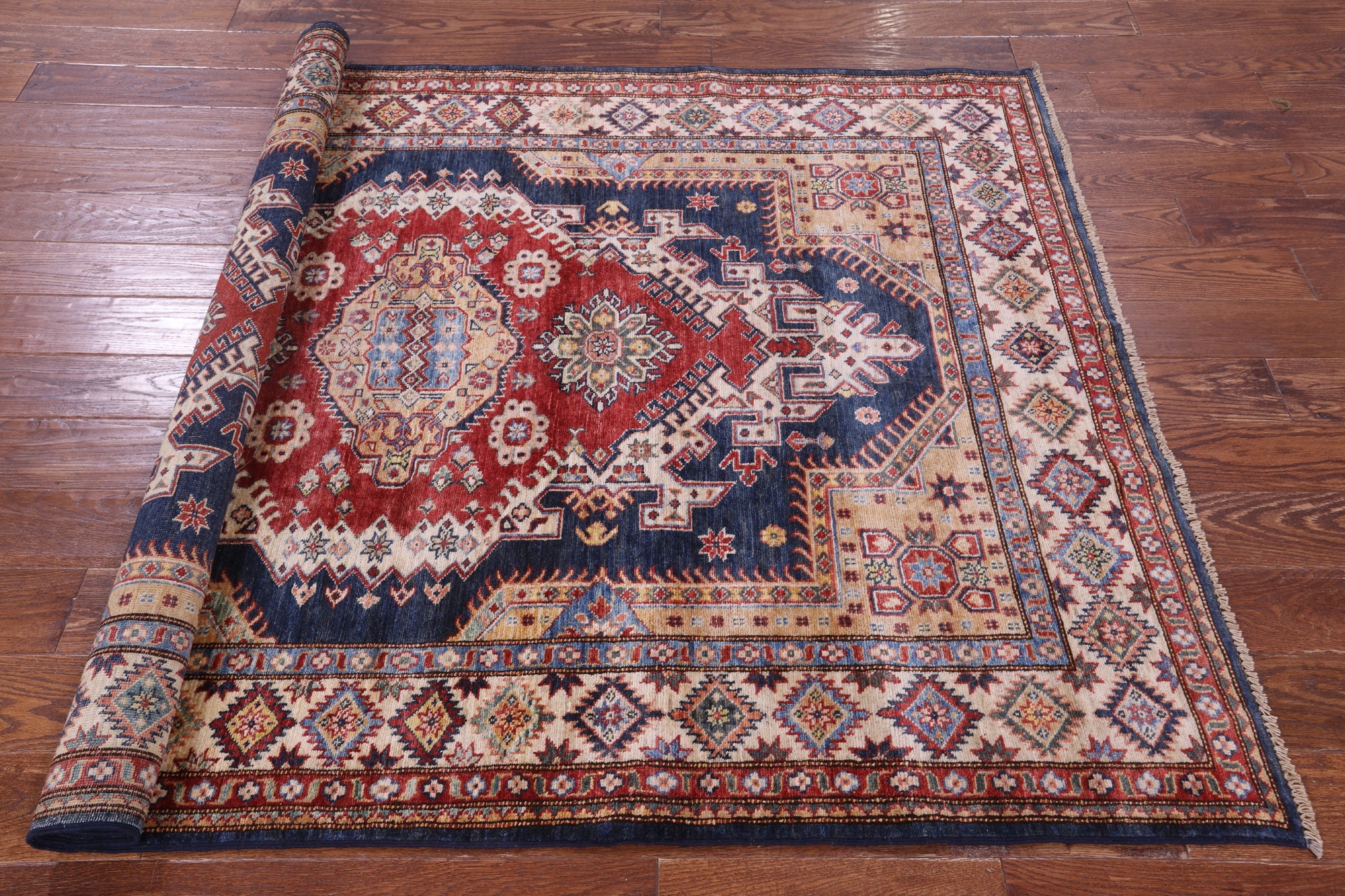 Blue 5' 0" X 6' 11" Super Kazak Hand-Knotted Wool Rug - Q18259 is backordered and will ship as soon as it is back in stock.