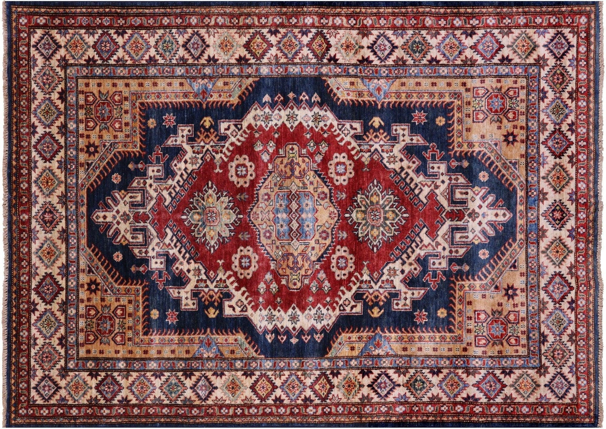 Blue 5' 0" X 6' 11" Super Kazak Hand-Knotted Wool Rug - Q18259