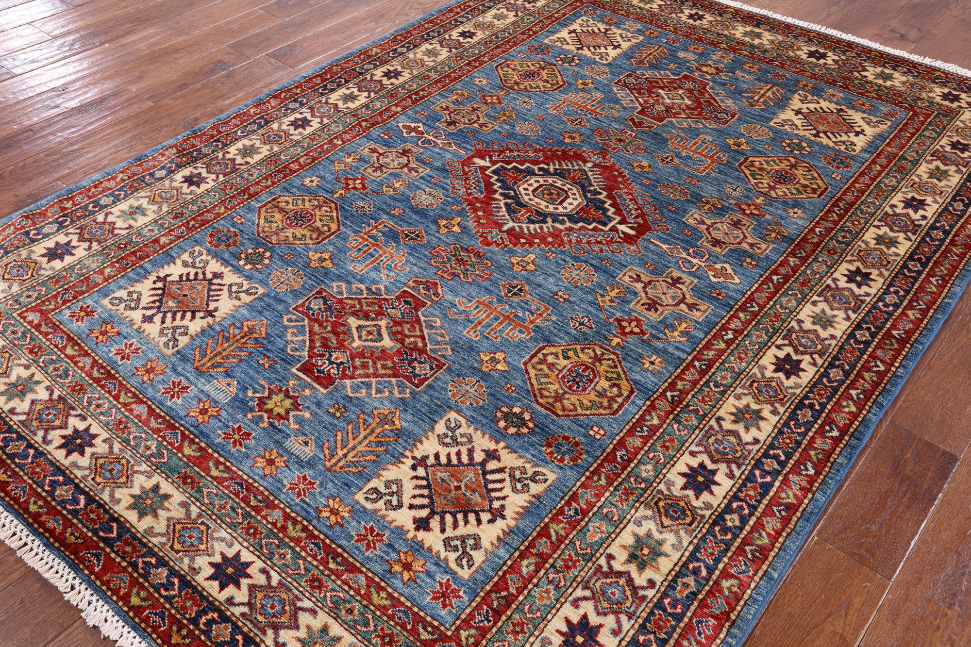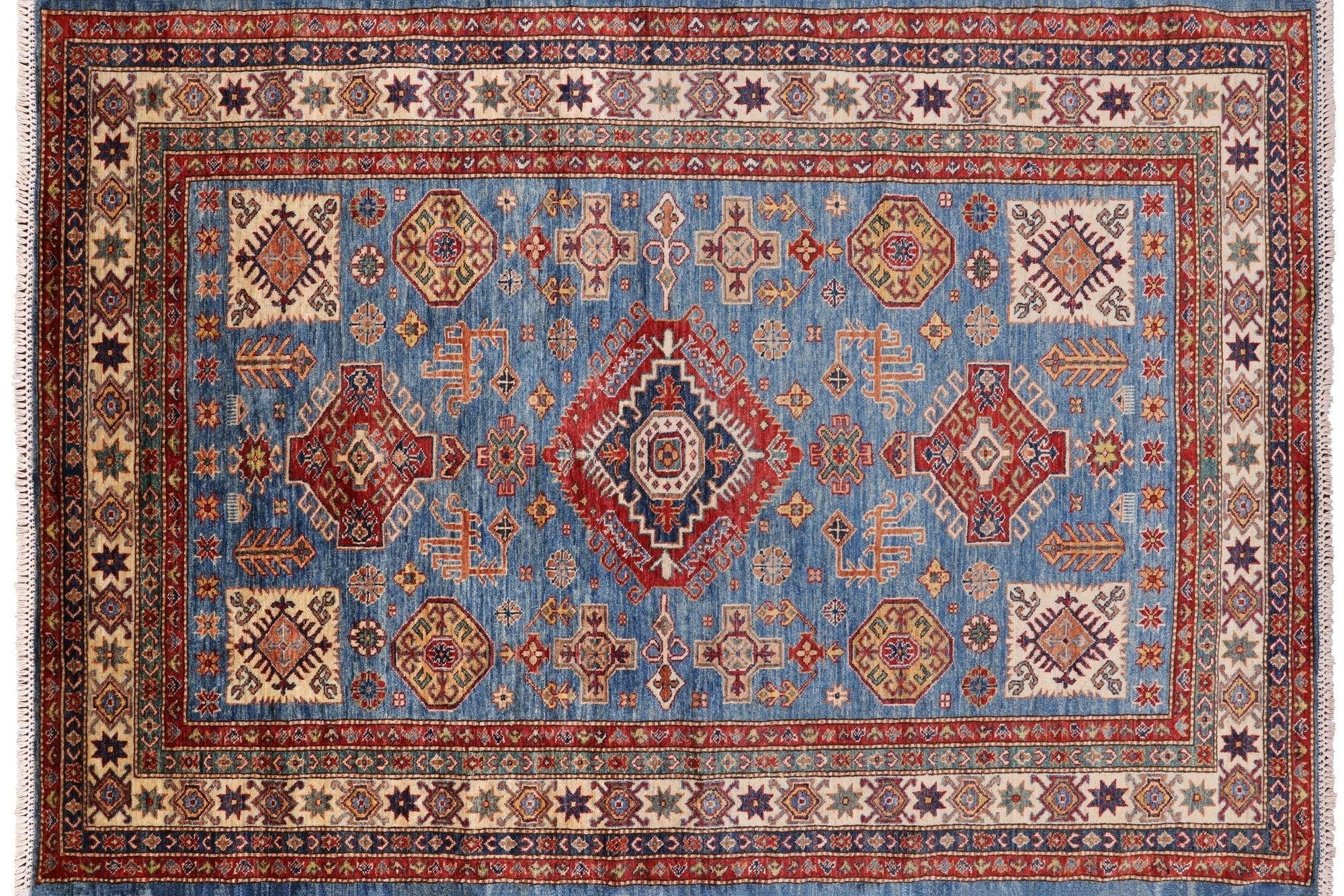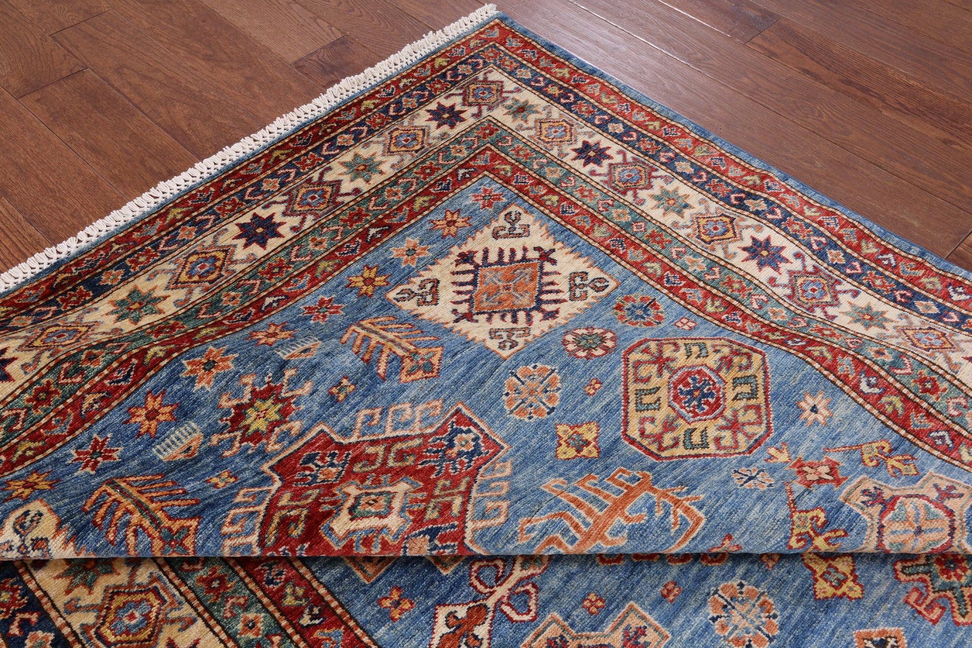Blue 5' 8" X 8' 2" Super Kazak Handmade Wool Area Rug - P8926 is backordered and will ship as soon as it is back in stock.