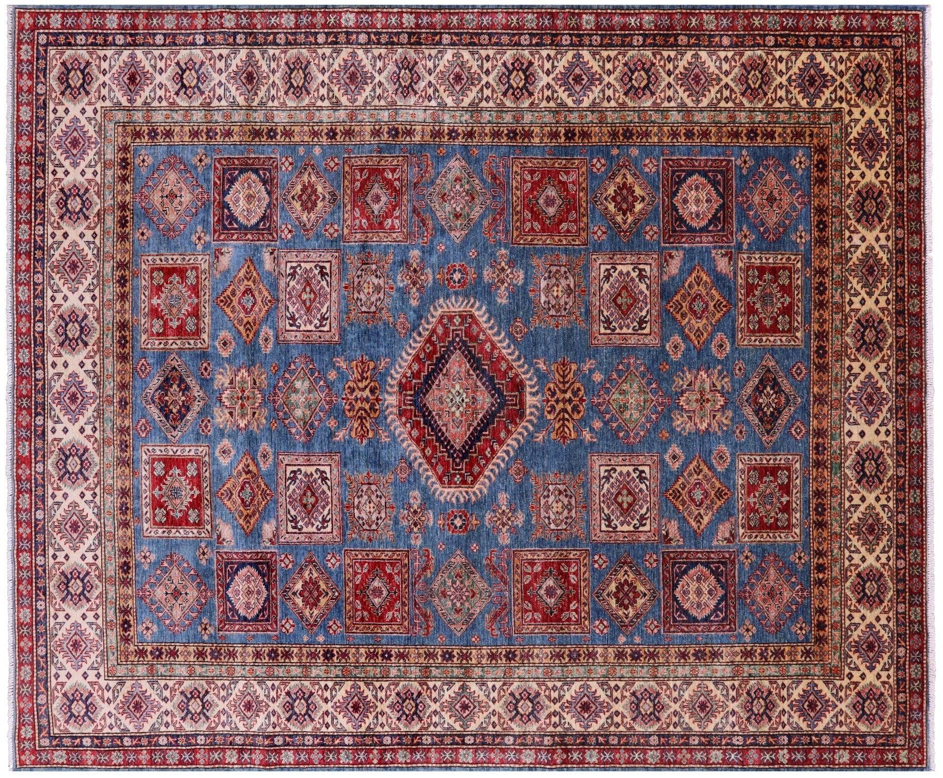 Blue Super Kazak Handmade Wool Rug 8' 2" X 9' 9" - Q14517