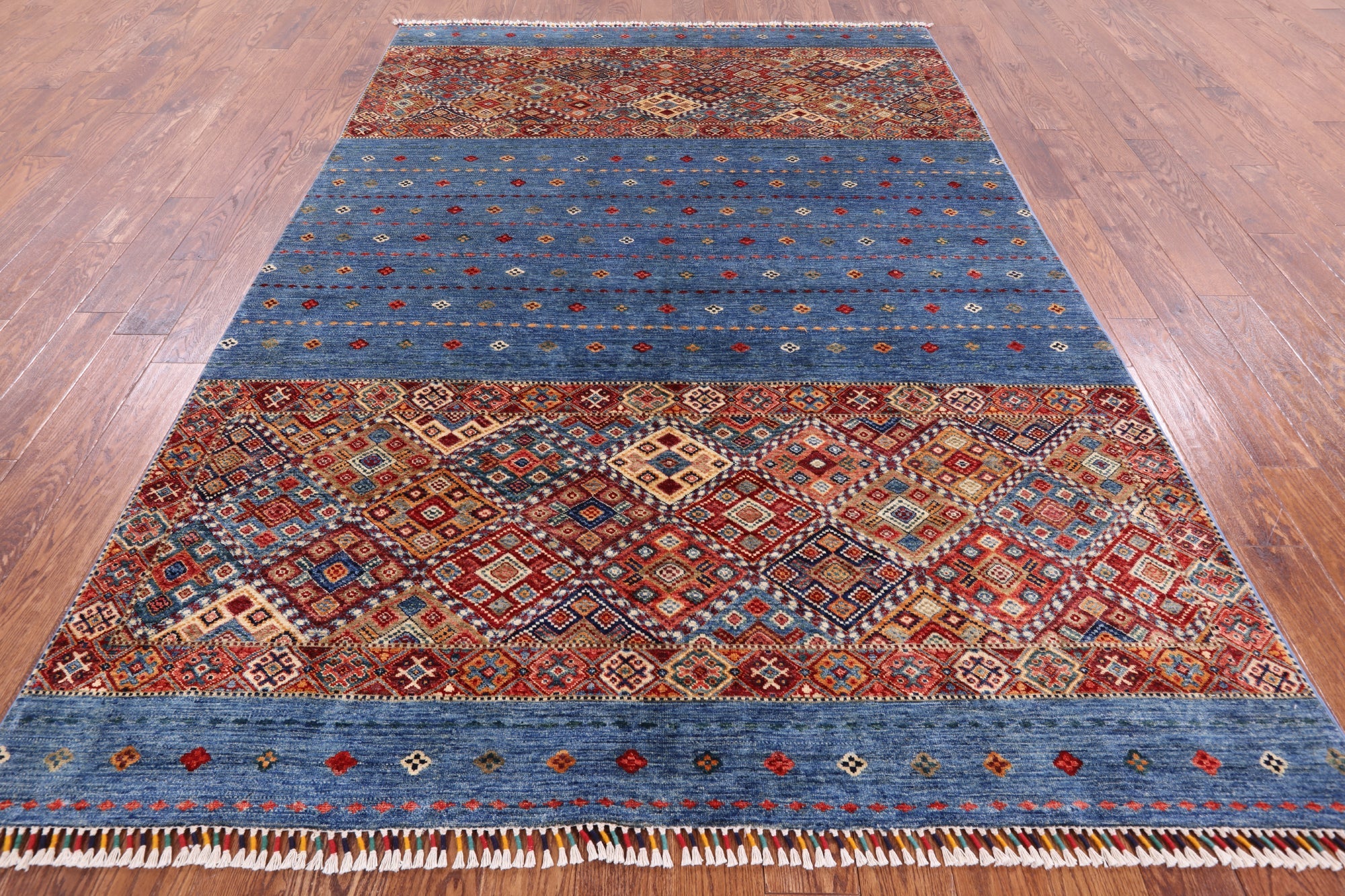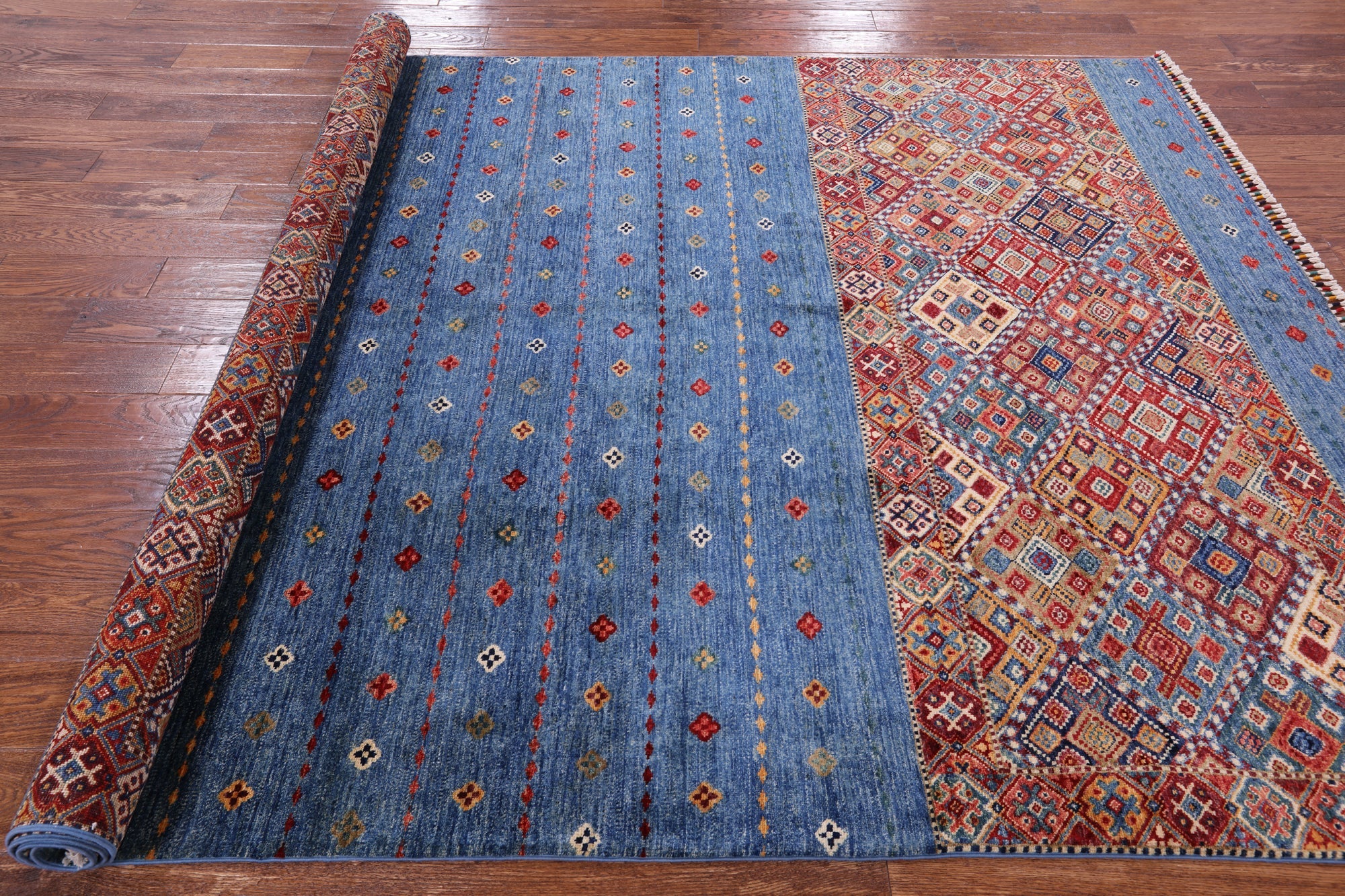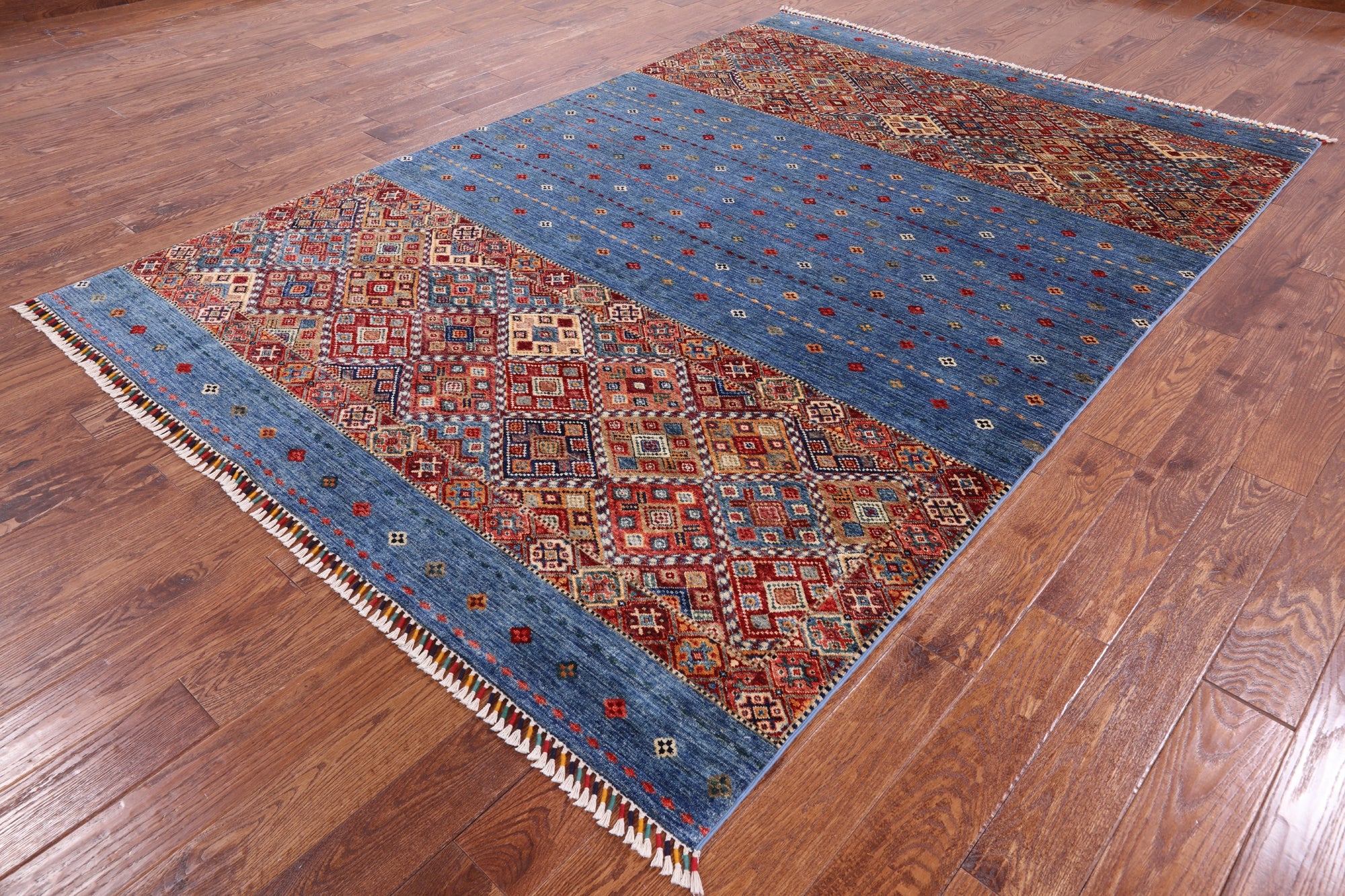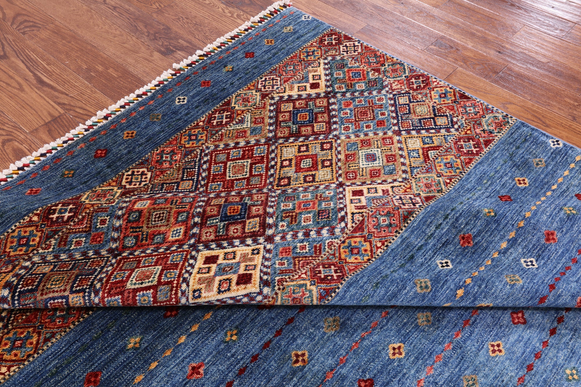Blue 6' 7" X 9' 8" Super Kazak Khorjin Hand Knotted Rug - Q2934 is backordered and will ship as soon as it is back in stock.