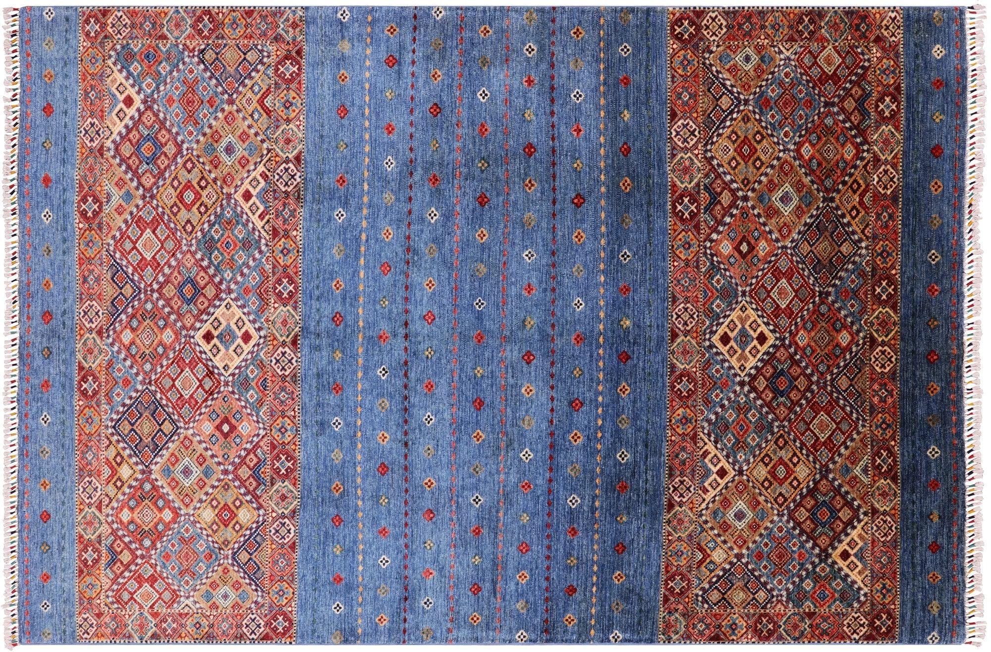 Blue 6' 7" X 9' 8" Super Kazak Khorjin Hand Knotted Rug - Q2934