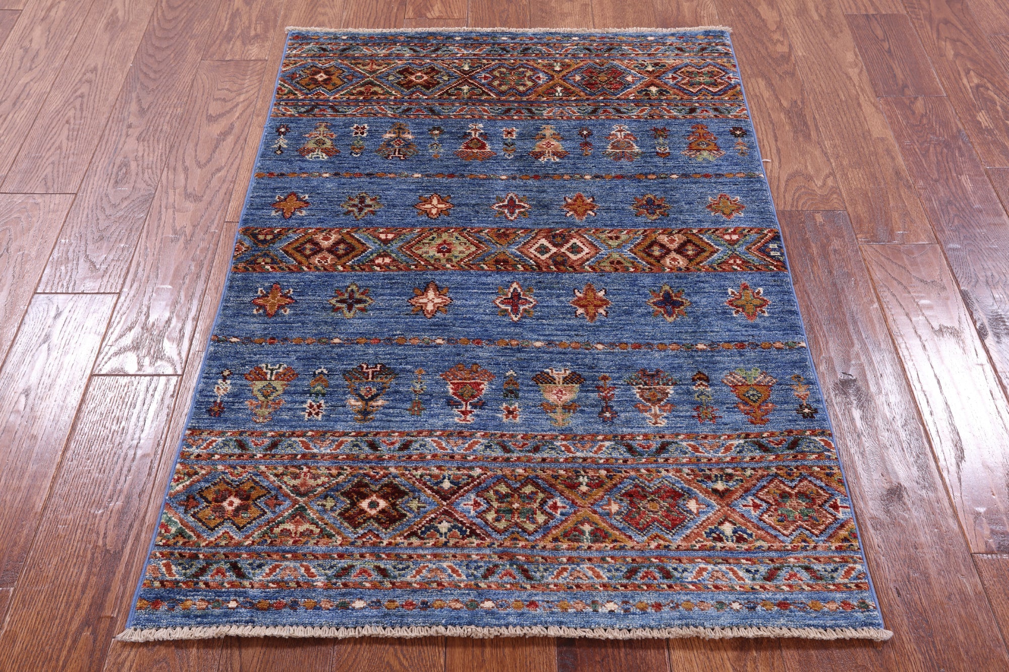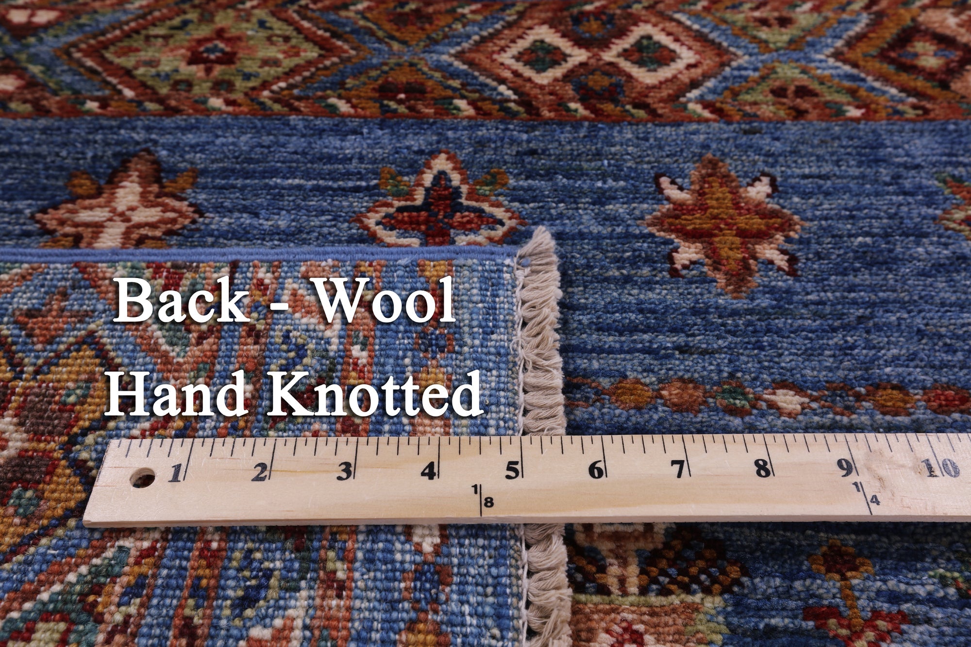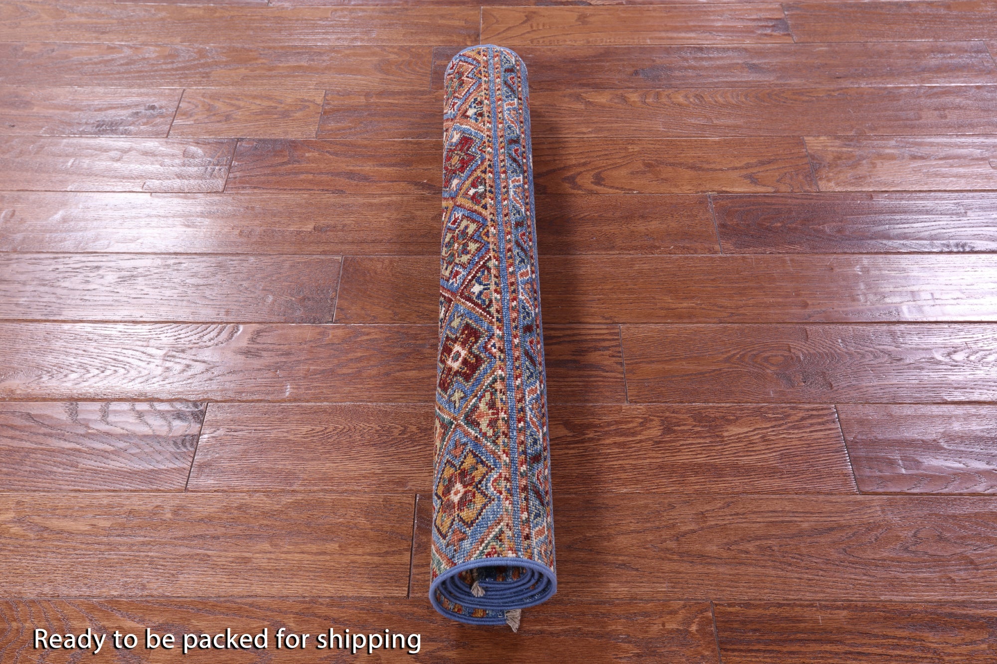 Blue Super Kazak Khorjin Hand-Knotted Wool Rug 2' 10" X 4' 0" - Q14047 is backordered and will ship as soon as it is back in stock.