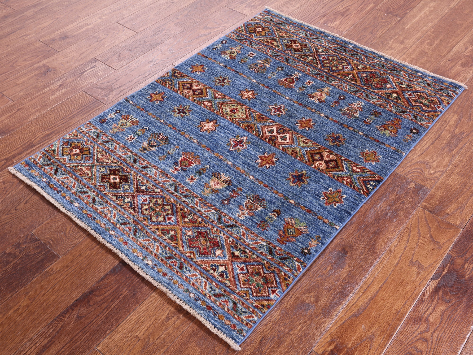 Blue Super Kazak Khorjin Hand-Knotted Wool Rug 2' 10" X 4' 0" - Q14047
