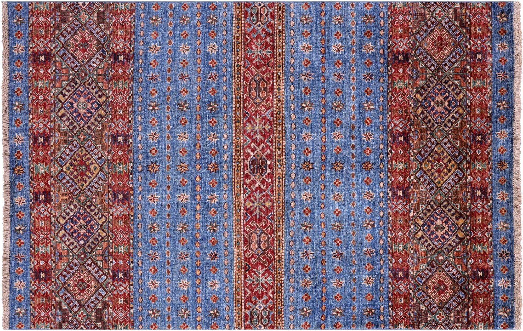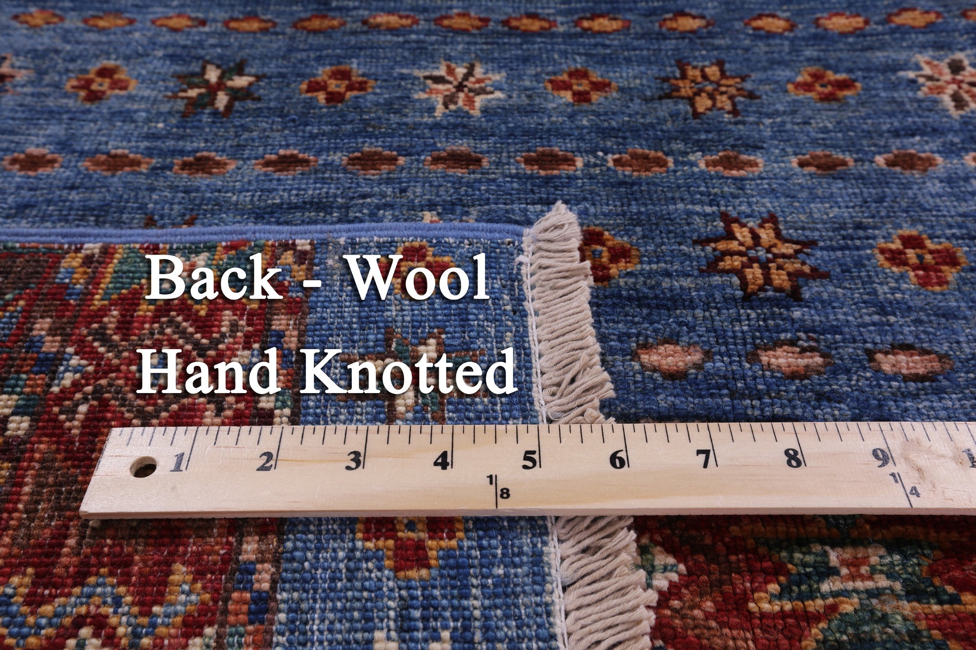 Blue 3' 11" X 6' 0" Super Kazak Khorjin Handmade Rug - Q14029 is backordered and will ship as soon as it is back in stock.