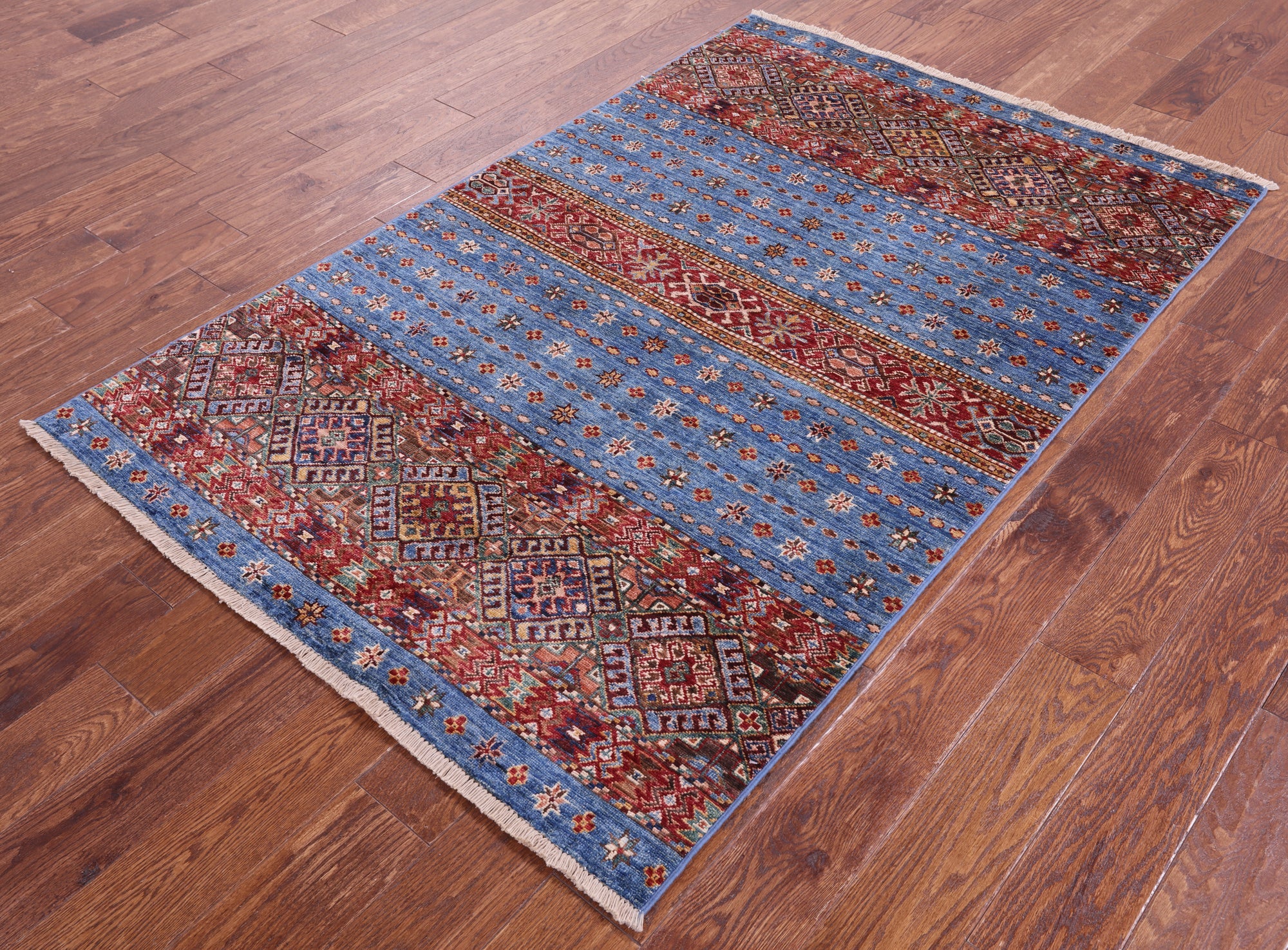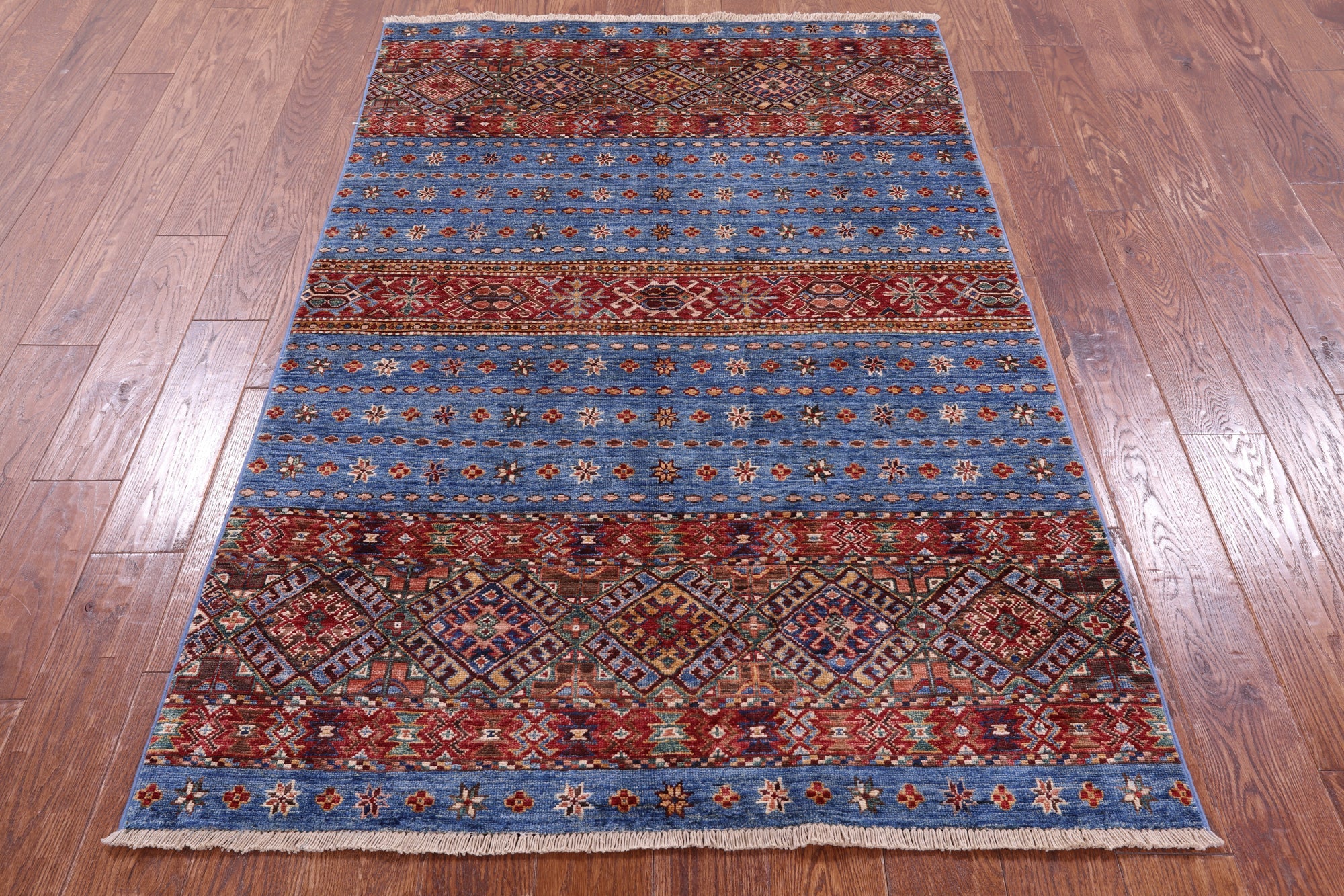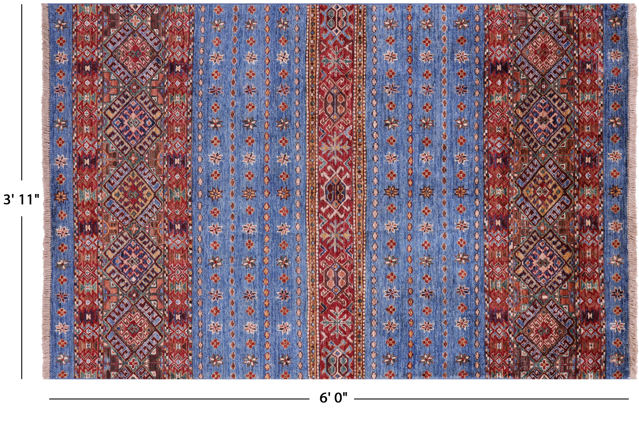 Blue 3' 11" X 6' 0" Super Kazak Khorjin Handmade Rug - Q14029