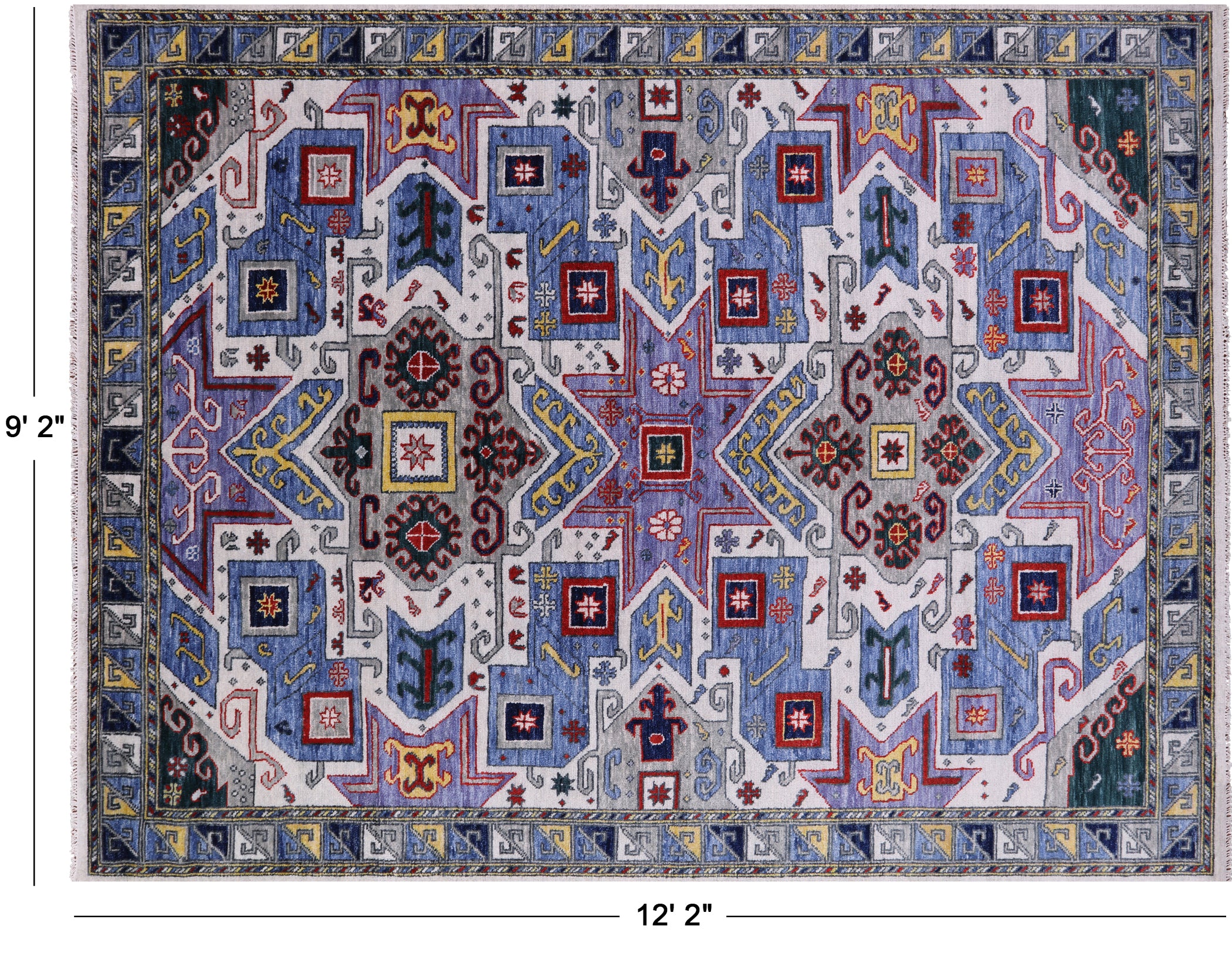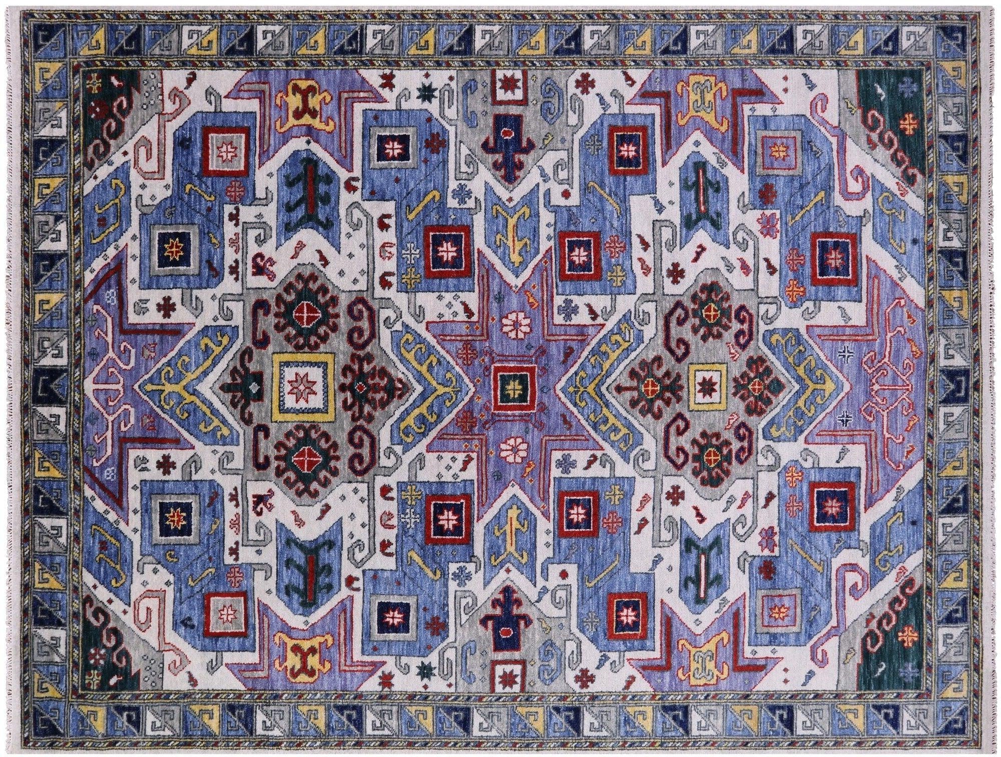 9' 2" X 12' 2" Geometric Kazak Handmade Wool Rug - Q11716