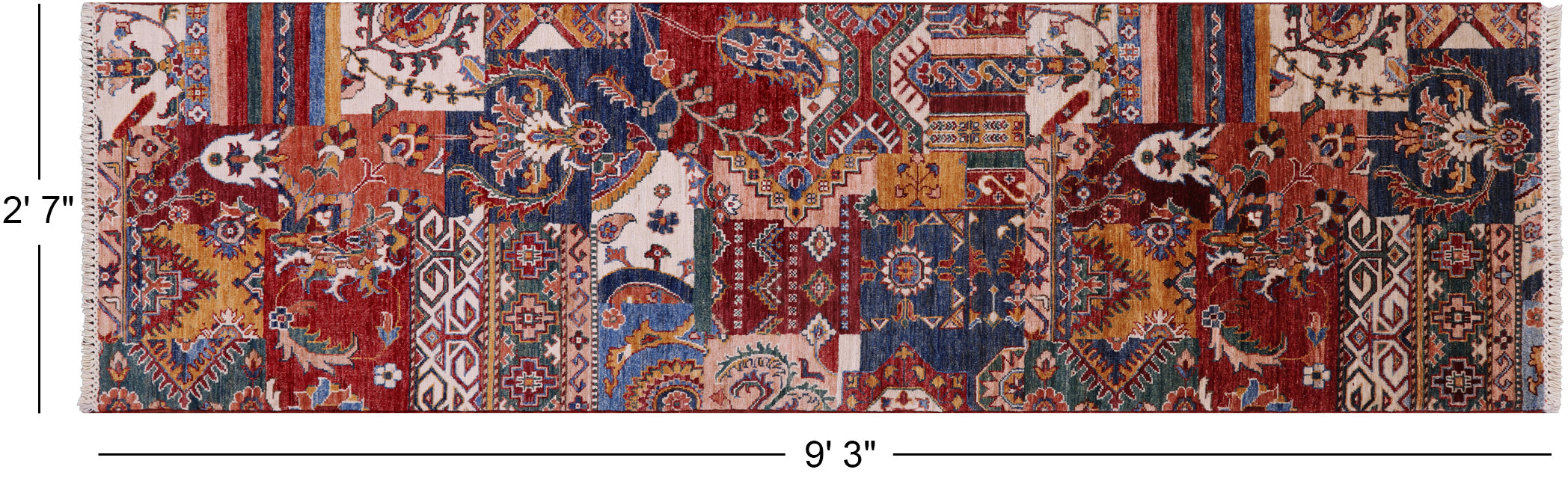 Geometric Super Kazak Hand Knotted Runner Rug 2' 7" X 9' 3" - Q10216