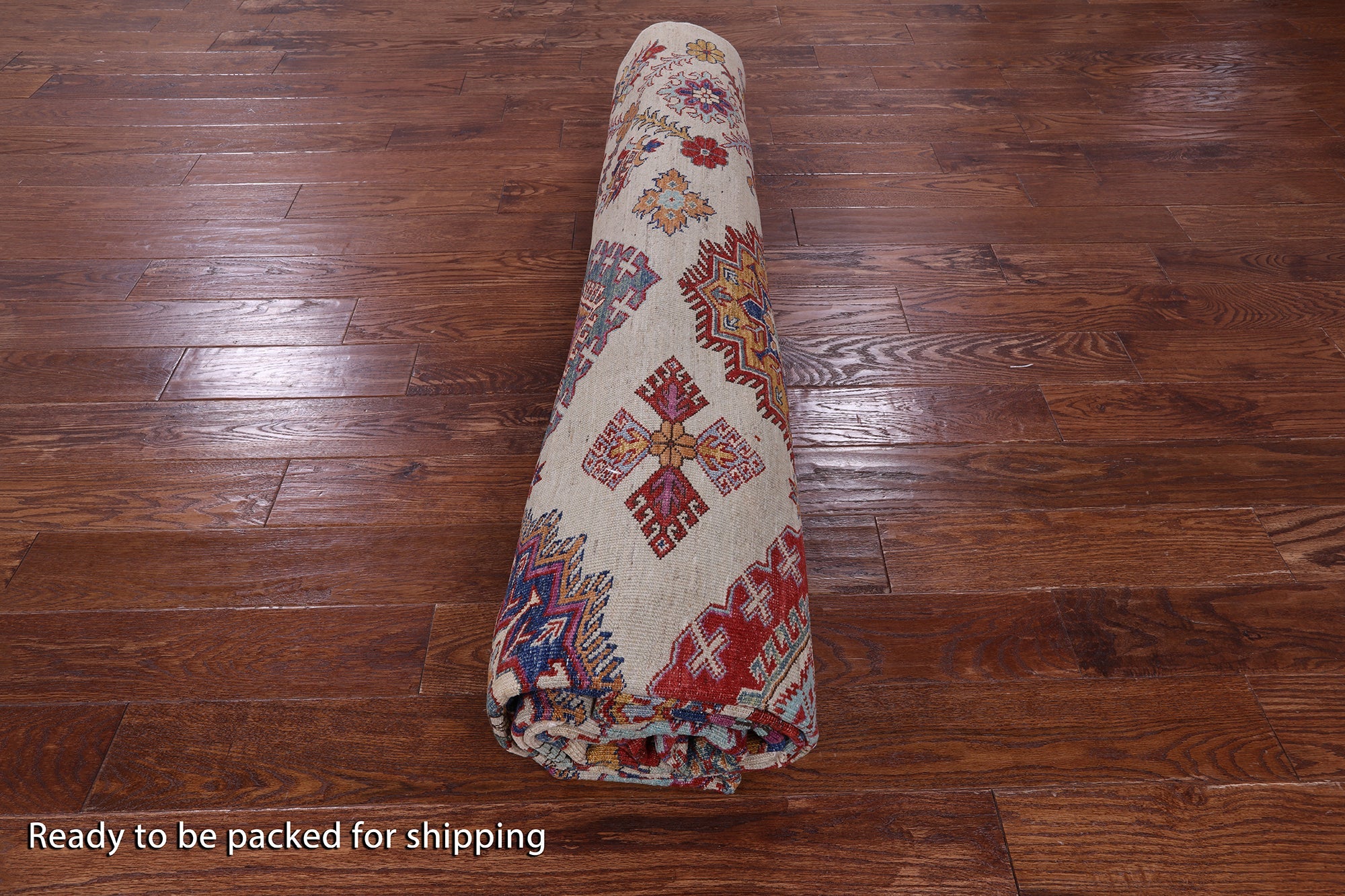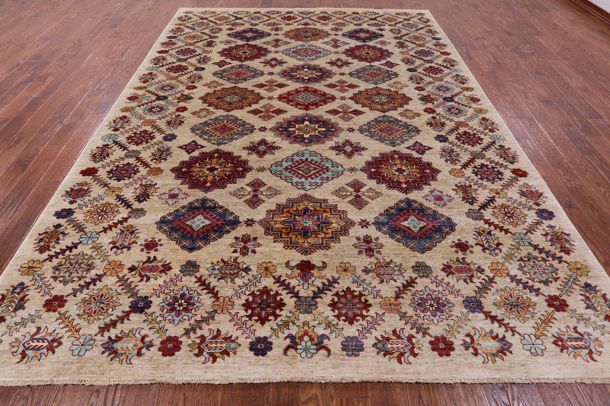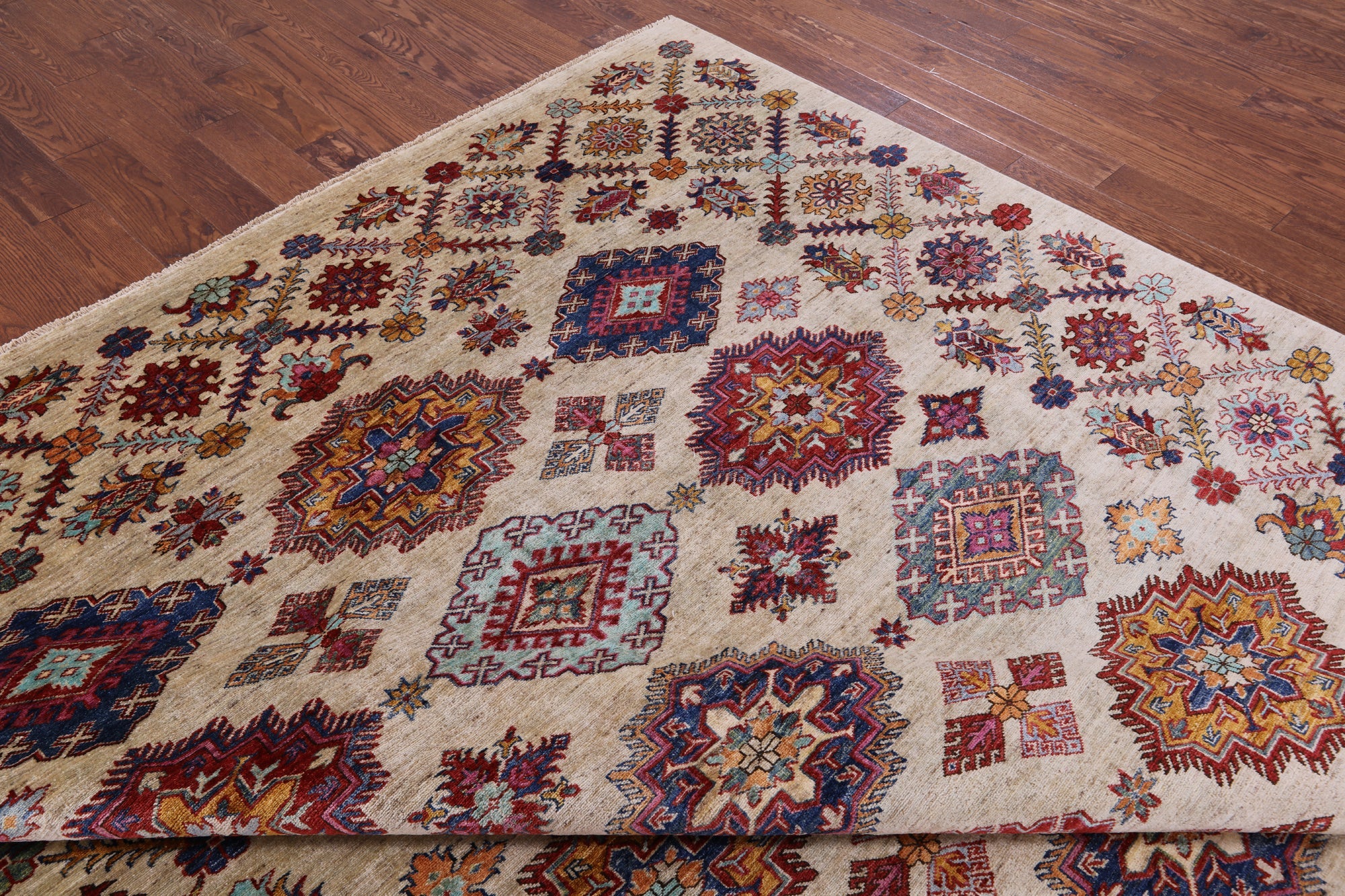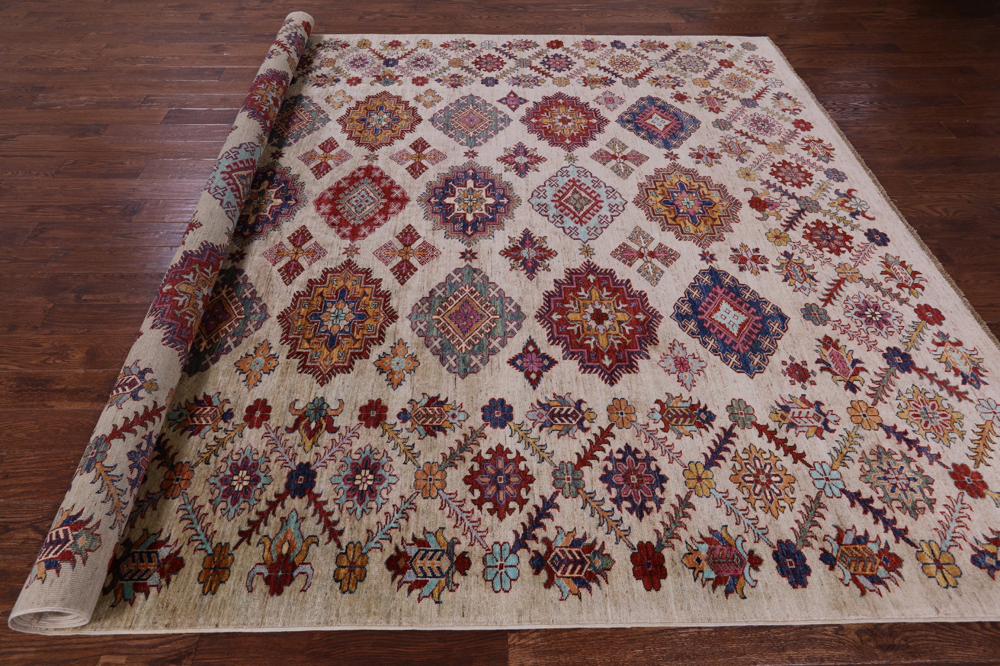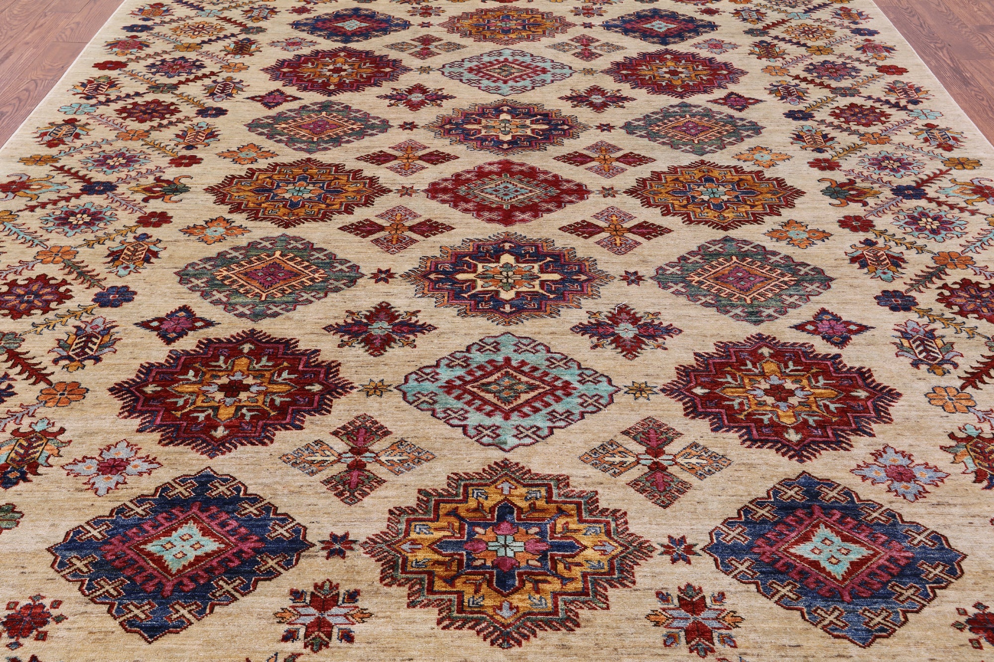 Geometric Super Kazak Hand-Knotted Wool Rug 9' 2" X 12' 3" - Q10602 is backordered and will ship as soon as it is back in stock.