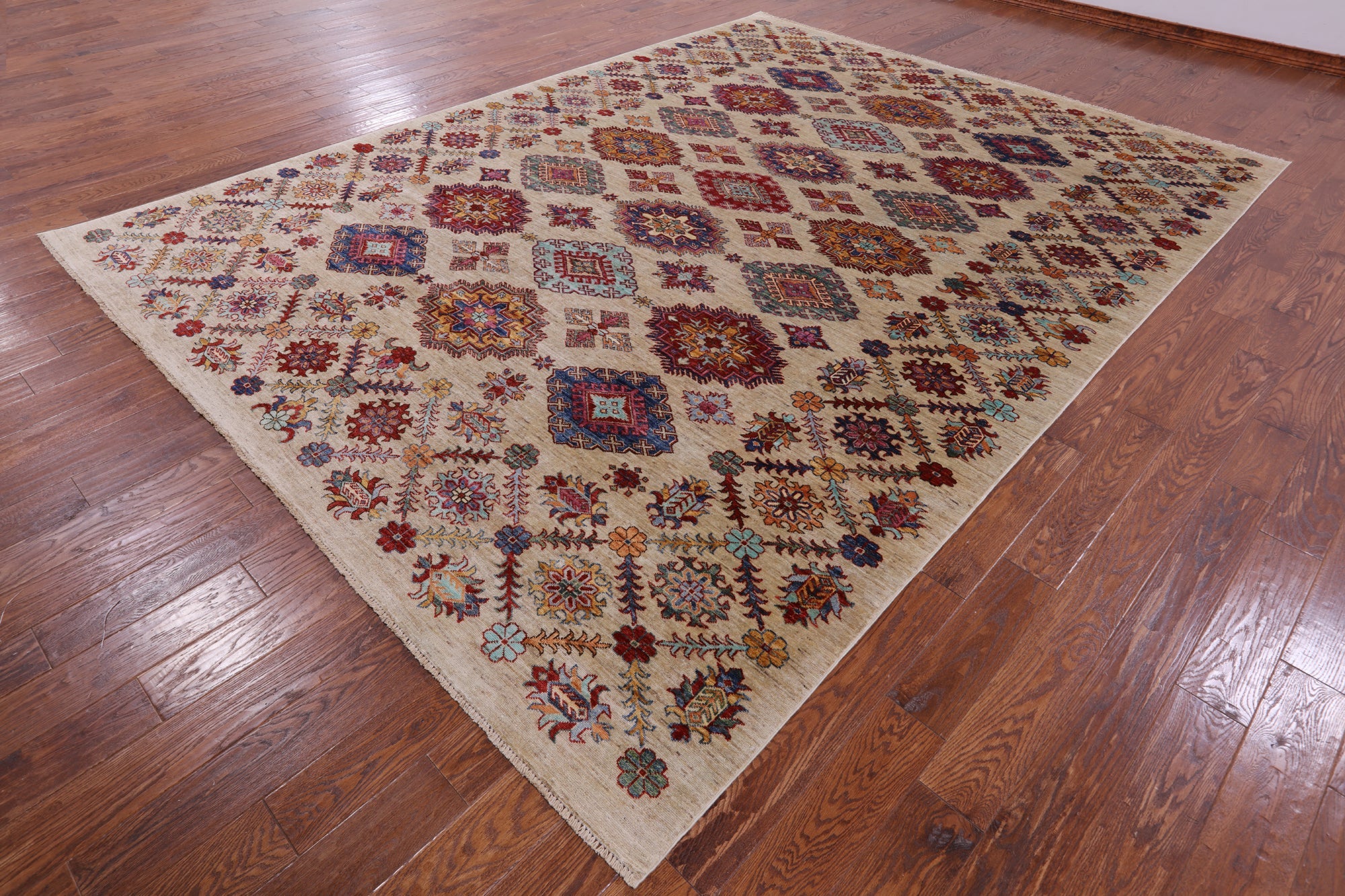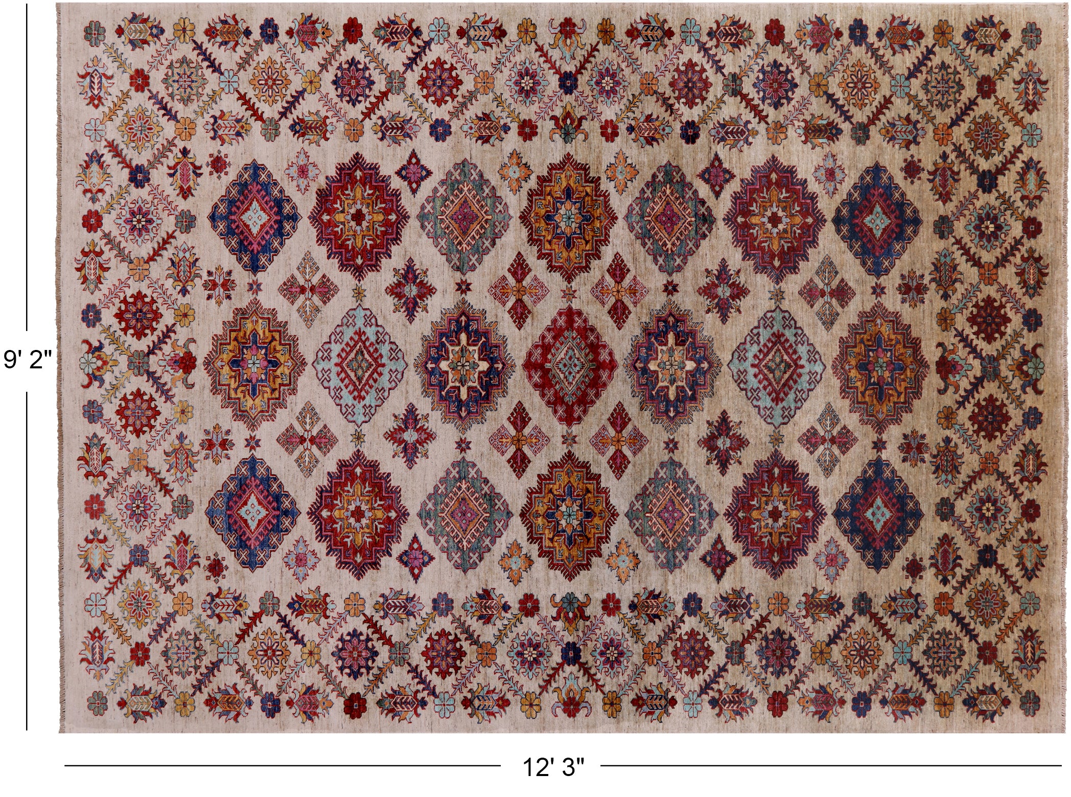 Geometric Super Kazak Hand-Knotted Wool Rug 9' 2" X 12' 3" - Q10602