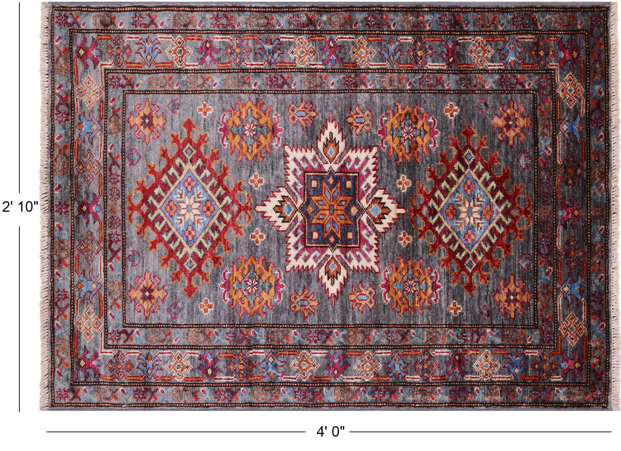Geometric Super Kazak Handmade Wool Rug 2' 10" X 4' 0" - Q10650