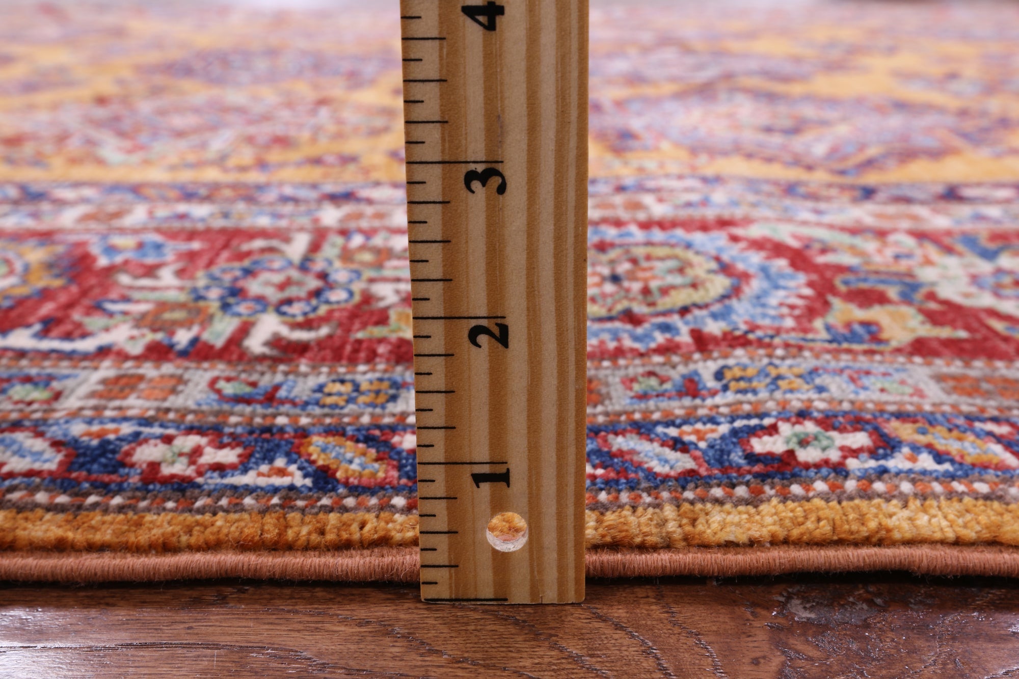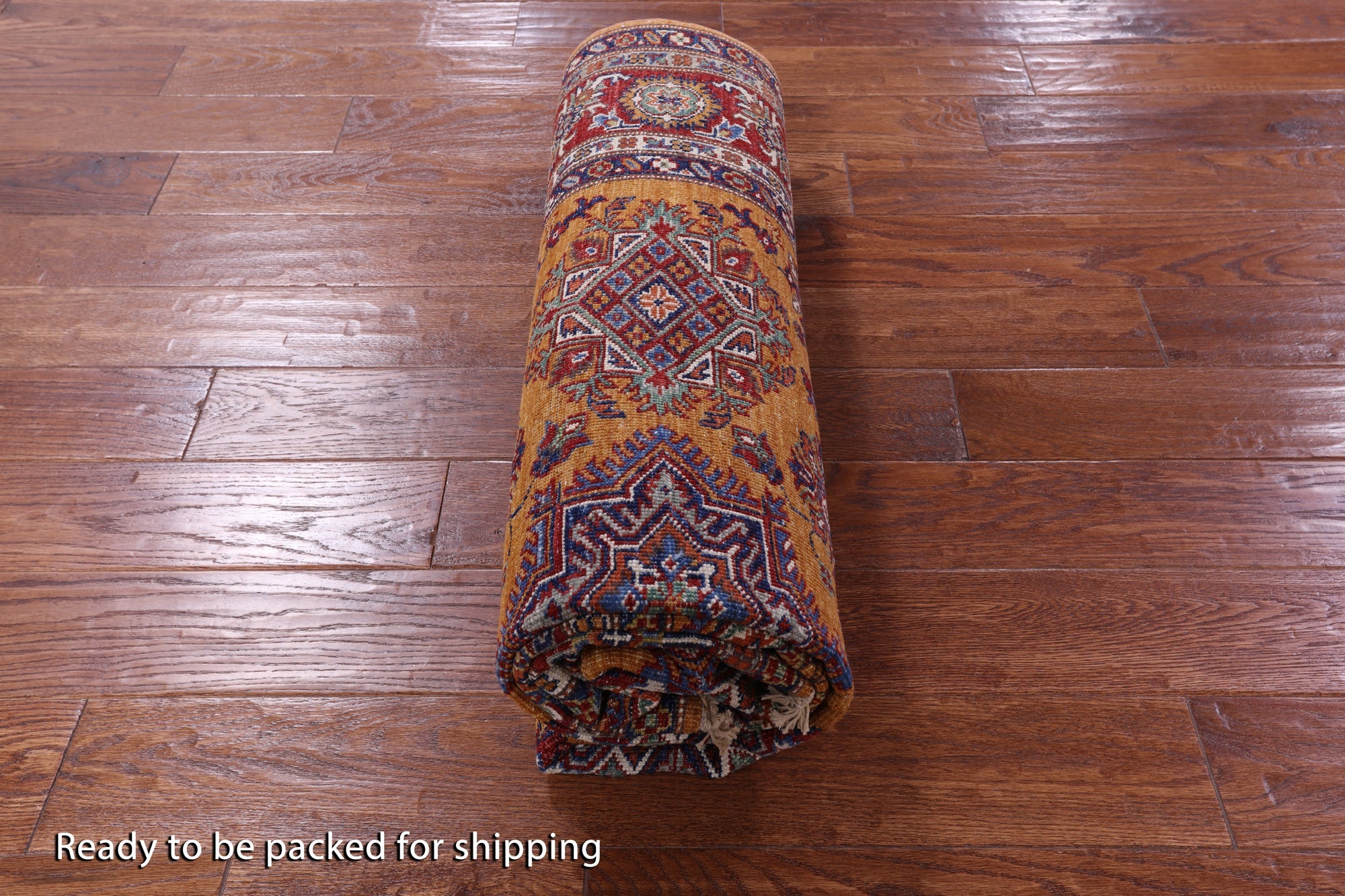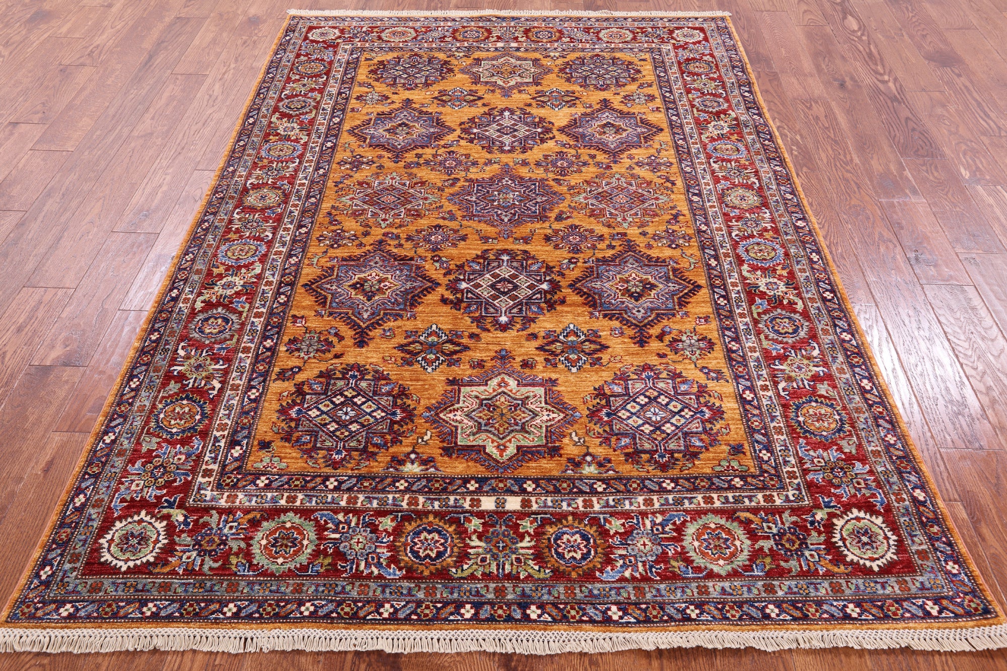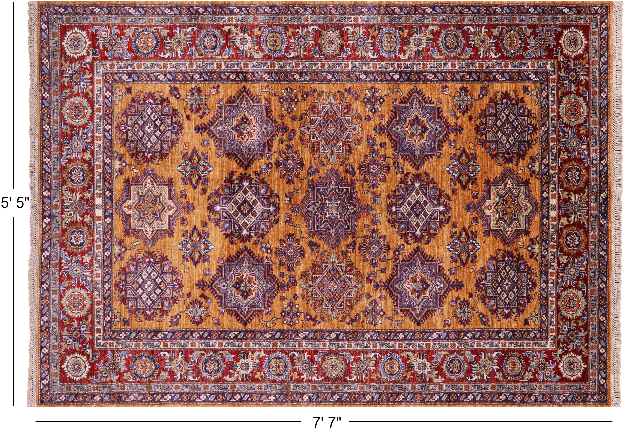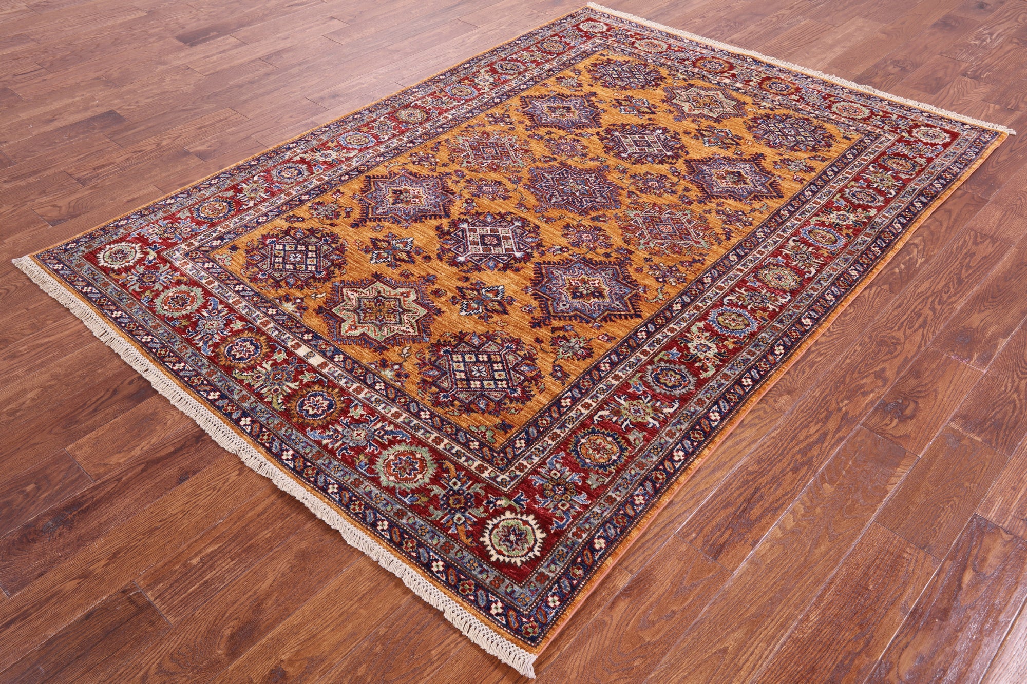 Gold 5' 5" X 7' 7" Super Kazak Geometric Handmade Wool Rug - Q9556 is backordered and will ship as soon as it is back in stock.