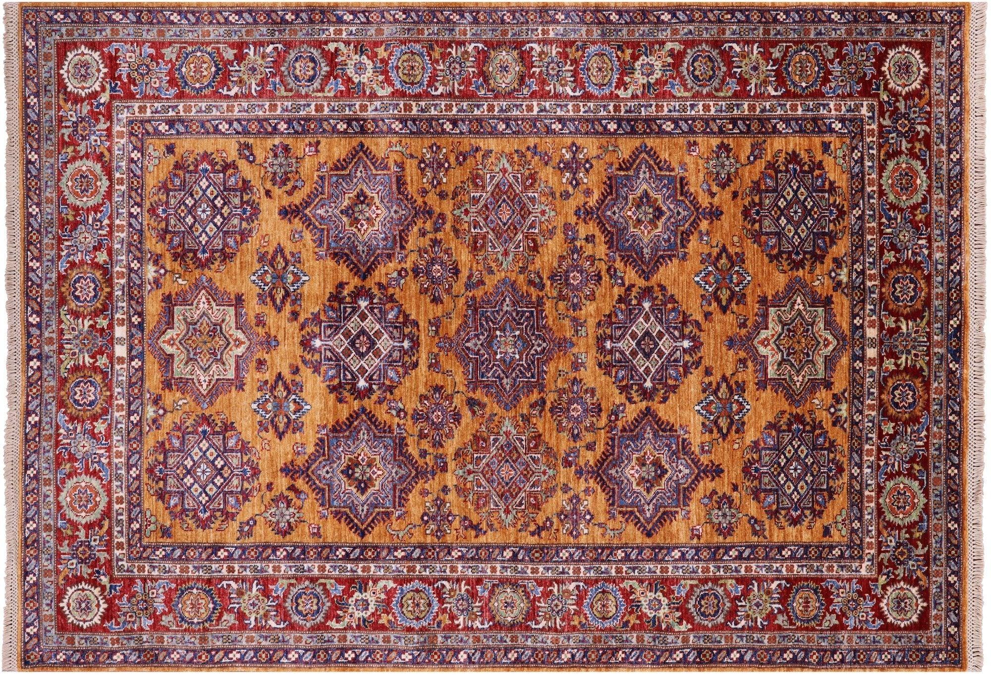 Gold 5' 5" X 7' 7" Super Kazak Geometric Handmade Wool Rug - Q9556