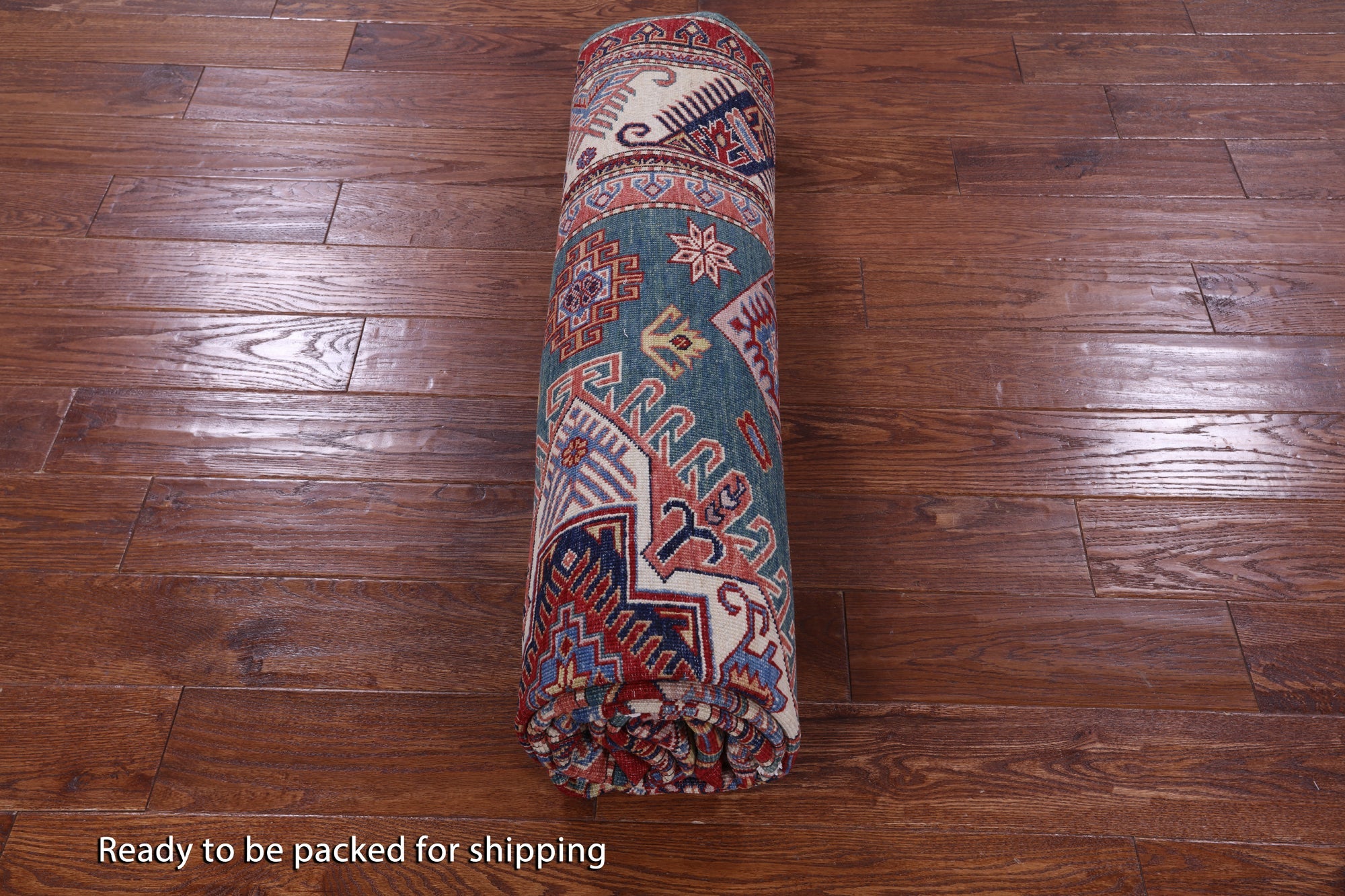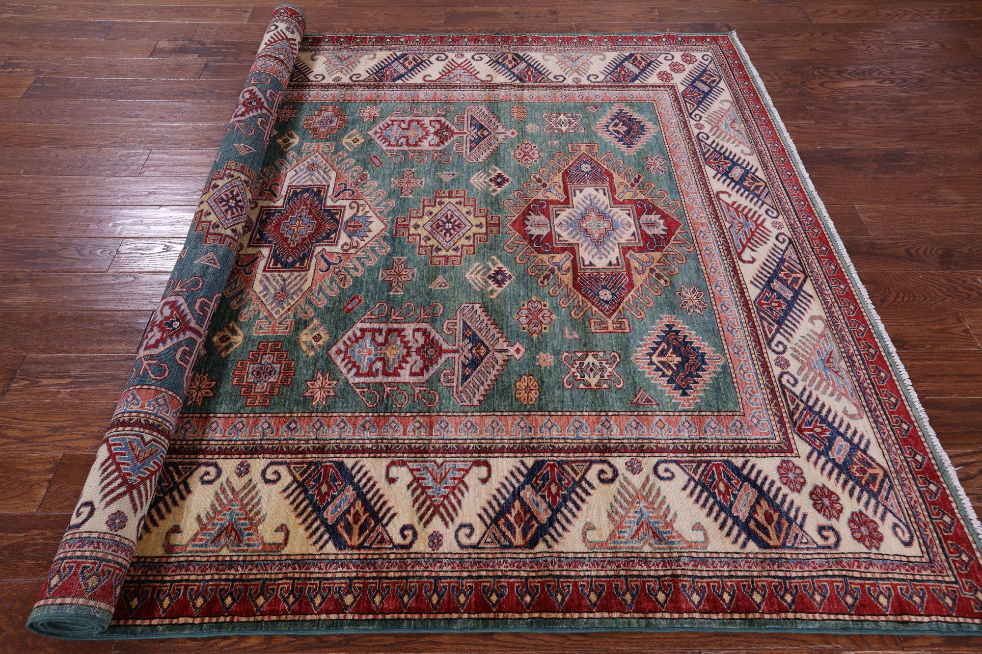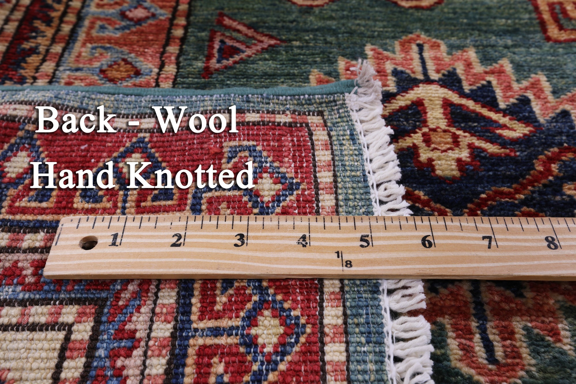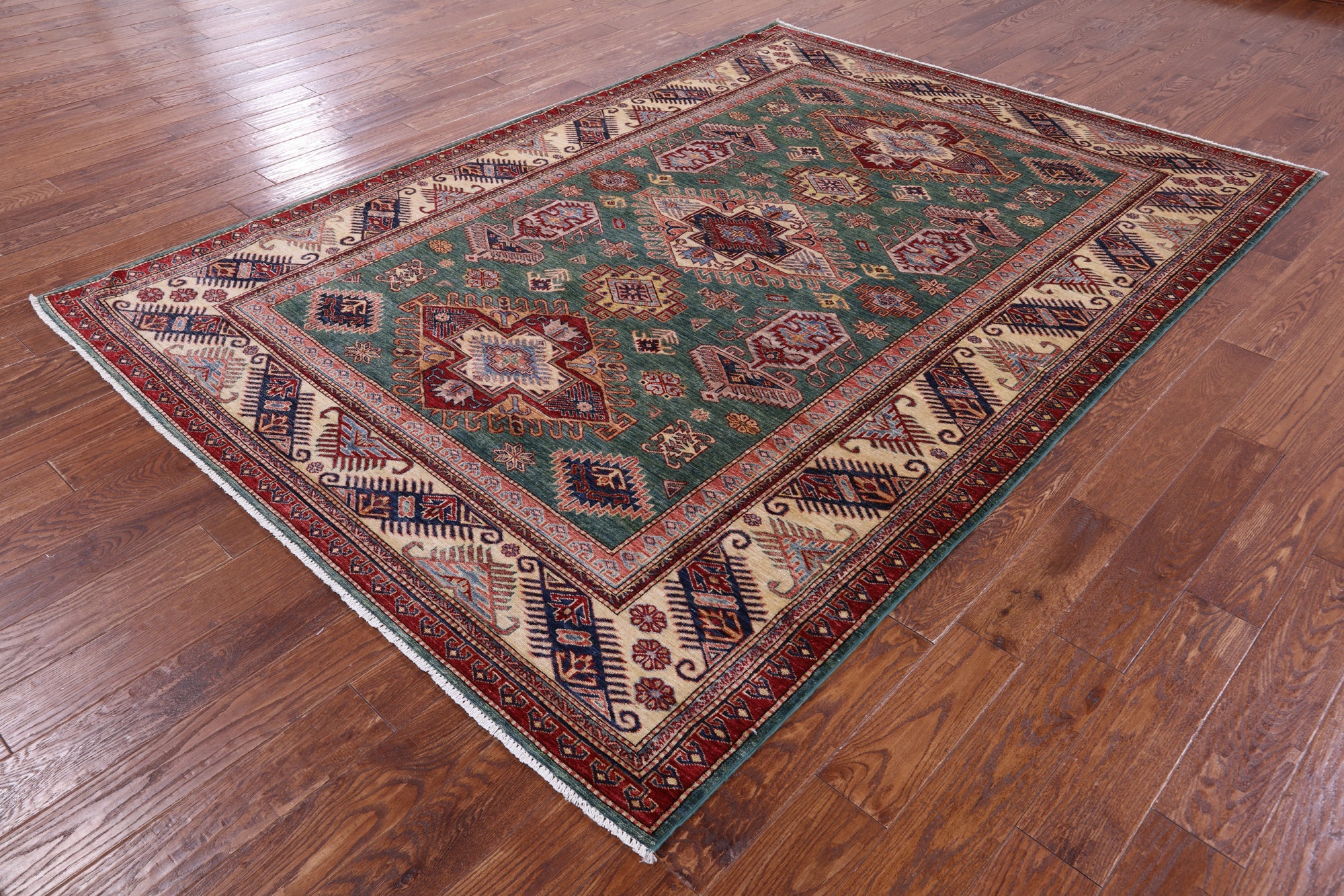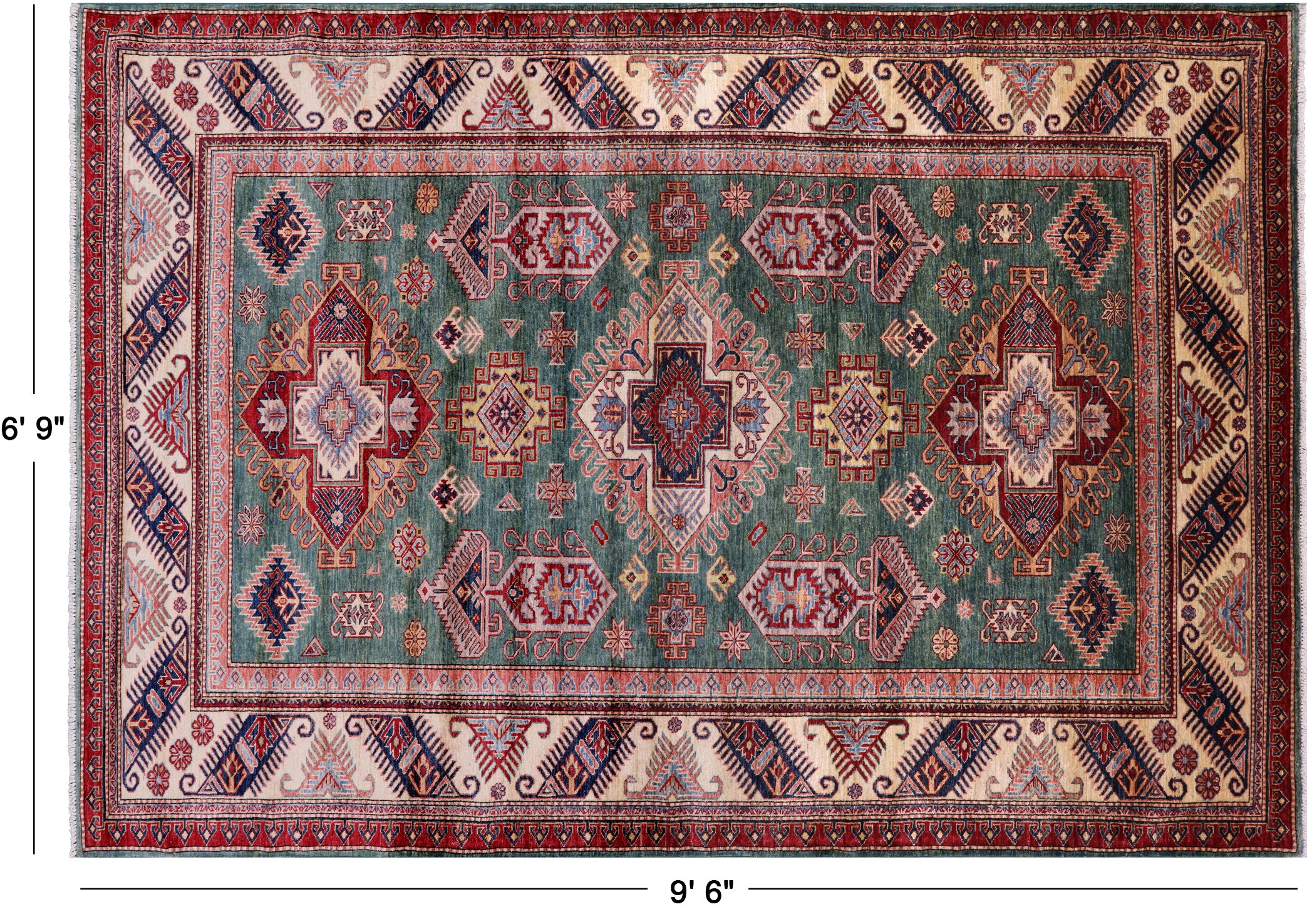 Green 6' 9" X 9' 6" Super Kazak Hand Knotted Wool Rug - Q14532 is backordered and will ship as soon as it is back in stock.