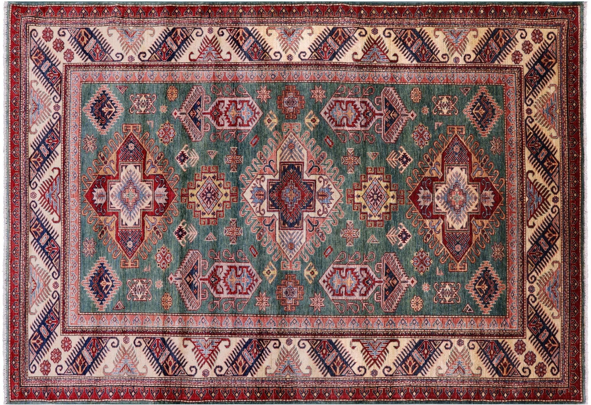 Green 6' 9" X 9' 6" Super Kazak Hand Knotted Wool Rug - Q14532
