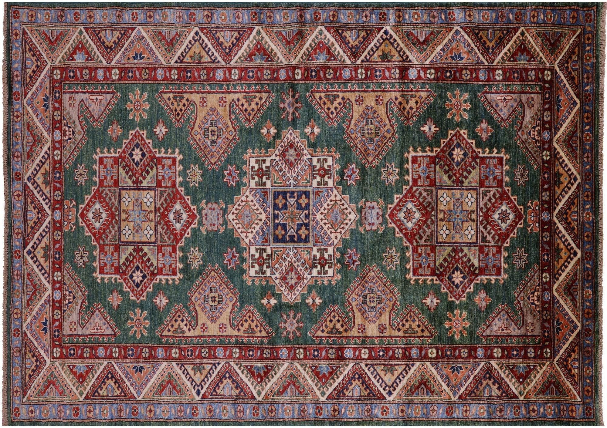 Green 5' 7" X 7' 10" Super Kazak Handmade Wool Rug - Q18249