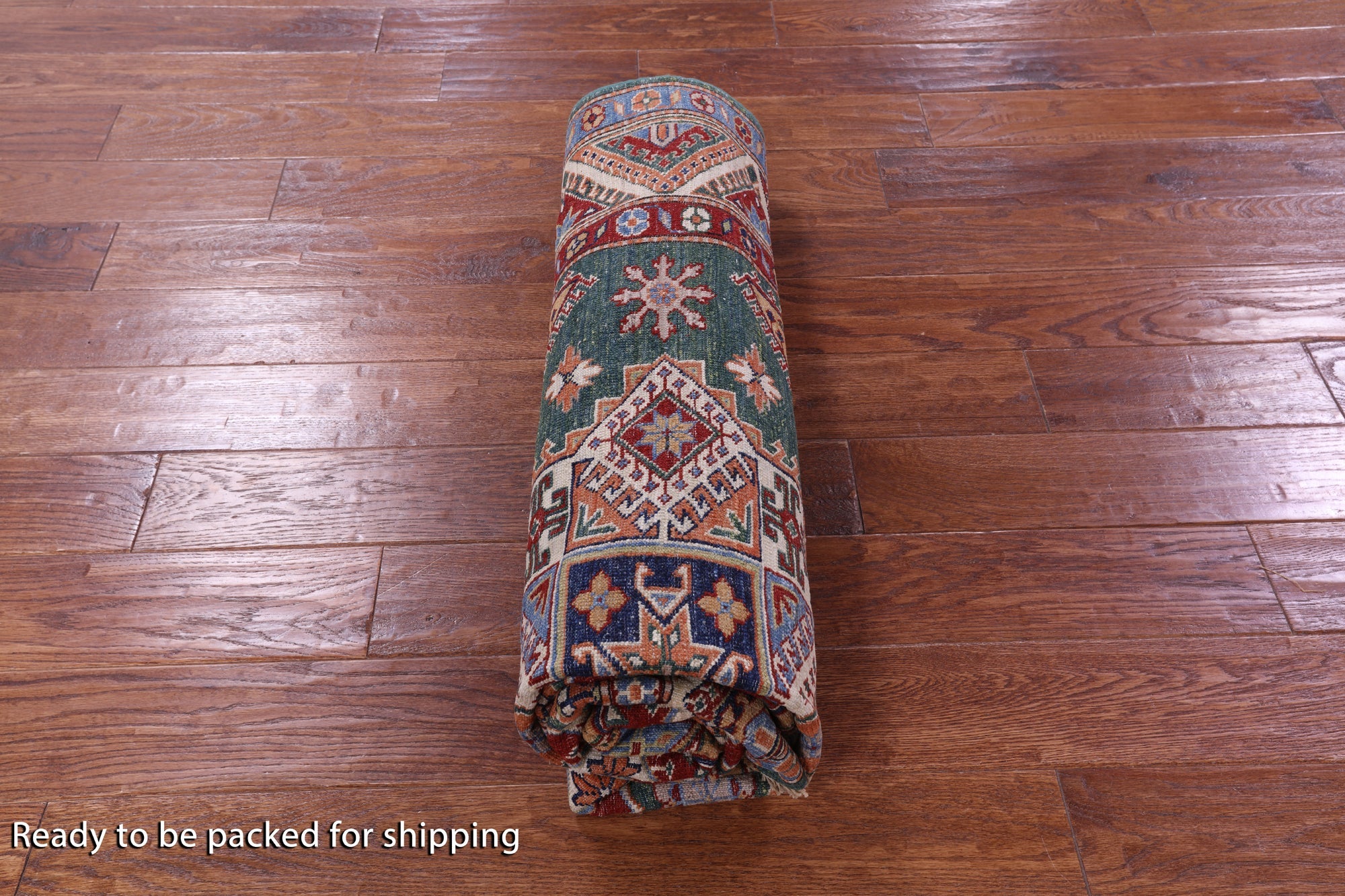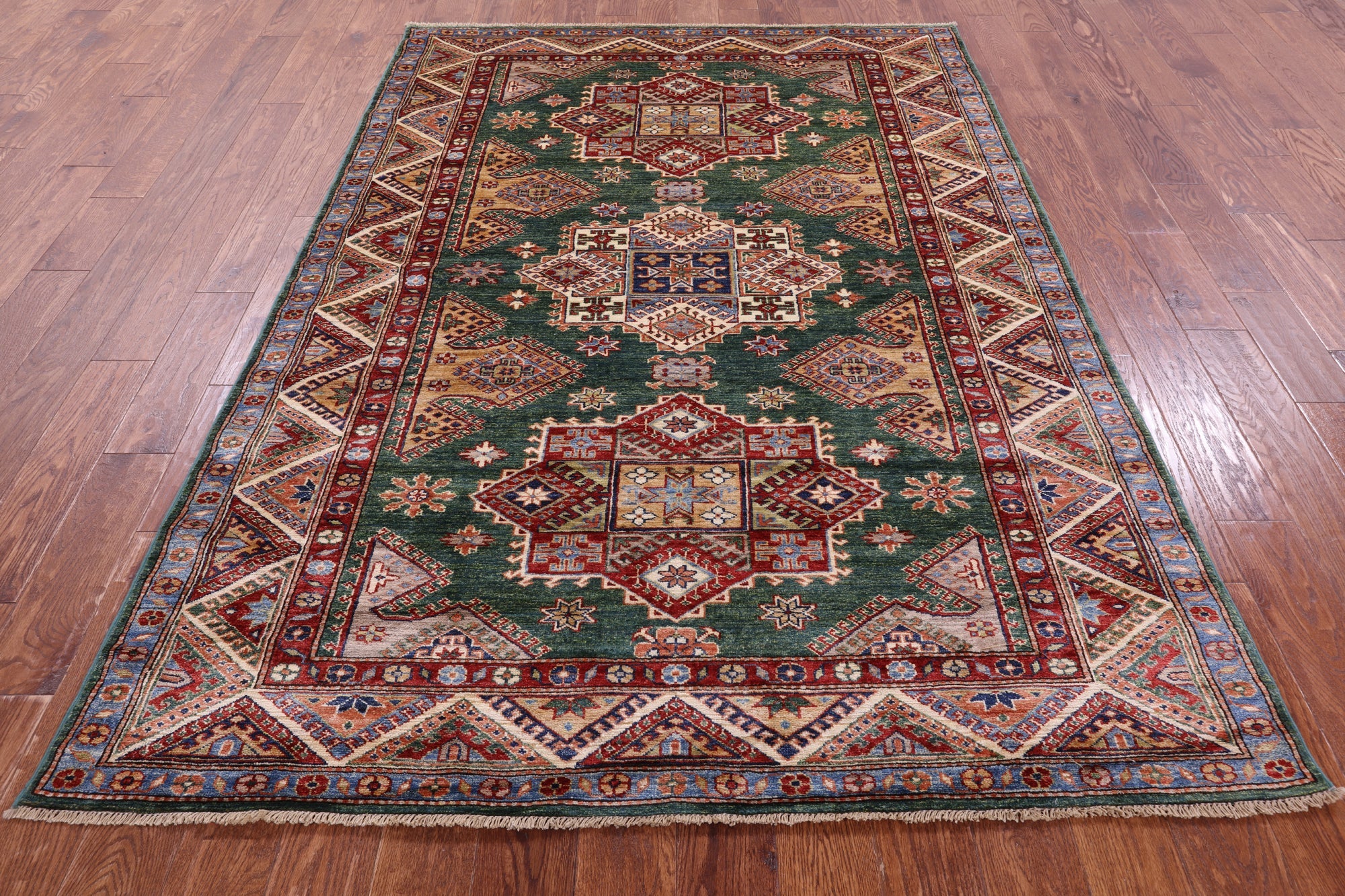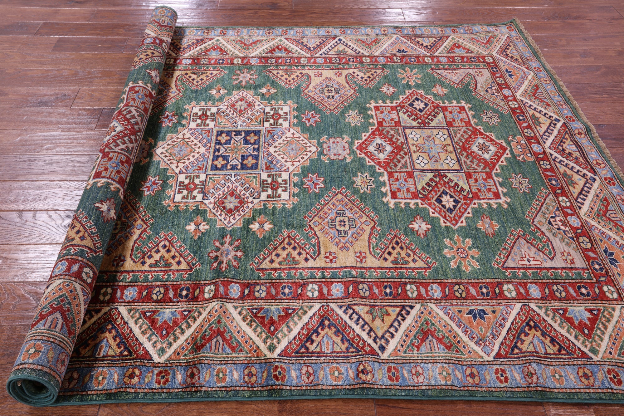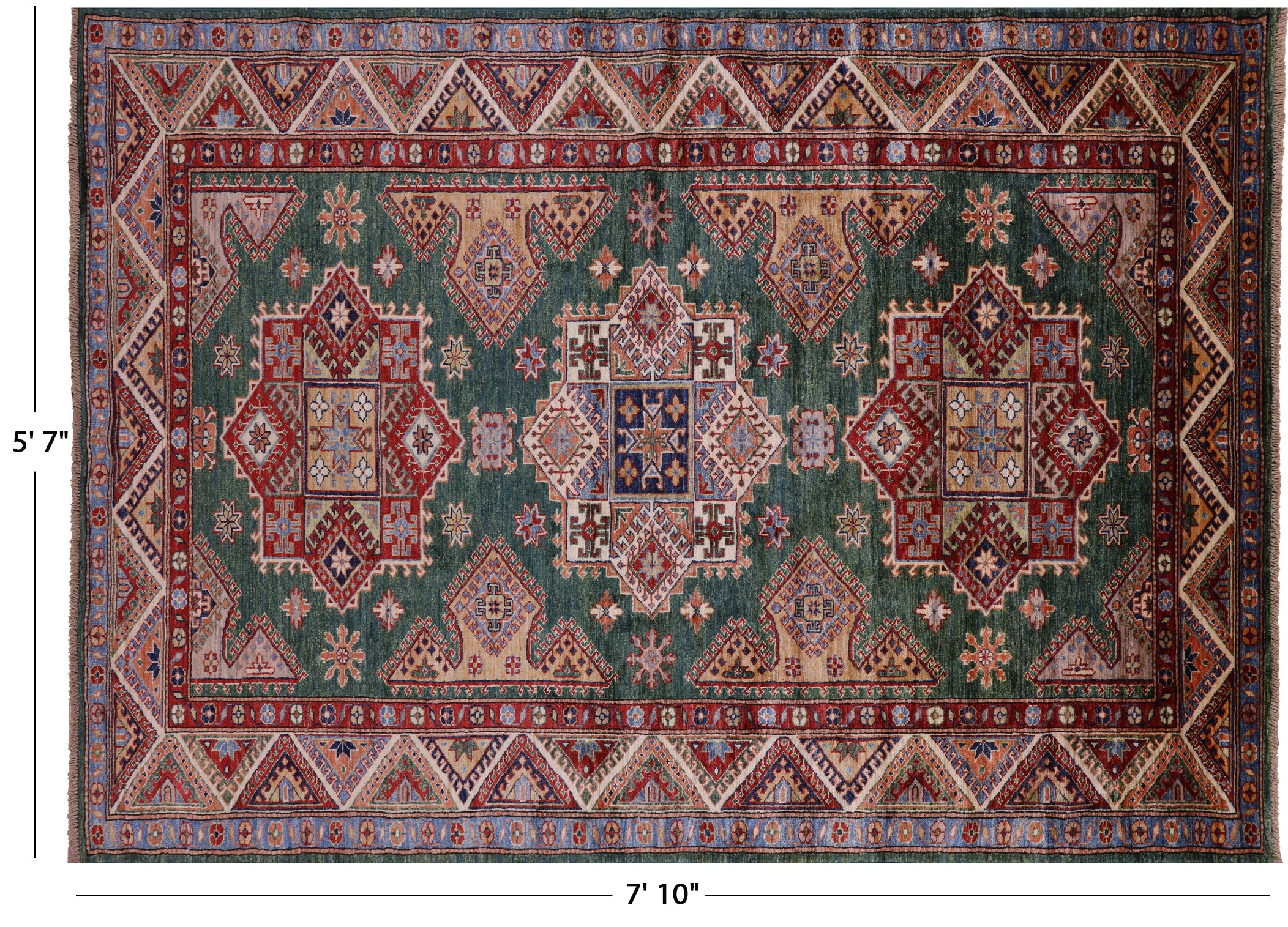 Green 5' 7" X 7' 10" Super Kazak Handmade Wool Rug - Q18249 is backordered and will ship as soon as it is back in stock.