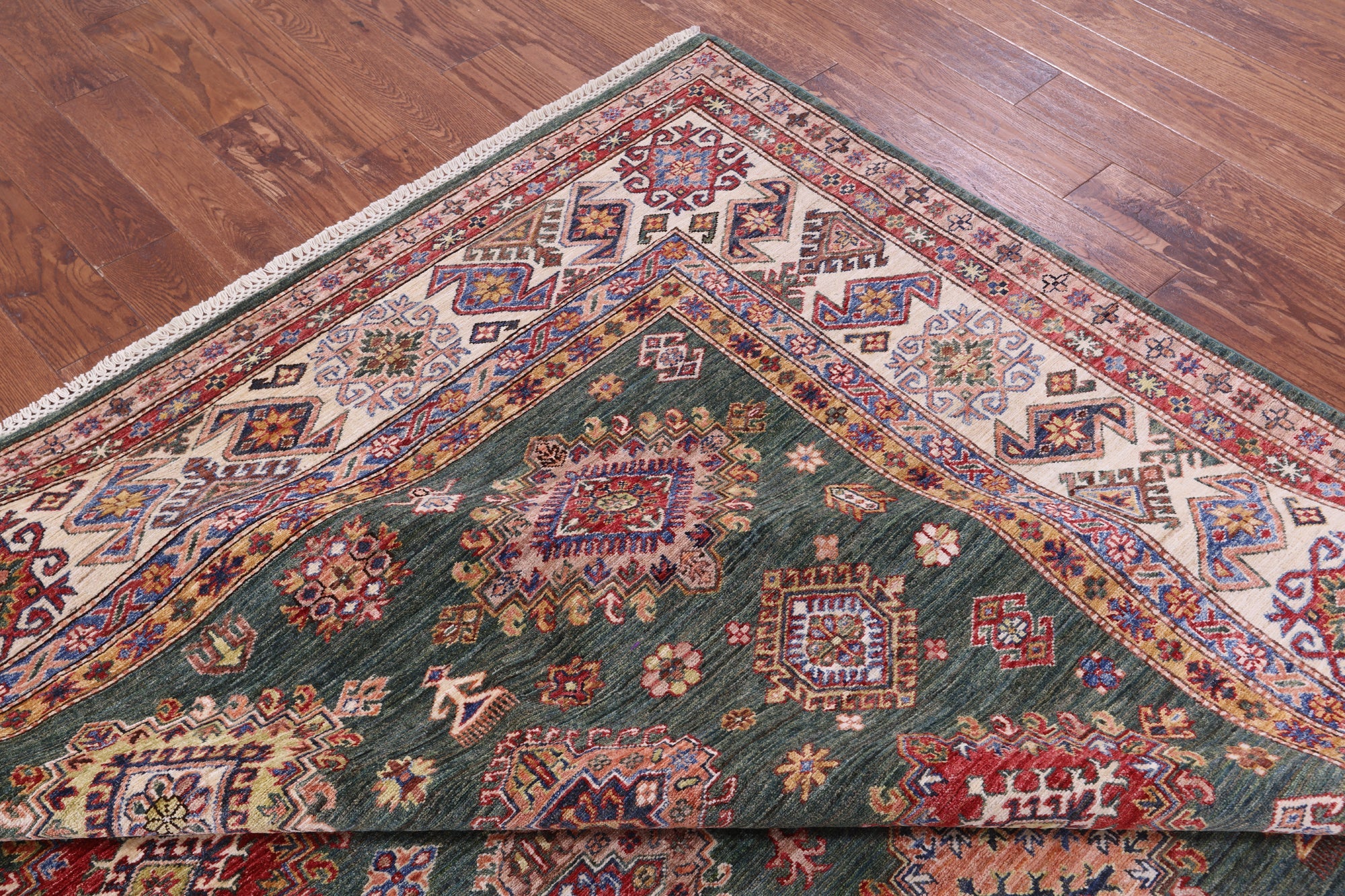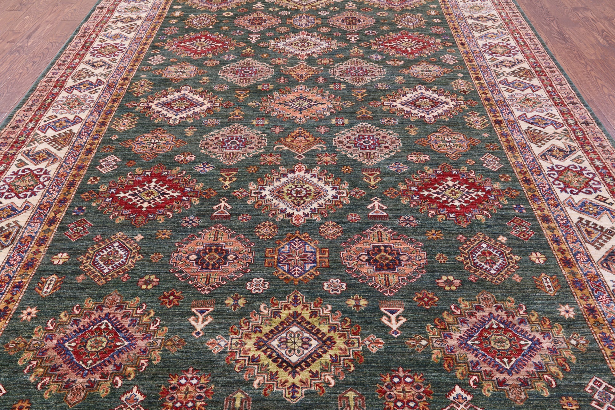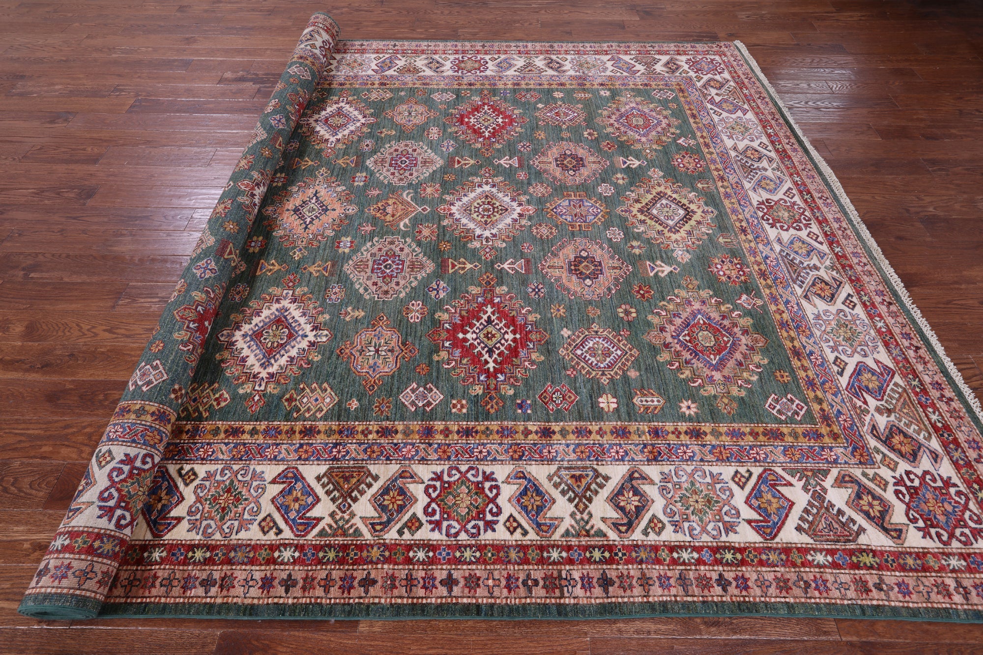 Green Super Kazak Handmade Wool Rug 9' 0" X 12' 9" - Q18448 is backordered and will ship as soon as it is back in stock.
