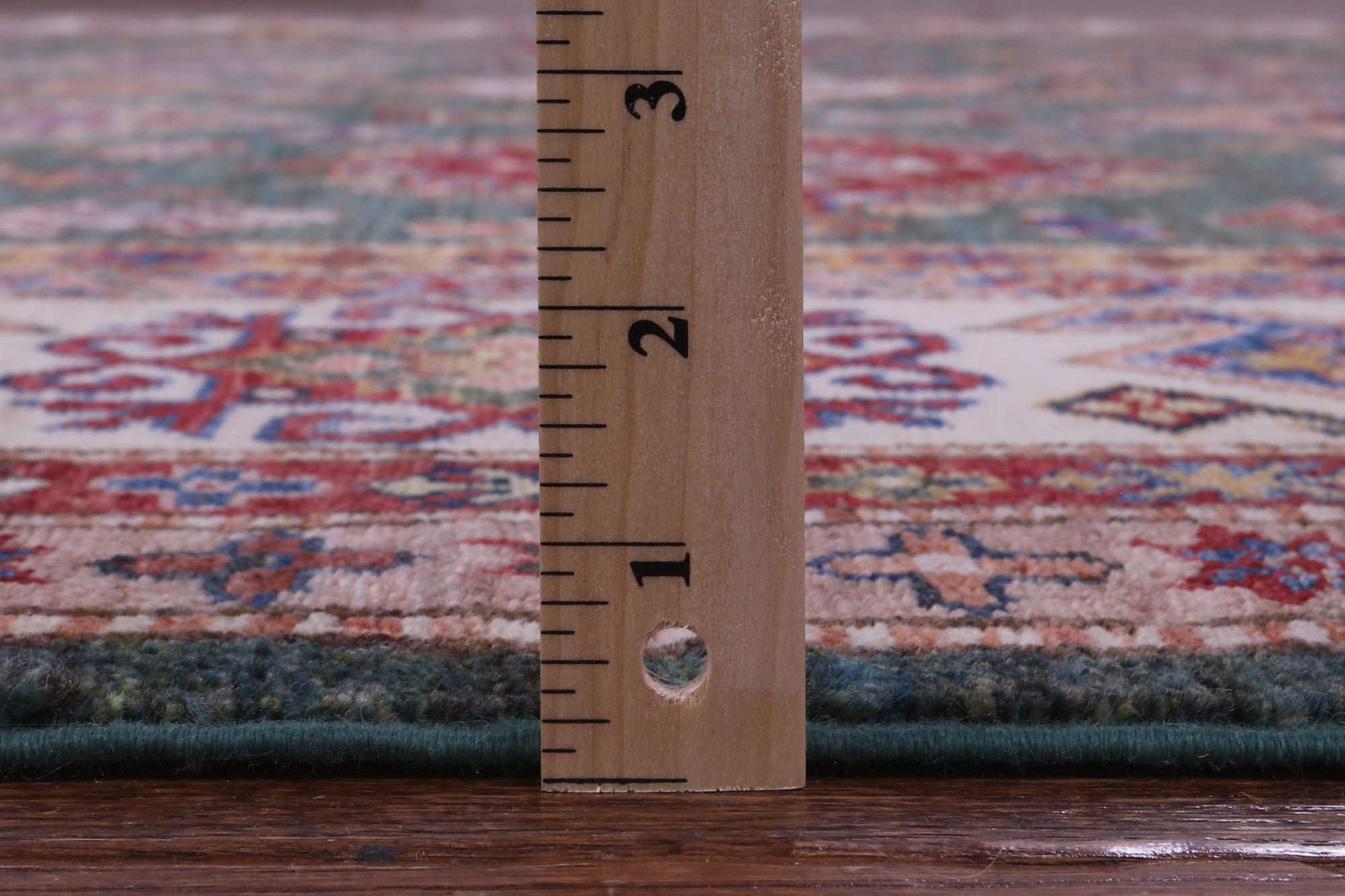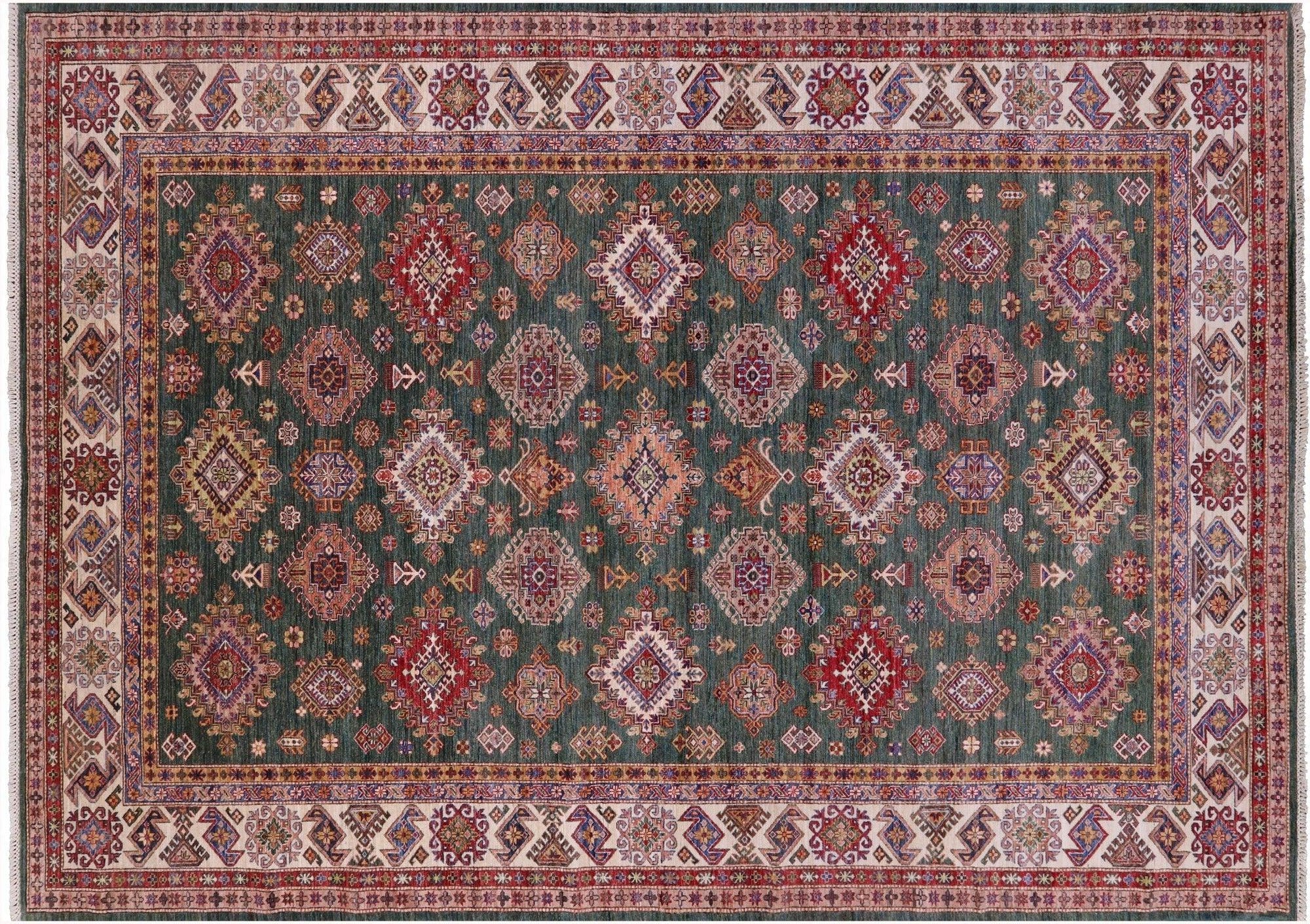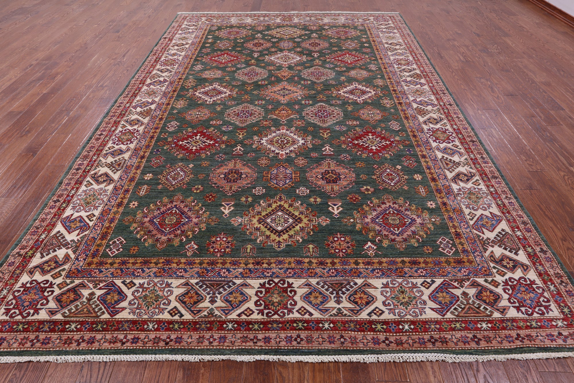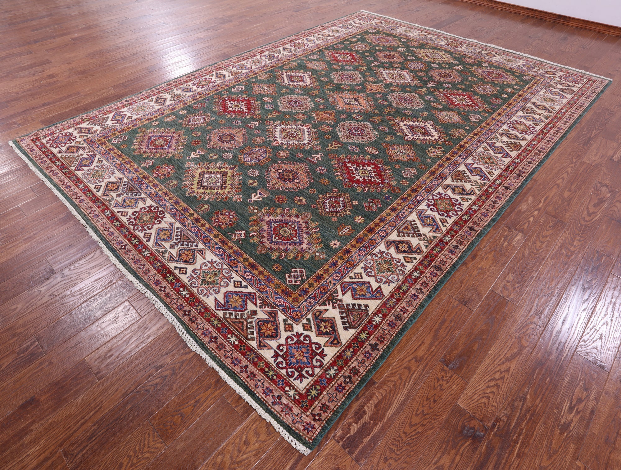 Green Super Kazak Handmade Wool Rug 9' 0" X 12' 9" - Q18448 is backordered and will ship as soon as it is back in stock.