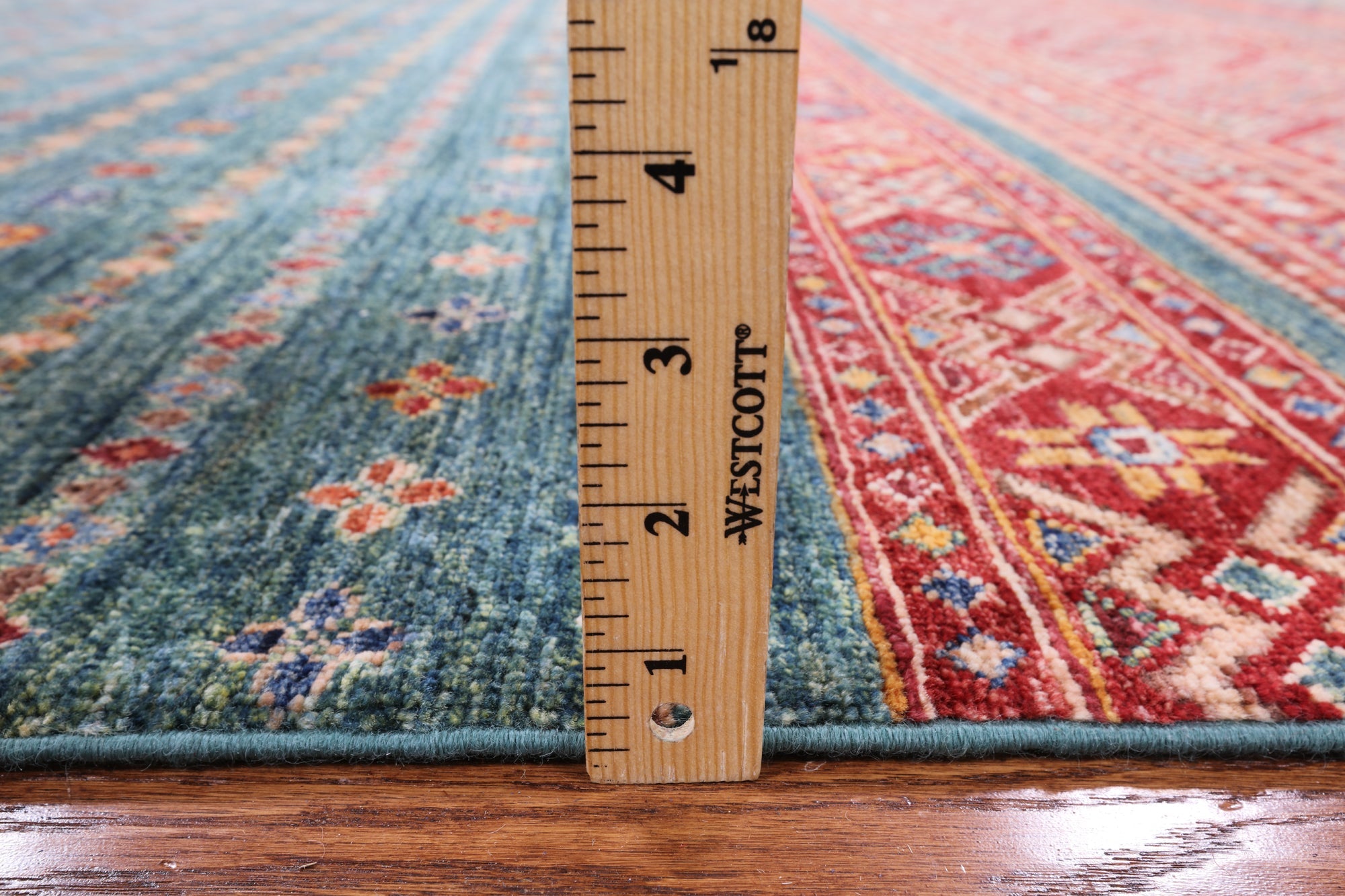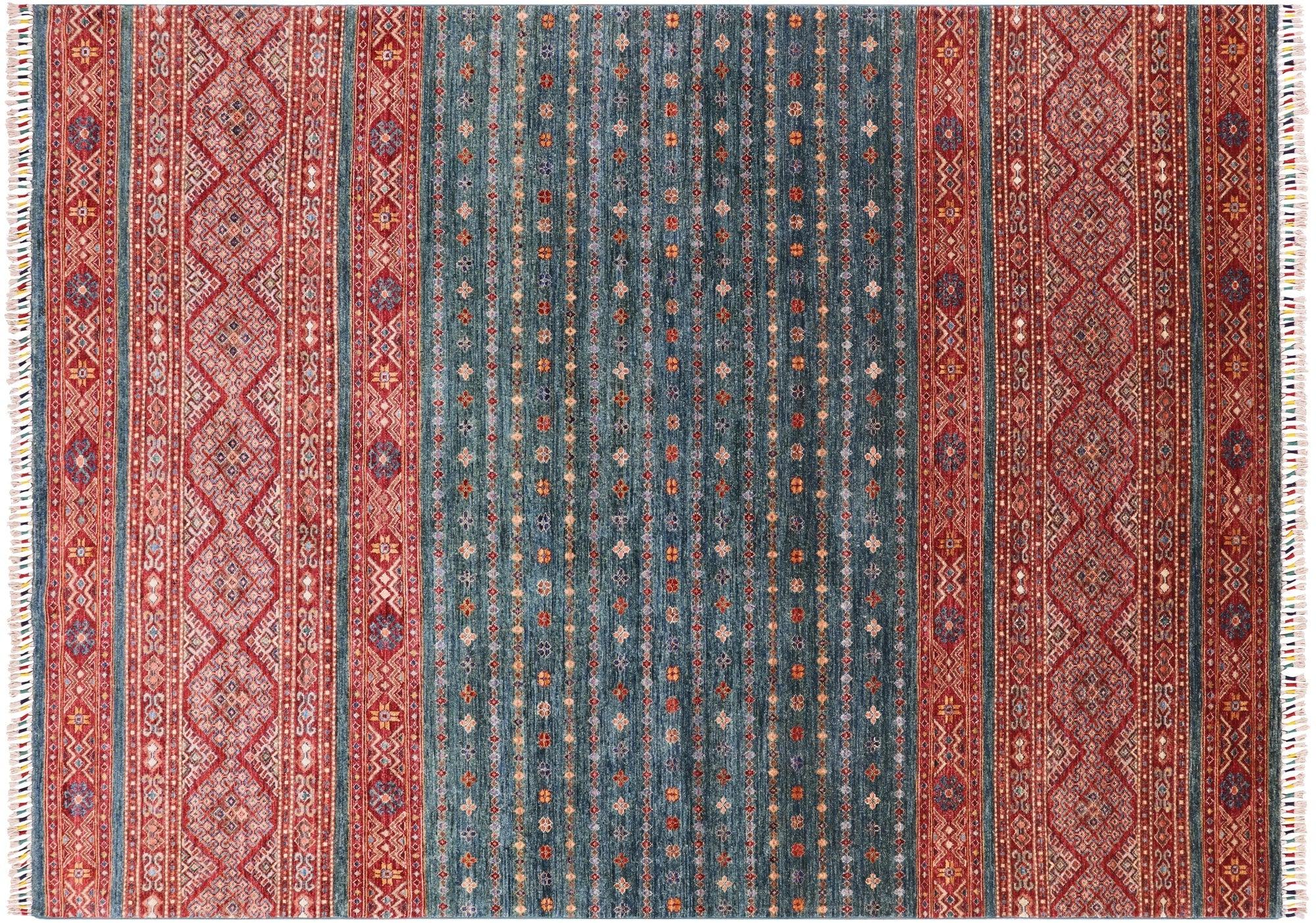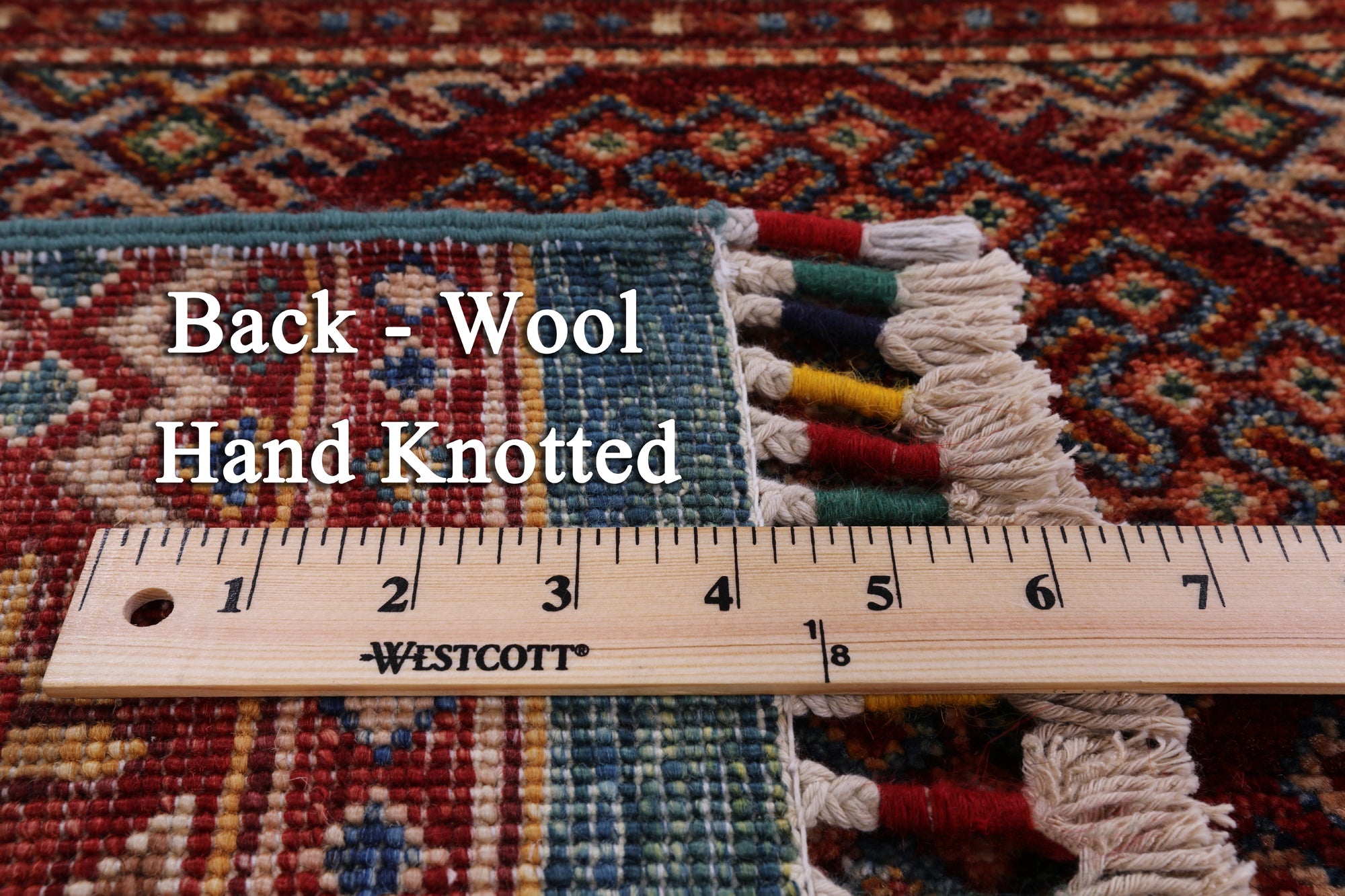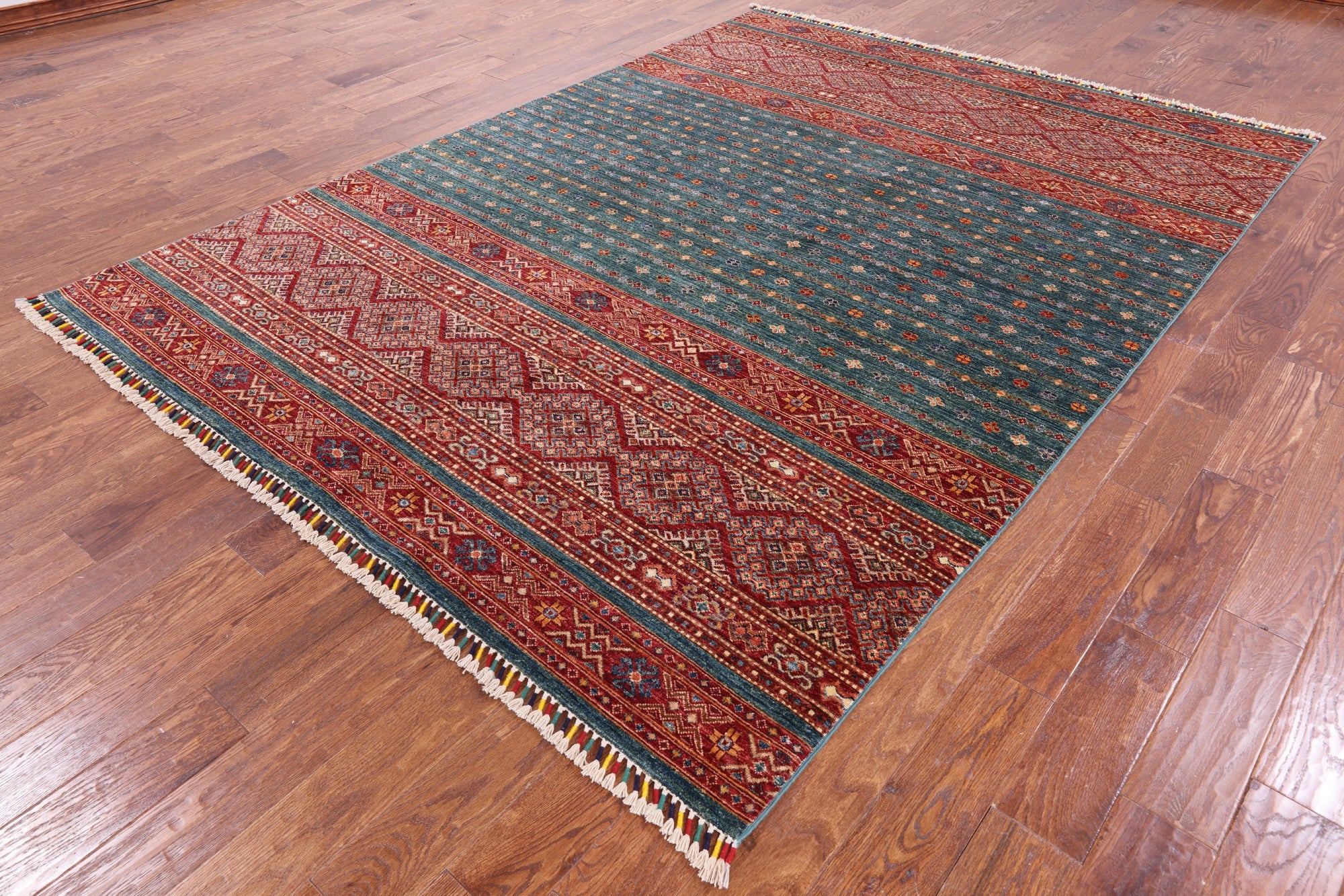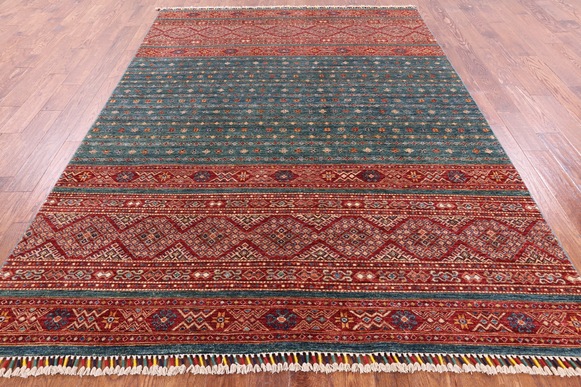 Green Super Kazak Khorjin Handmade Wool Rug 6' 11" X 9' 6" - Q2935 is backordered and will ship as soon as it is back in stock.