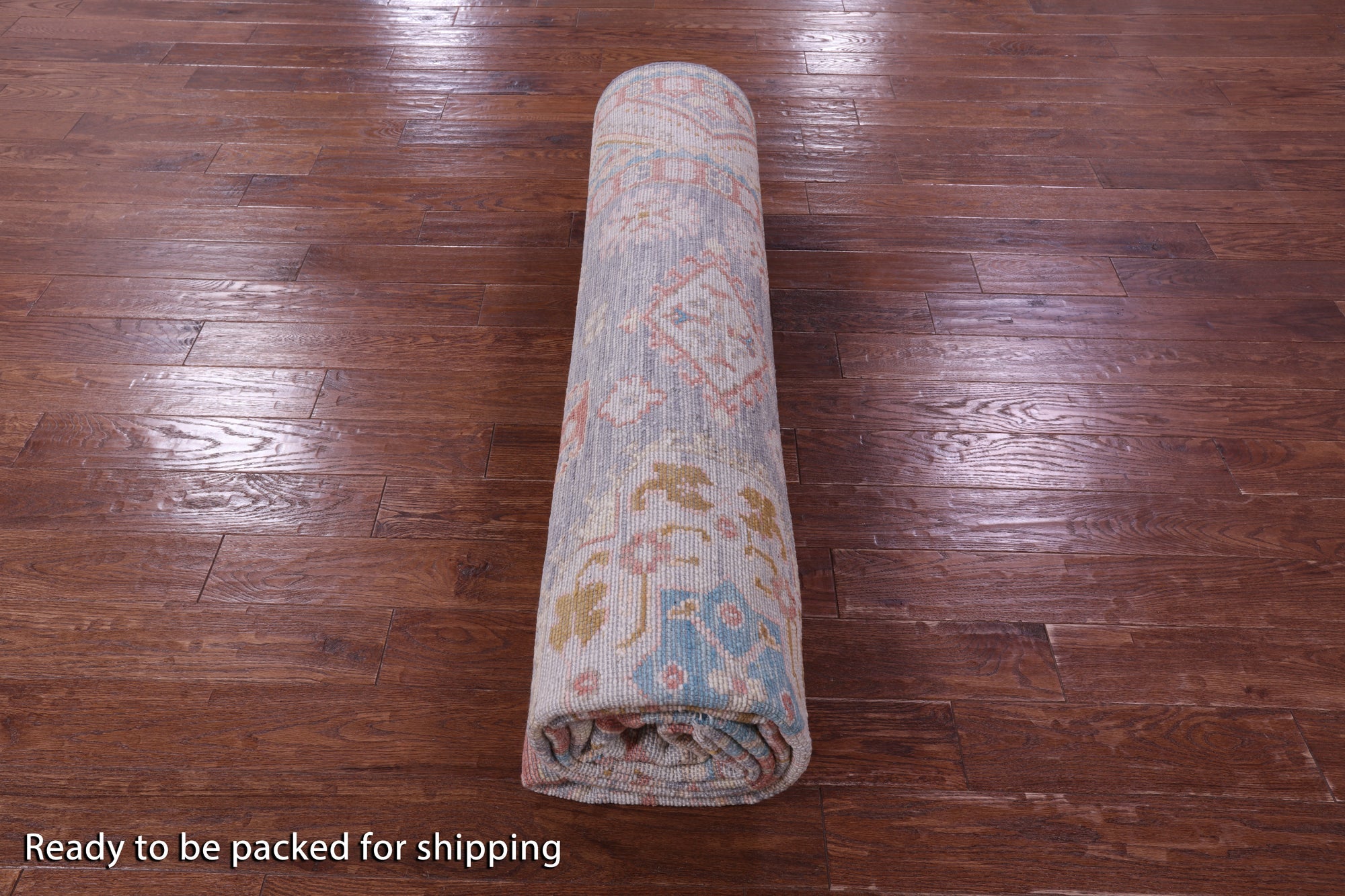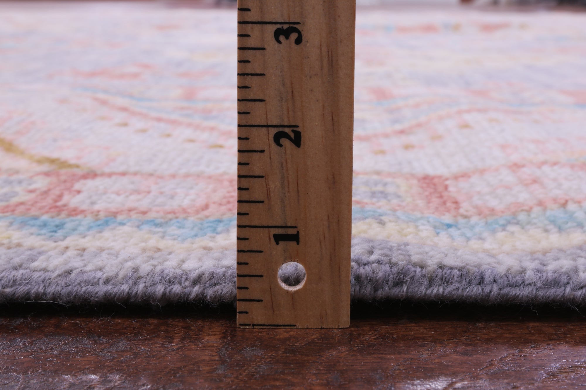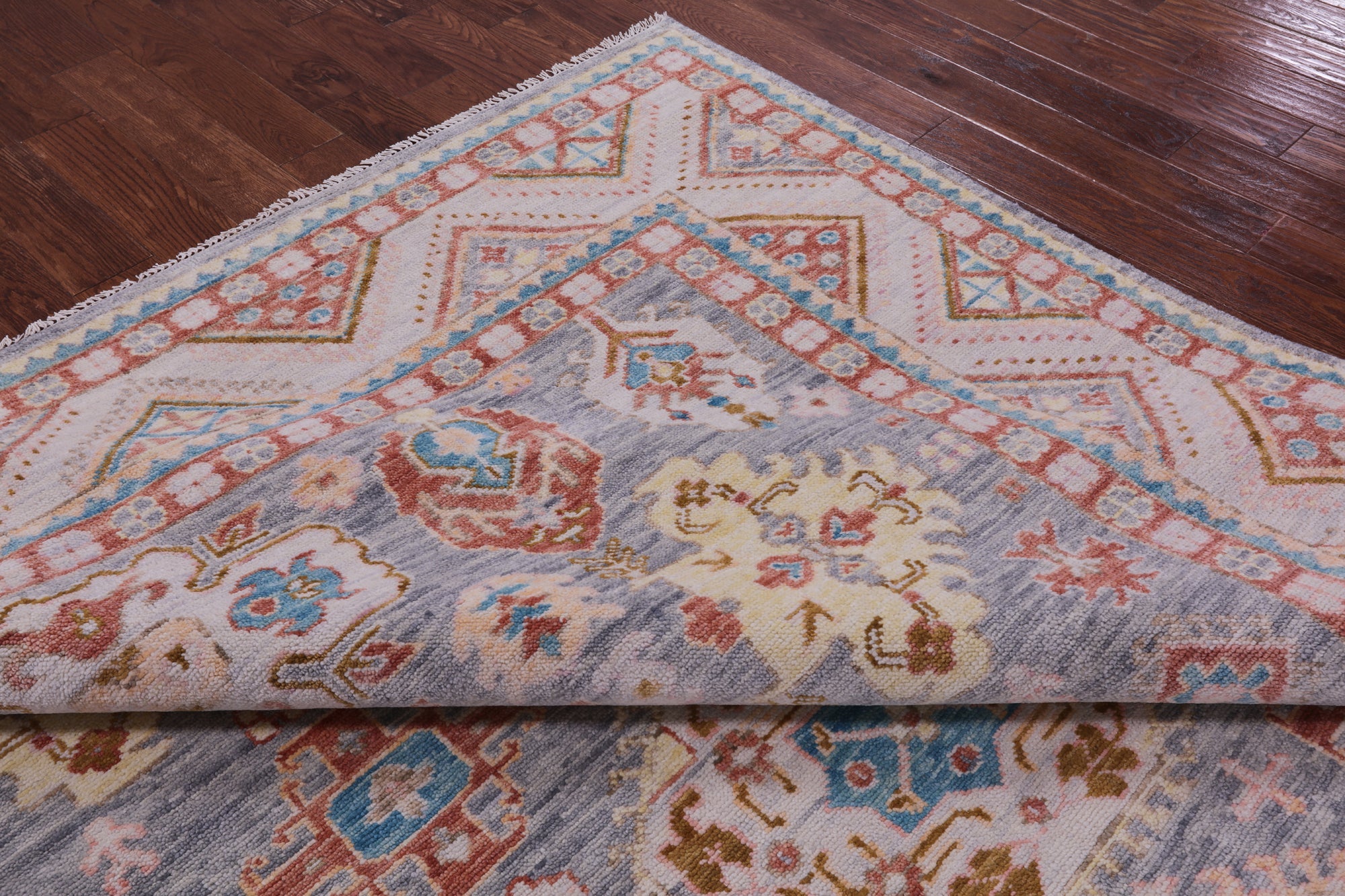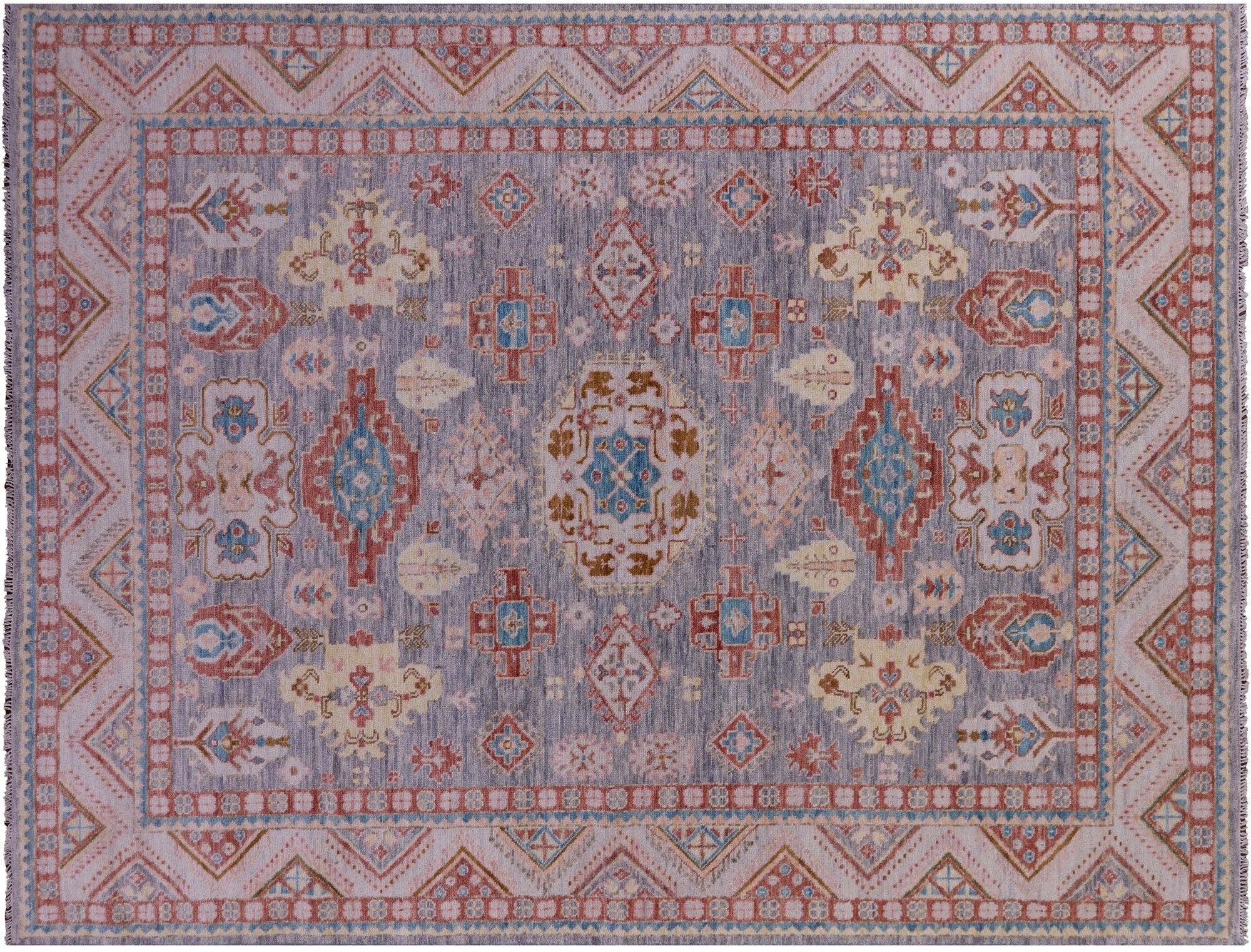 Grey 9' 1" X 12' 0" Geometric Kazak Hand-Knotted Wool Rug - Q19076