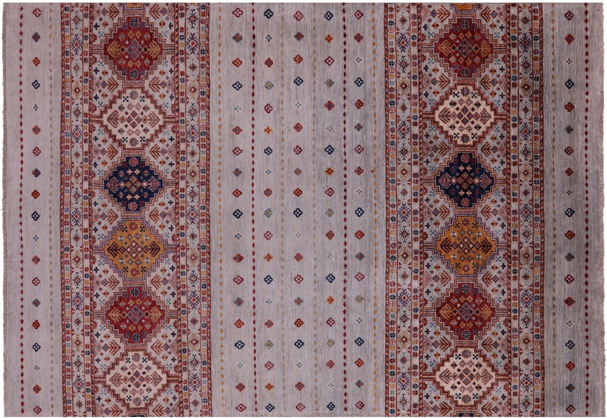 Grey Hand Knotted Khorjin Super Kazak Rug 6' 7" X 9' 6" - Q5661