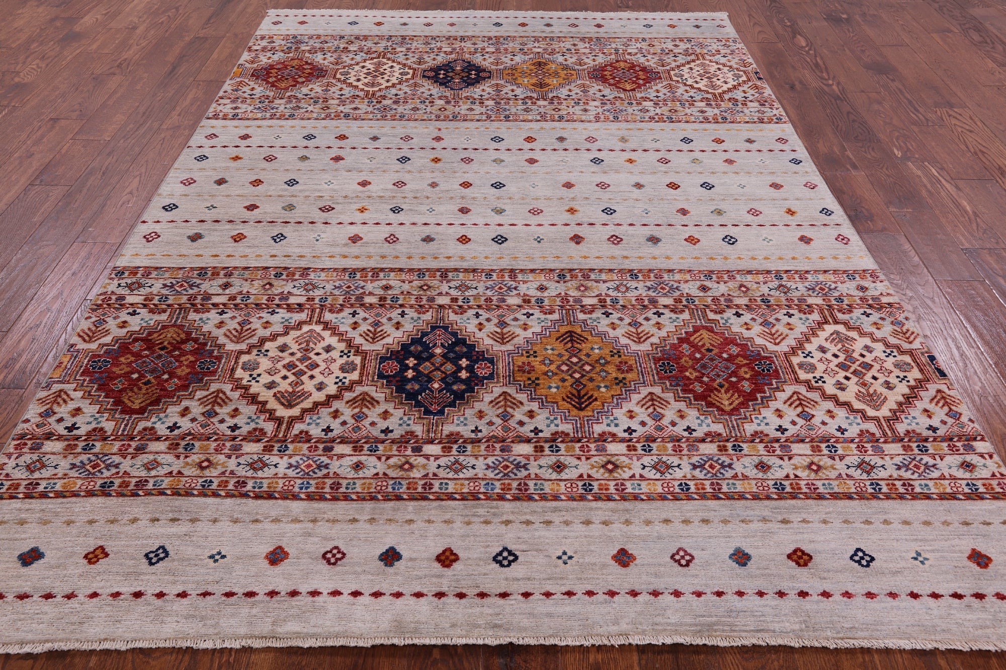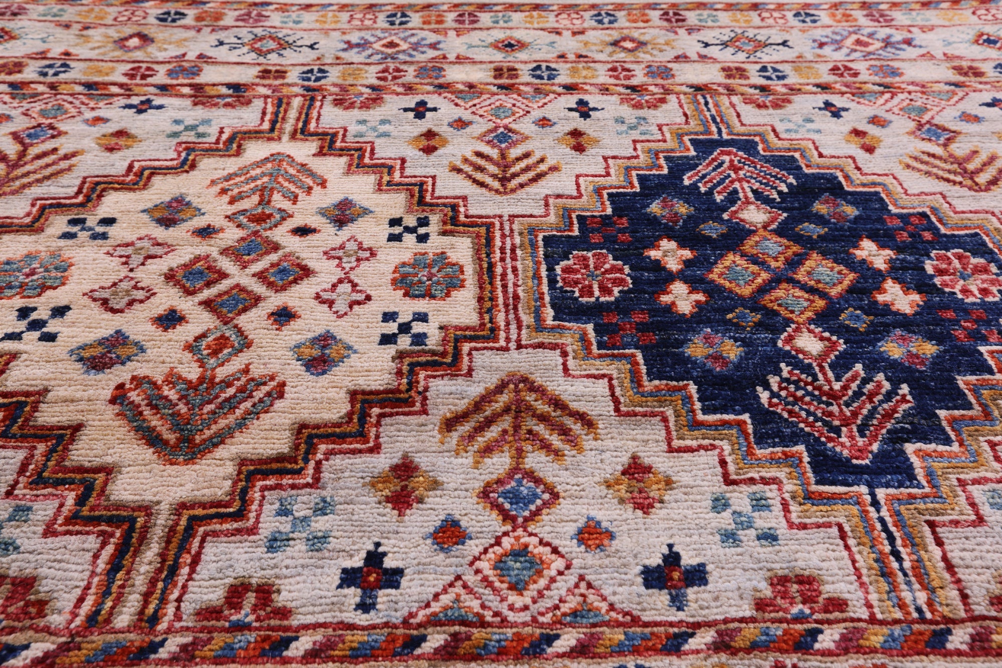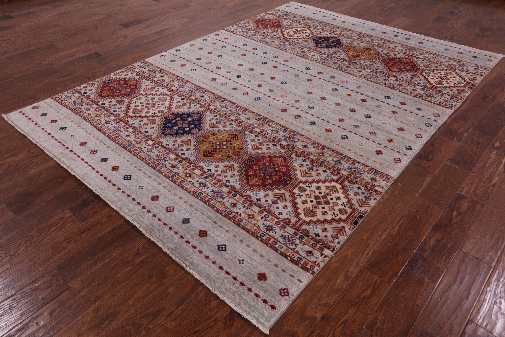 Grey Hand Knotted Khorjin Super Kazak Rug 6' 7" X 9' 6" - Q5661 is backordered and will ship as soon as it is back in stock.