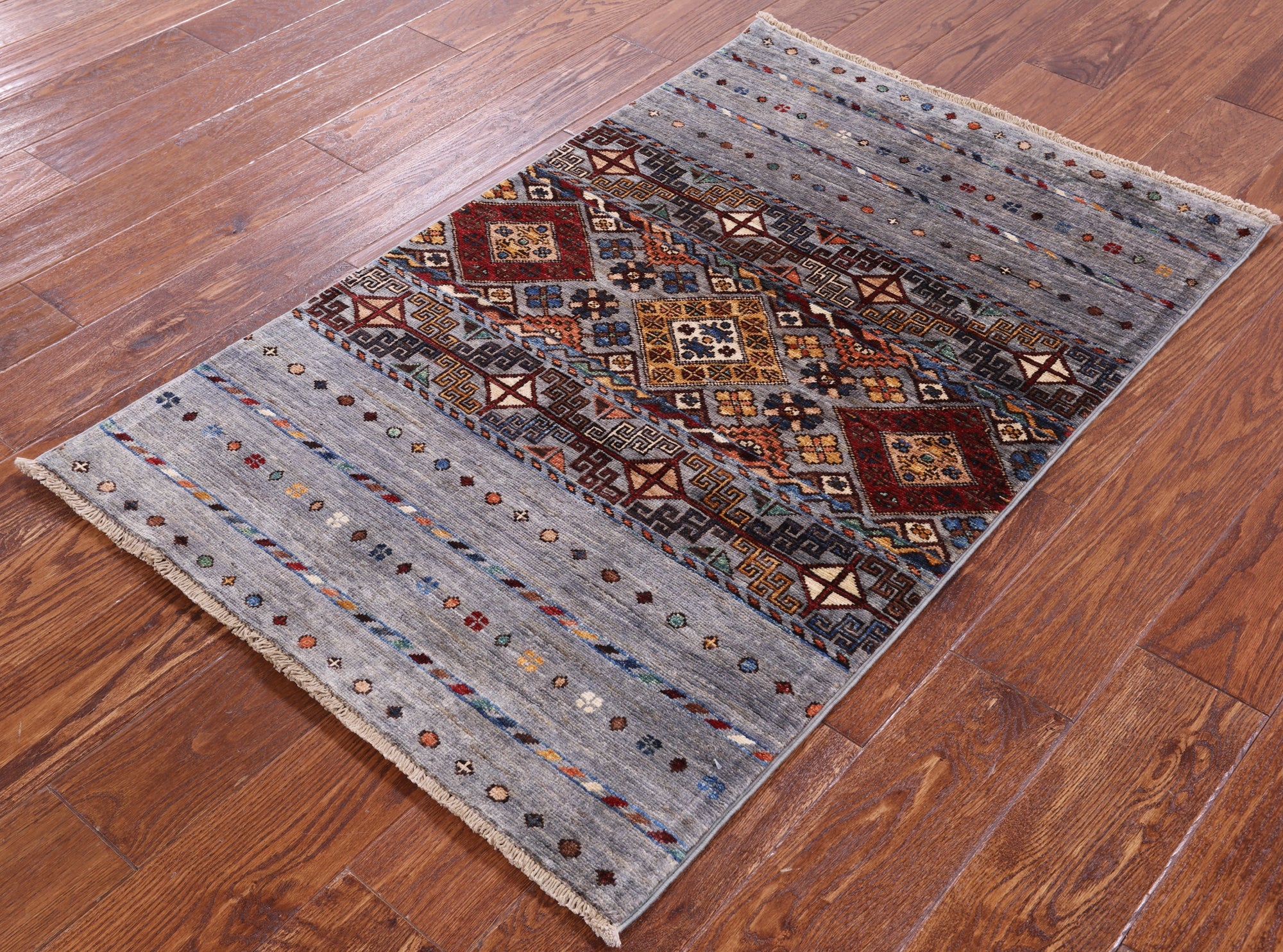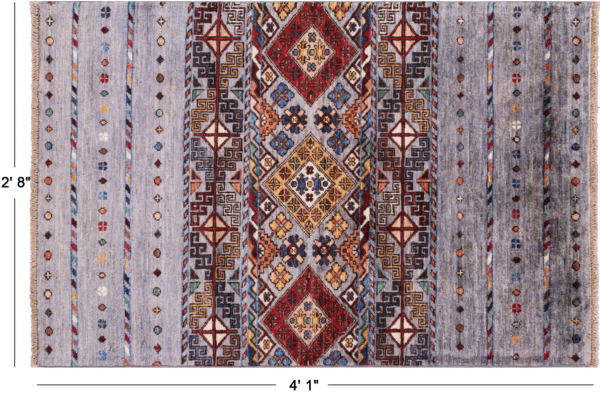 Grey 2' 8" X 4' 1" Handmade Khorjin Super Kazak Wool Rug - Q12338