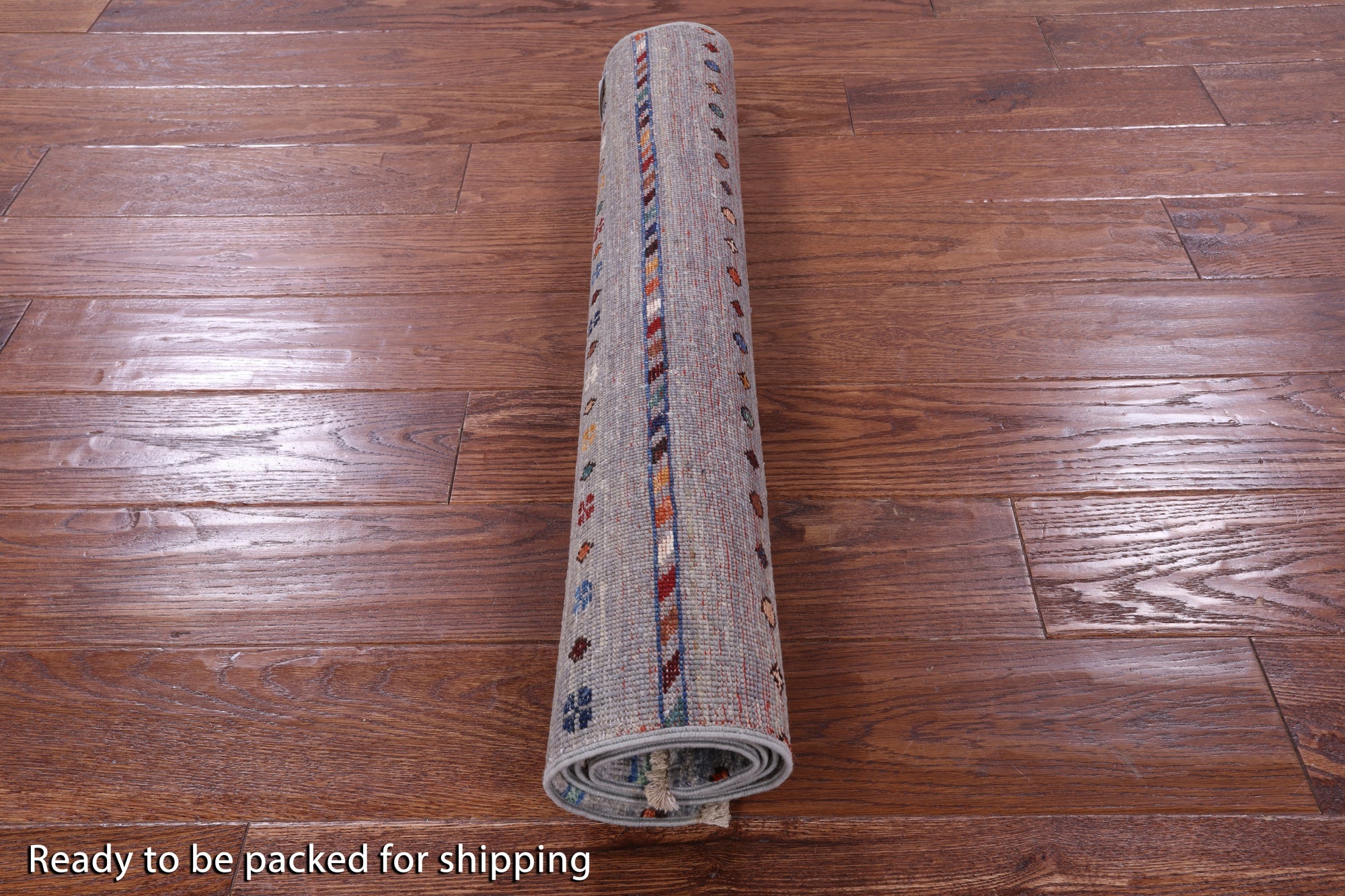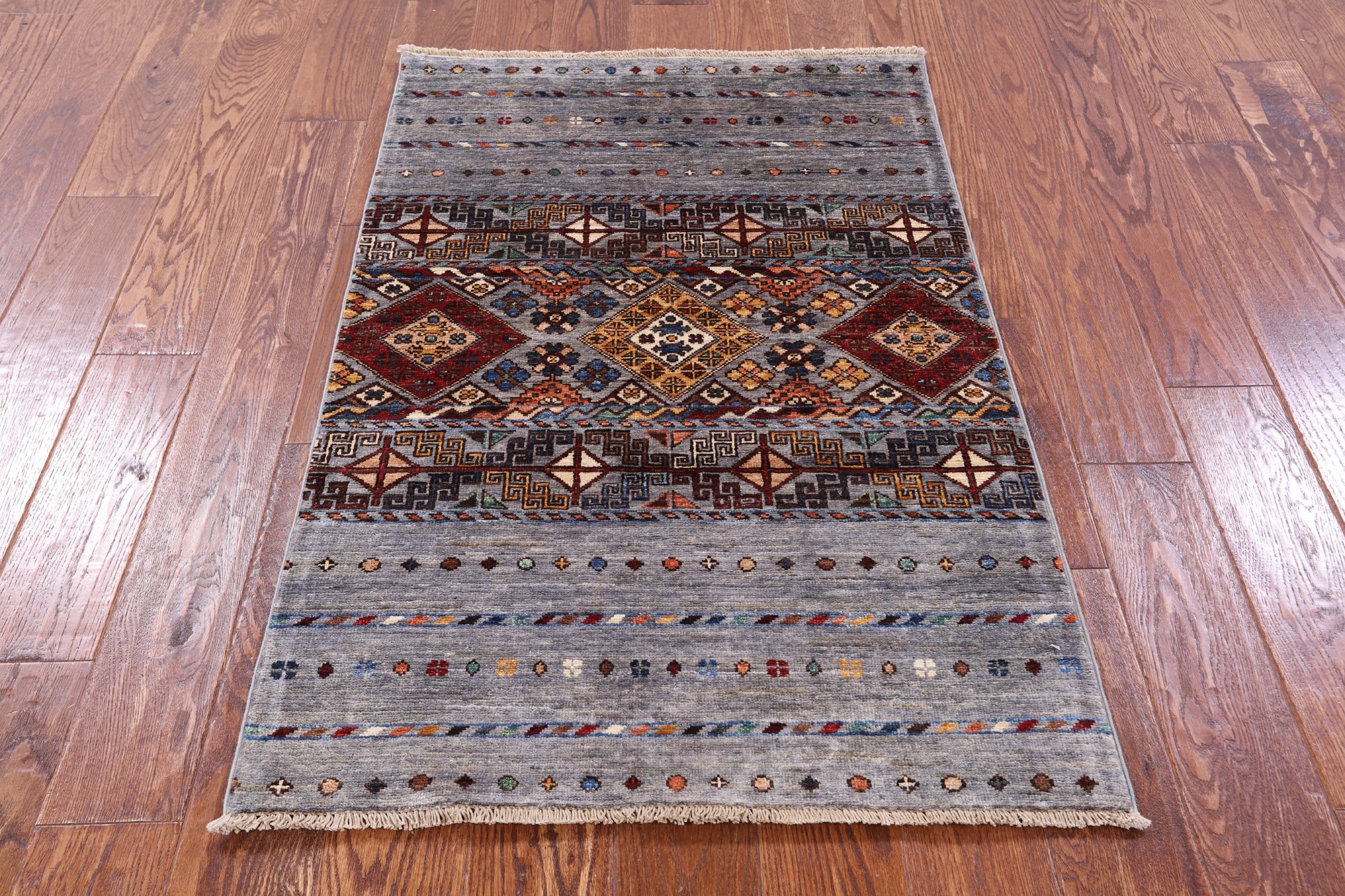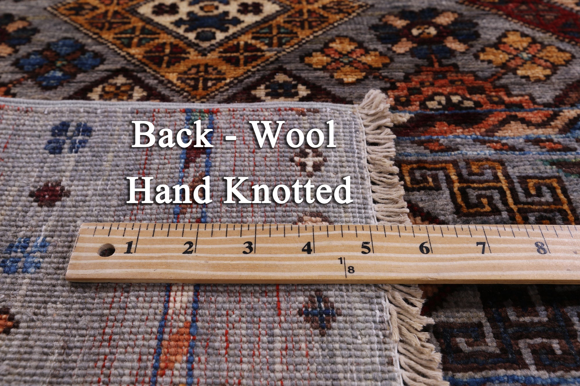 Grey 2' 8" X 4' 1" Handmade Khorjin Super Kazak Wool Rug - Q12338 is backordered and will ship as soon as it is back in stock.