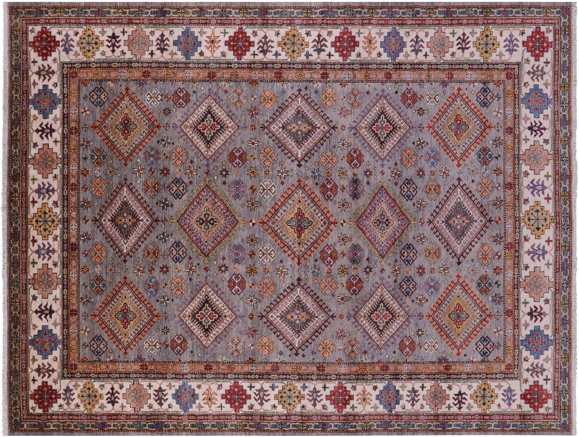 Grey Handmade Super Kazak Wool Rug 8' 4" X 10' 11" - Q22025