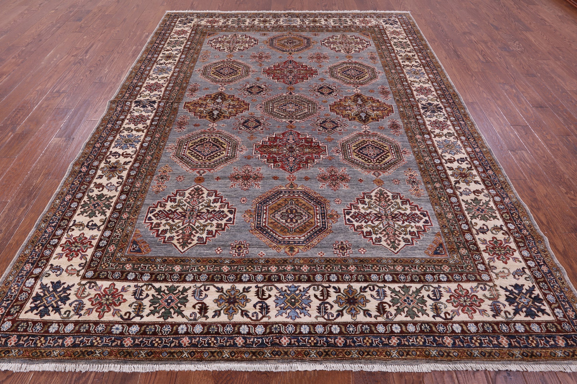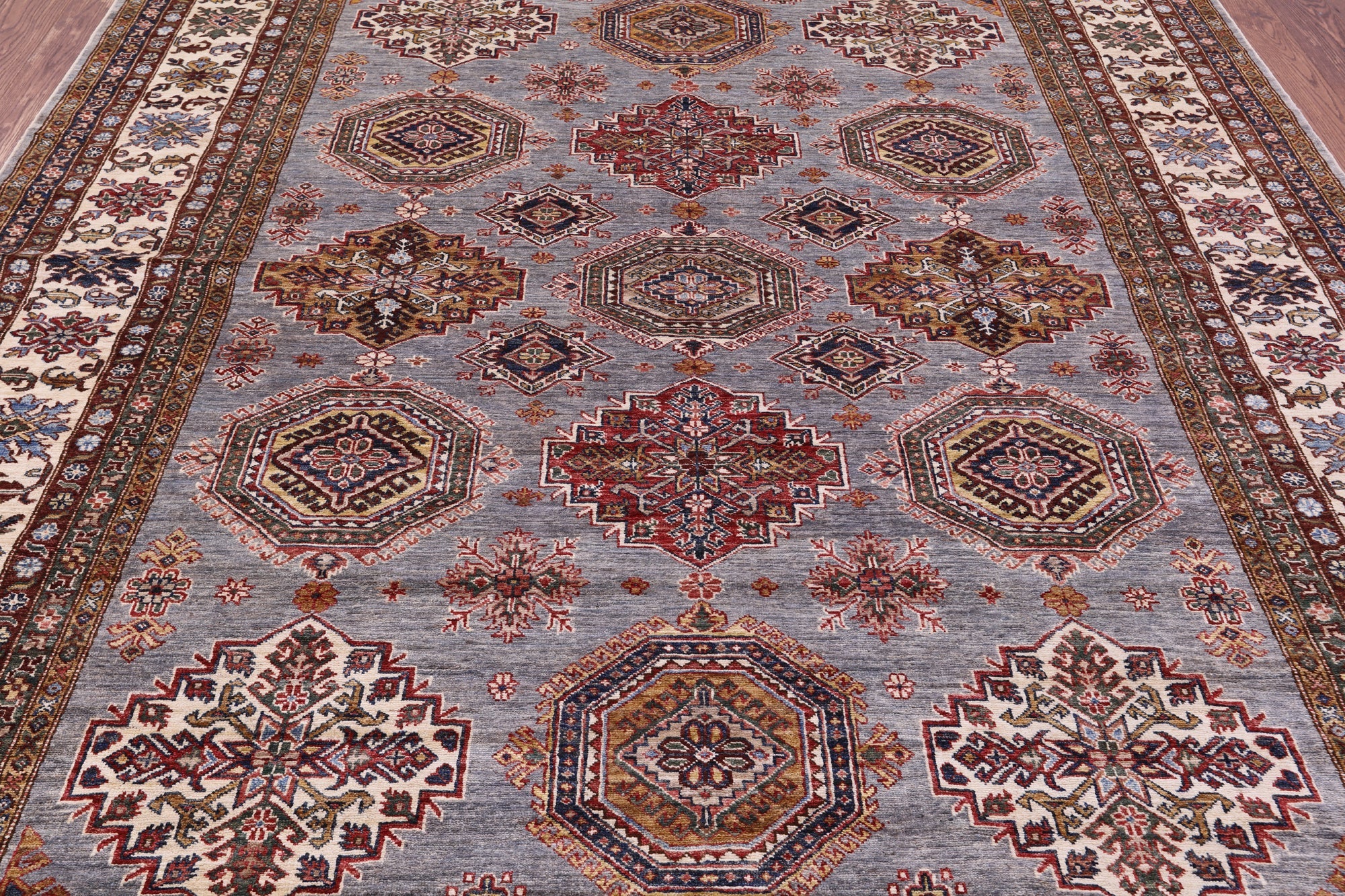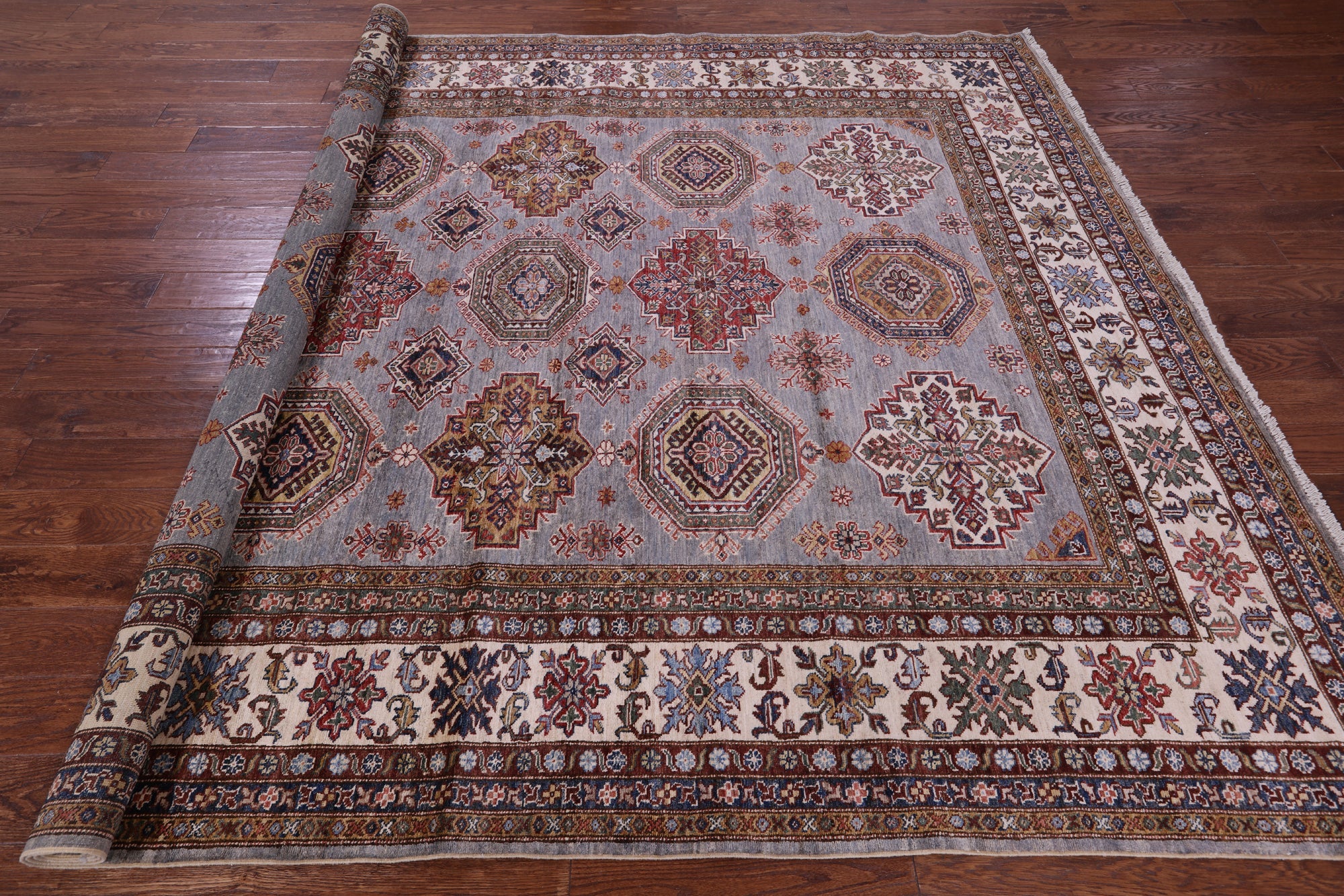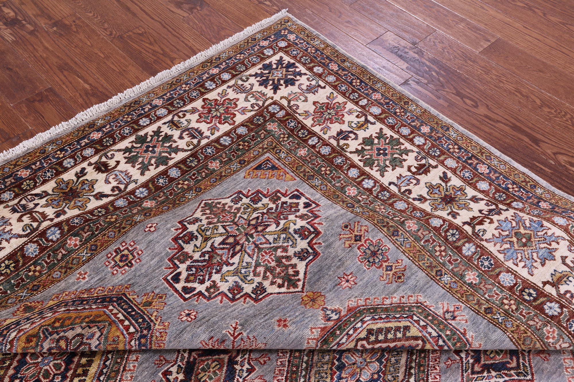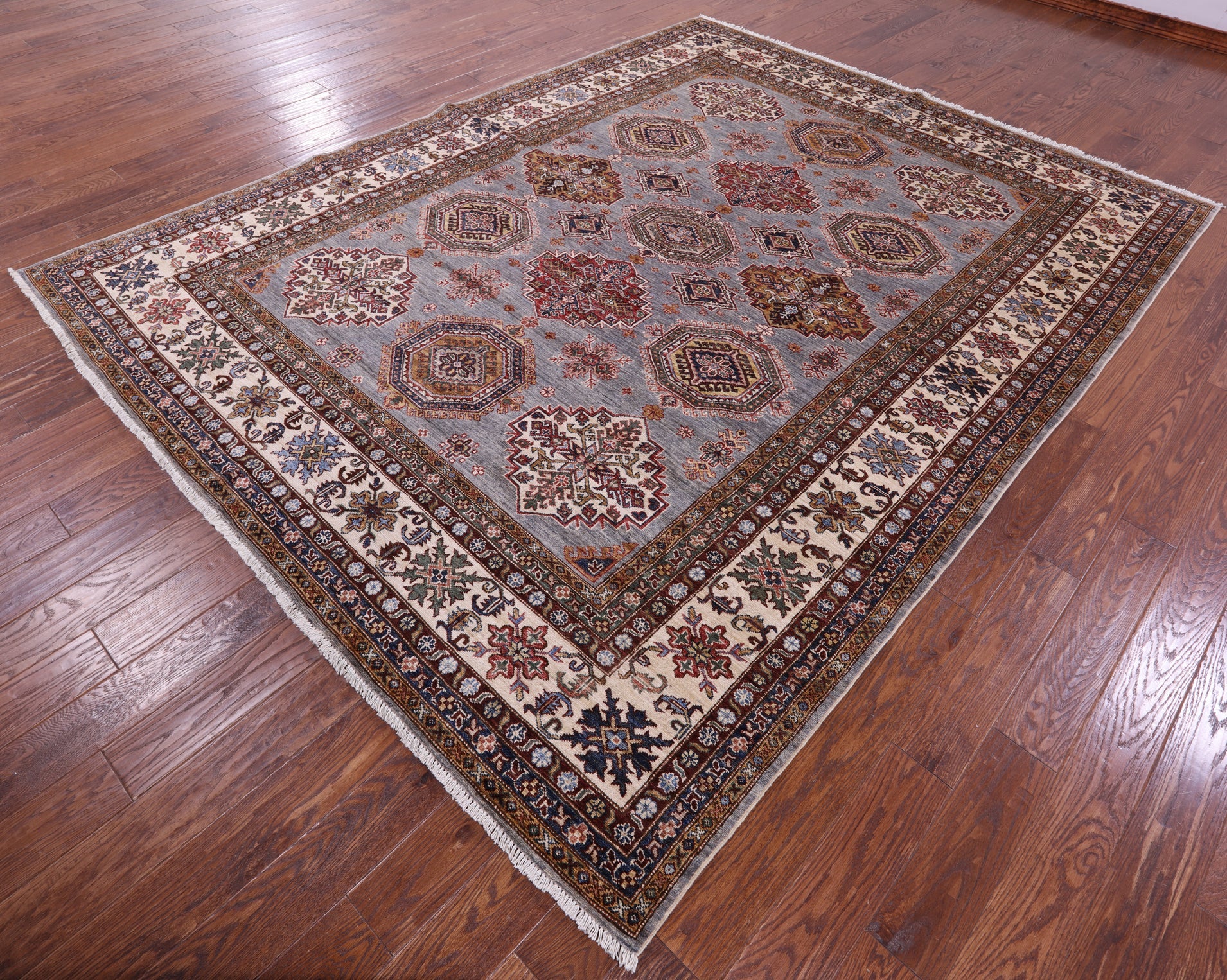 Grey Handmade Super Kazak Wool Rug 8' 2" X 10' 5" - Q22063 is backordered and will ship as soon as it is back in stock.