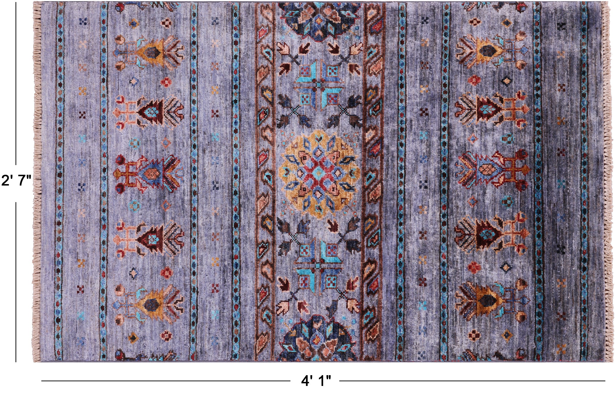 Grey 2' 7" X 4' 1" Khorjin Super Kazak Handmade Wool Rug - Q16538