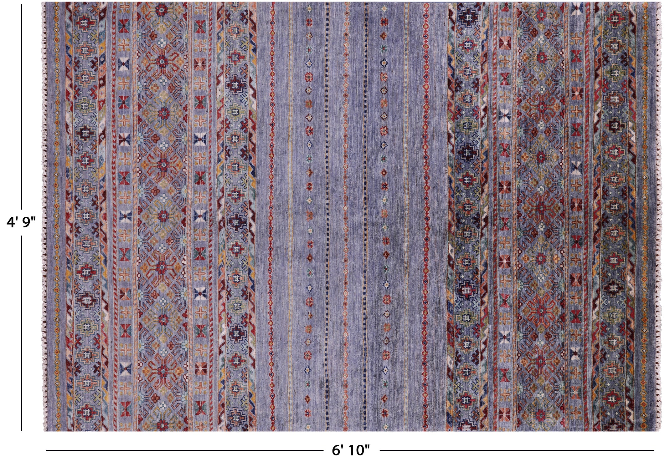 Grey 4' 9" X 6' 10" Khorjin Super Kazak Handmade Wool Rug - Q21053