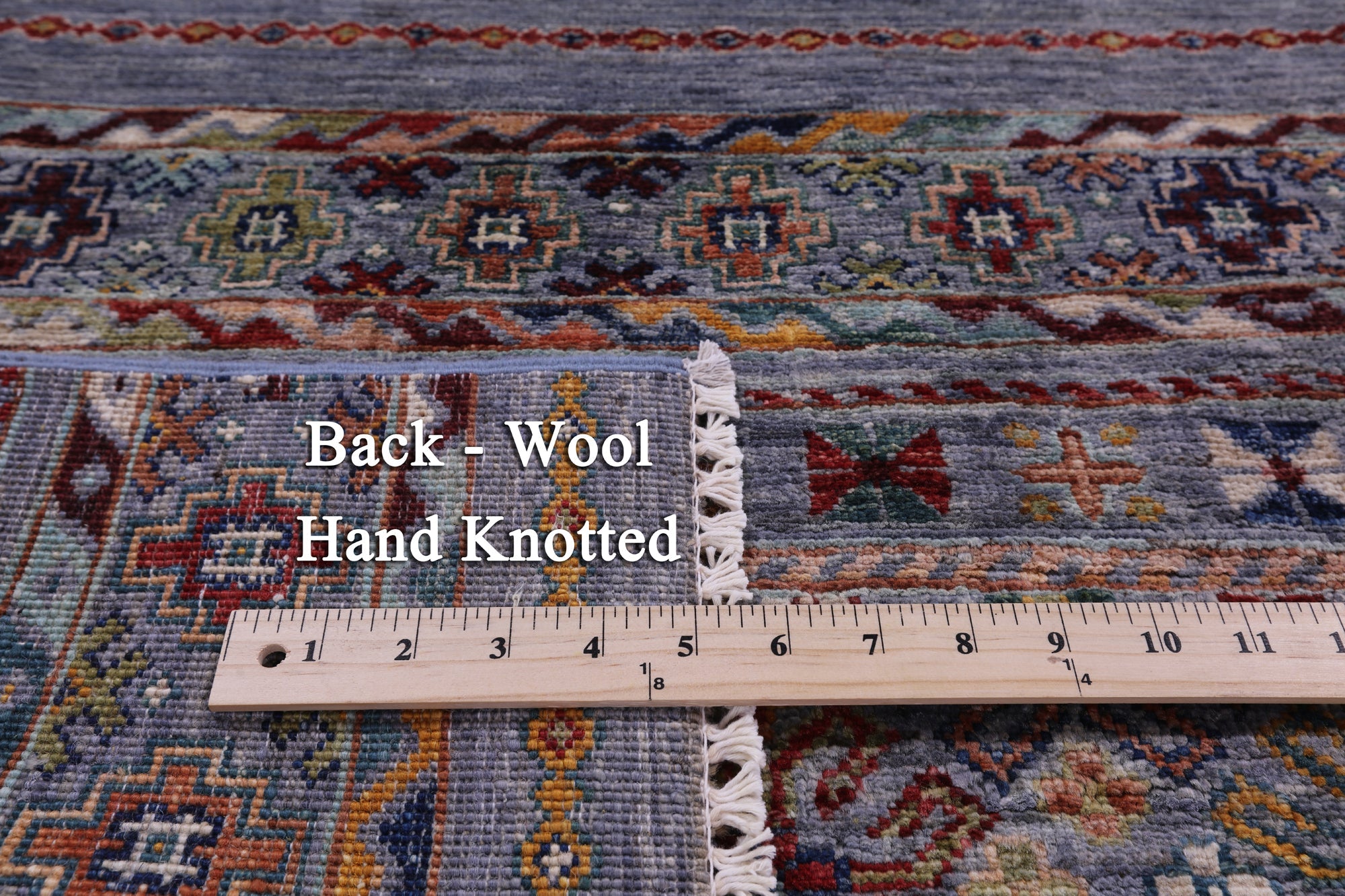Grey 4' 9" X 6' 10" Khorjin Super Kazak Handmade Wool Rug - Q21053 is backordered and will ship as soon as it is back in stock.