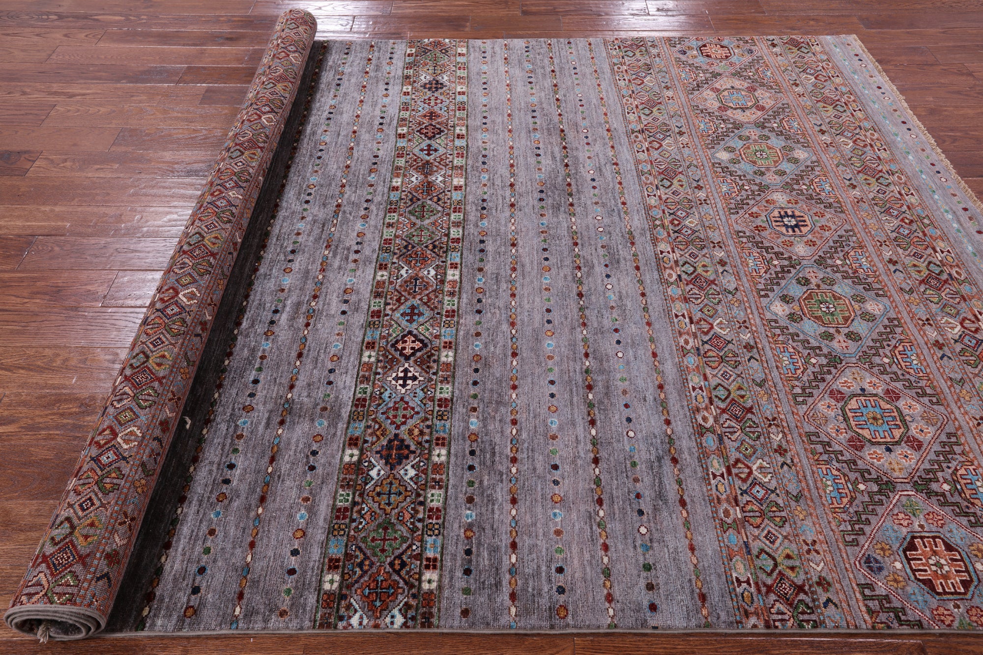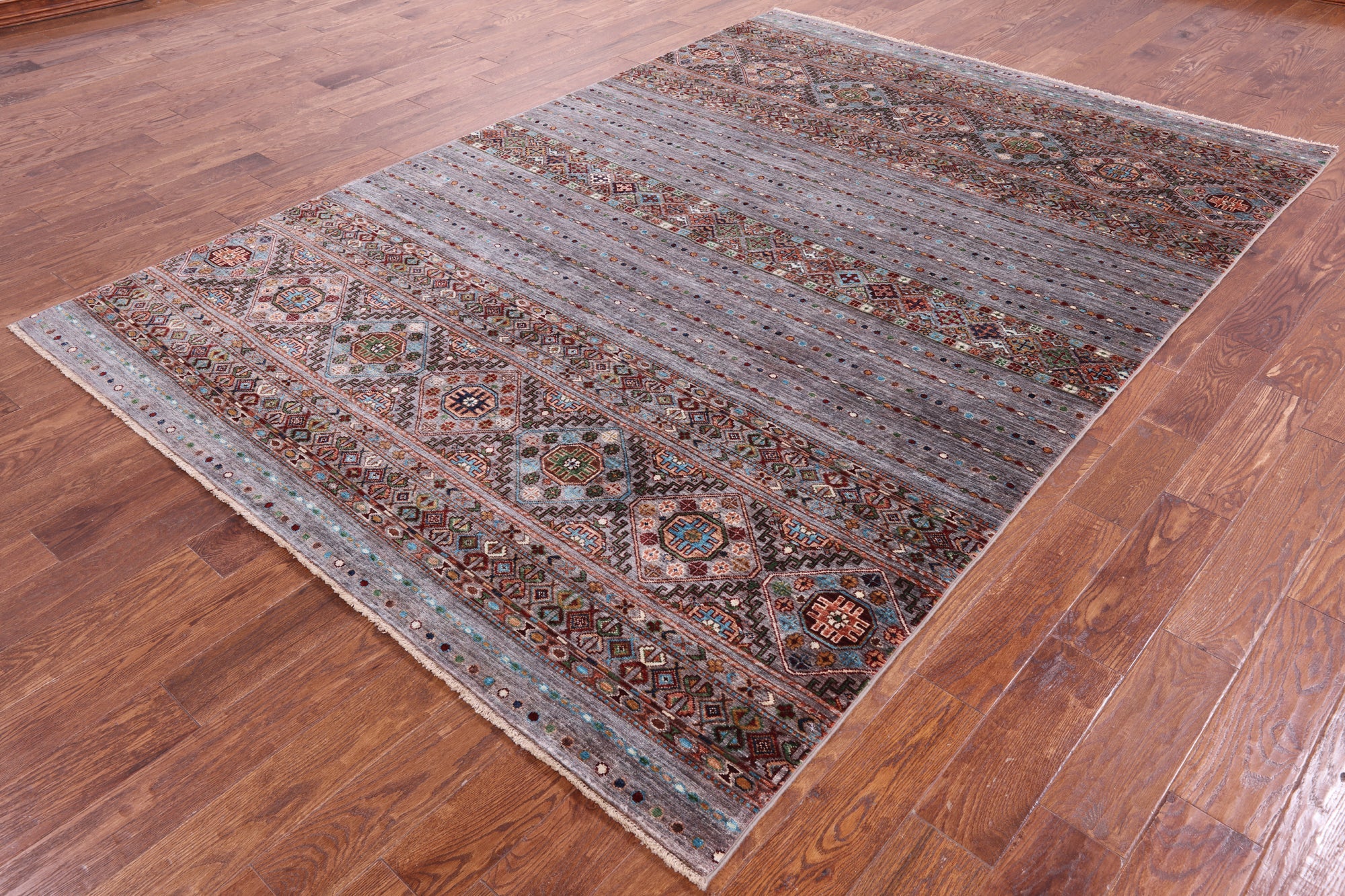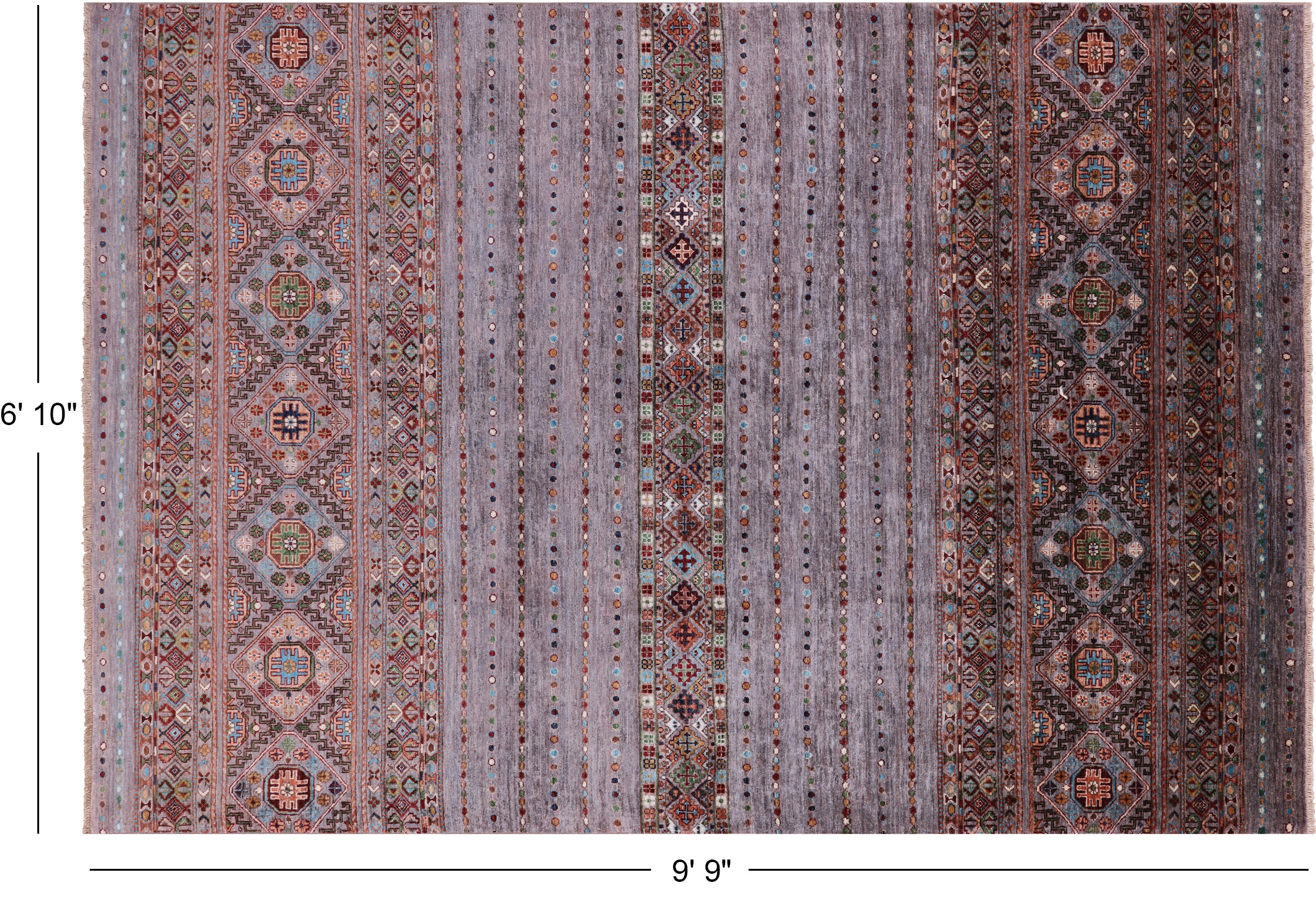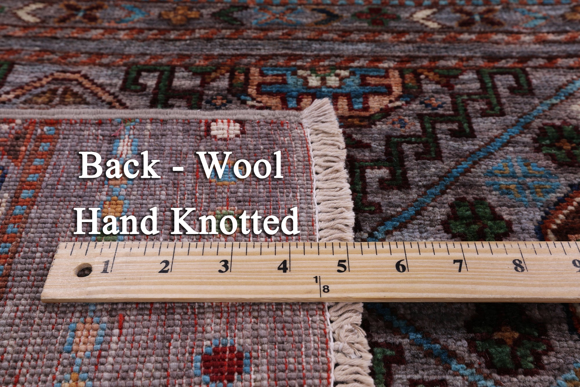 Grey 6' 10" X 9' 9" Khorjin Super Kazak Handmade Wool Rug - Q9886