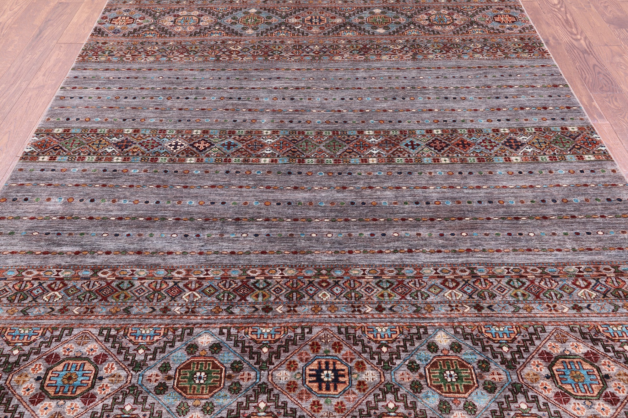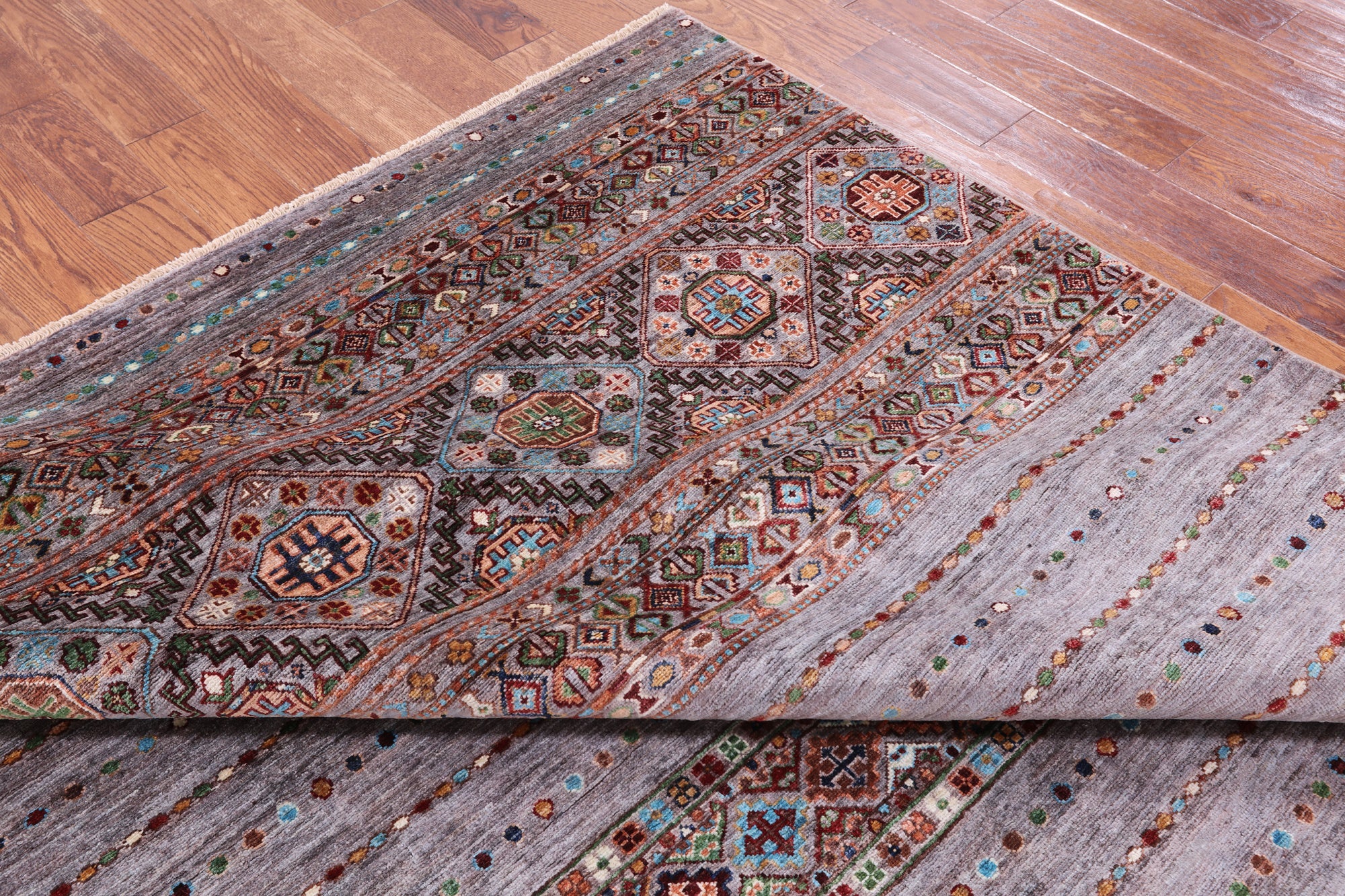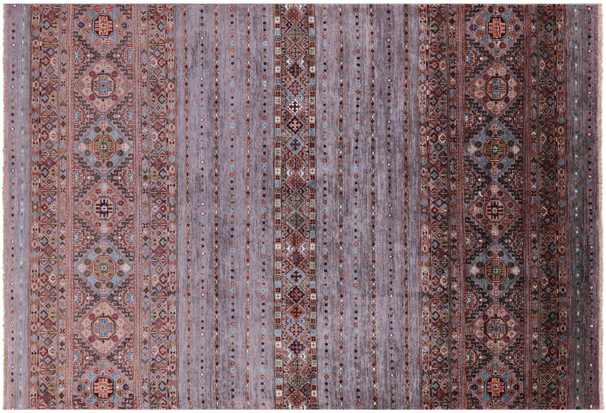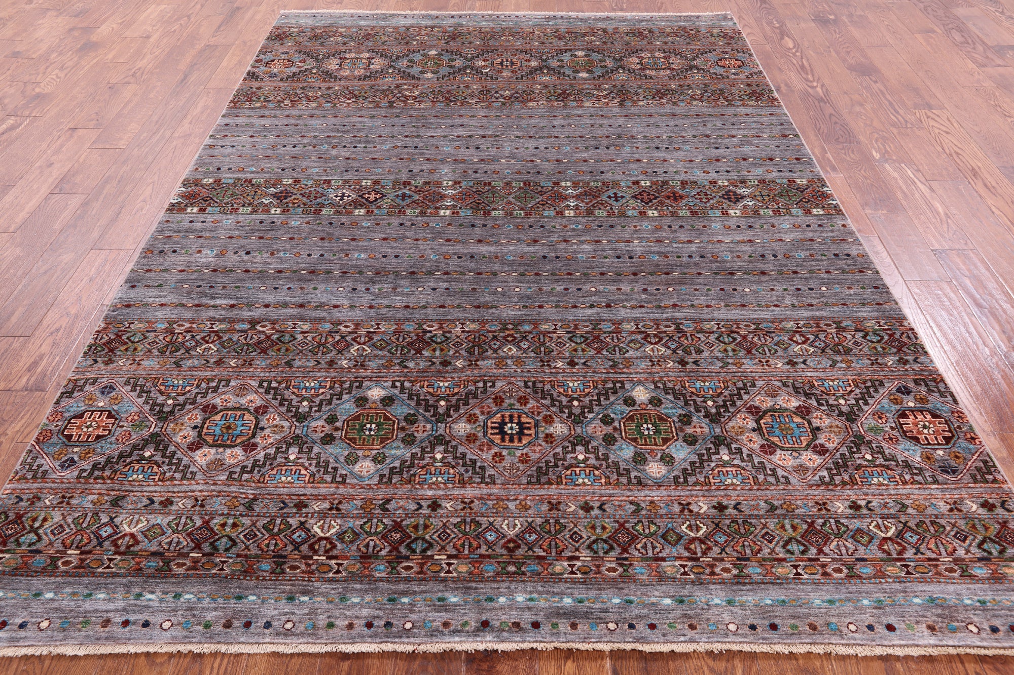 Grey 6' 10" X 9' 9" Khorjin Super Kazak Handmade Wool Rug - Q9886