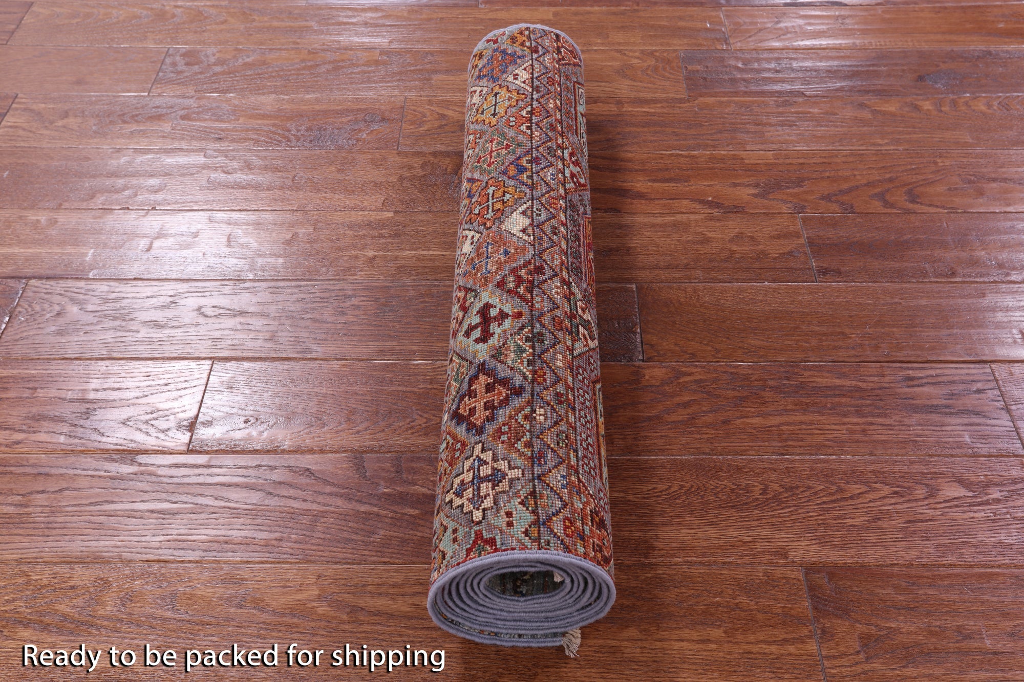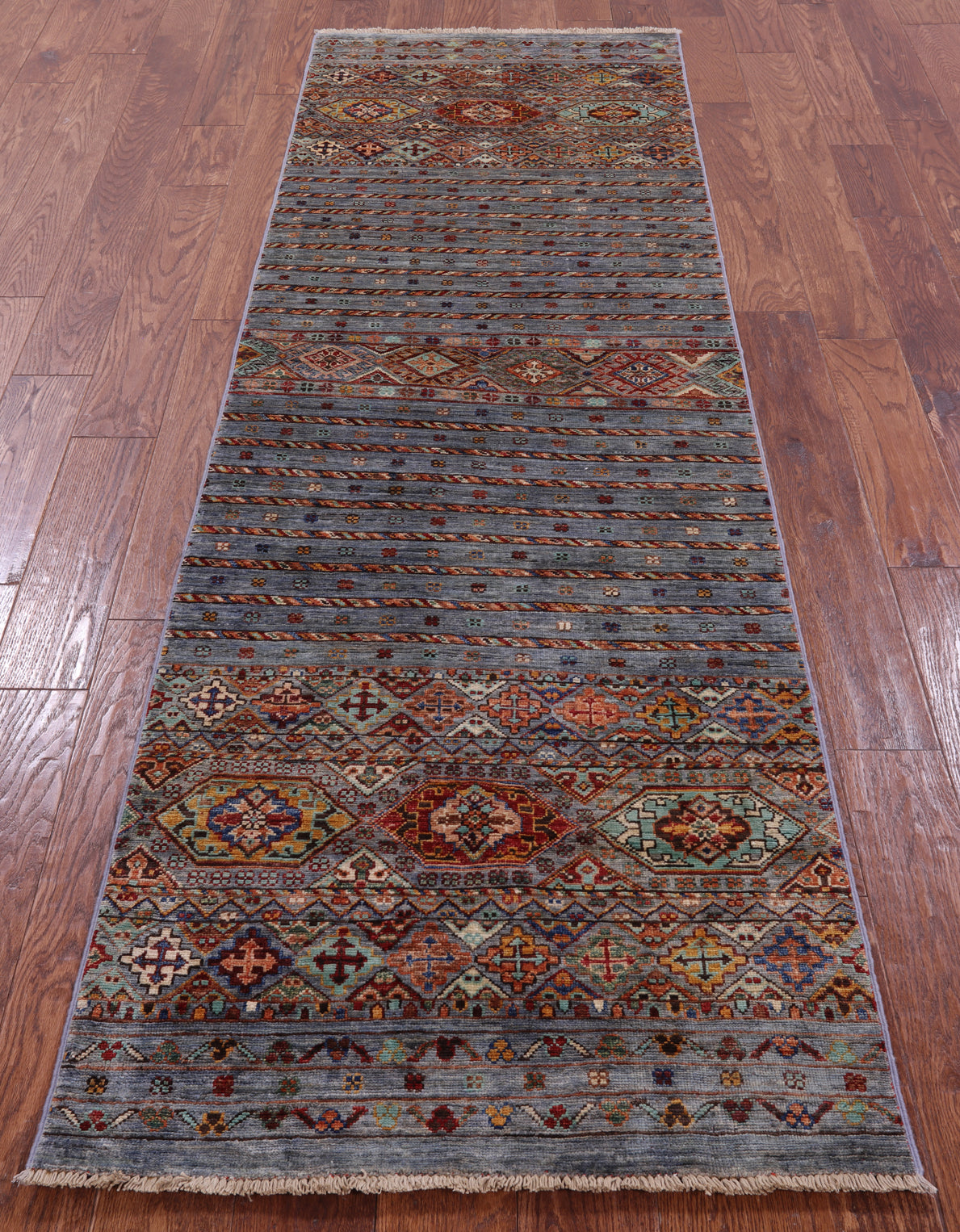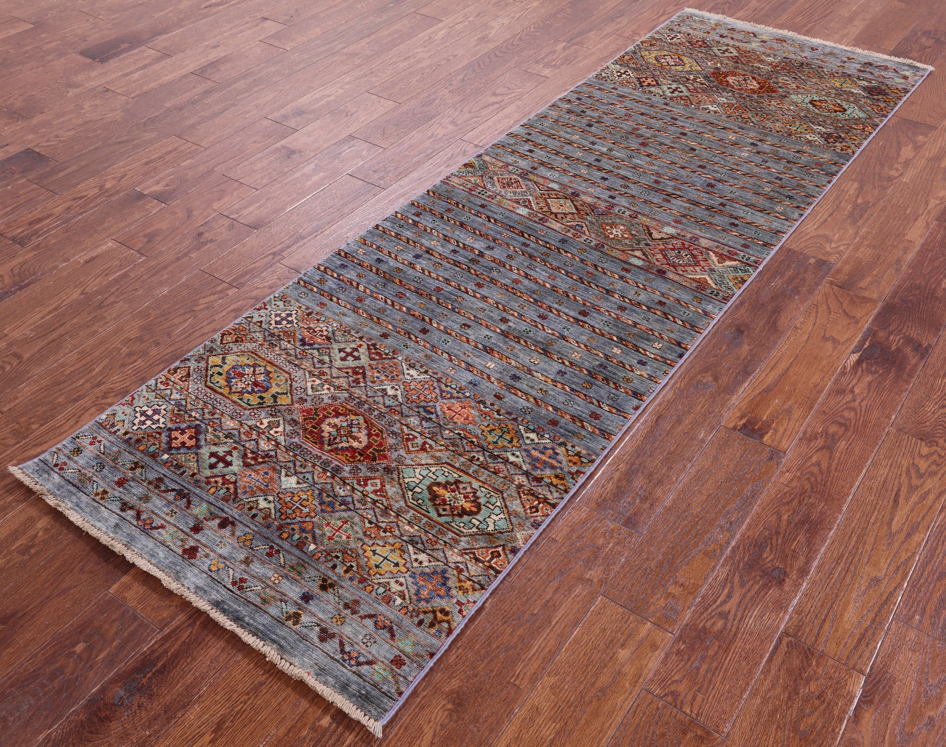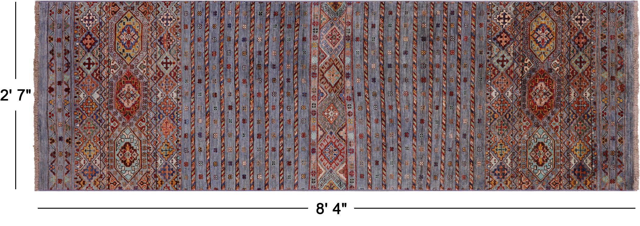 Grey 2' 7" X 8' 4" Khorjin Super Kazak Handmade Wool Runner Rug - Q14132 is backordered and will ship as soon as it is back in stock.
