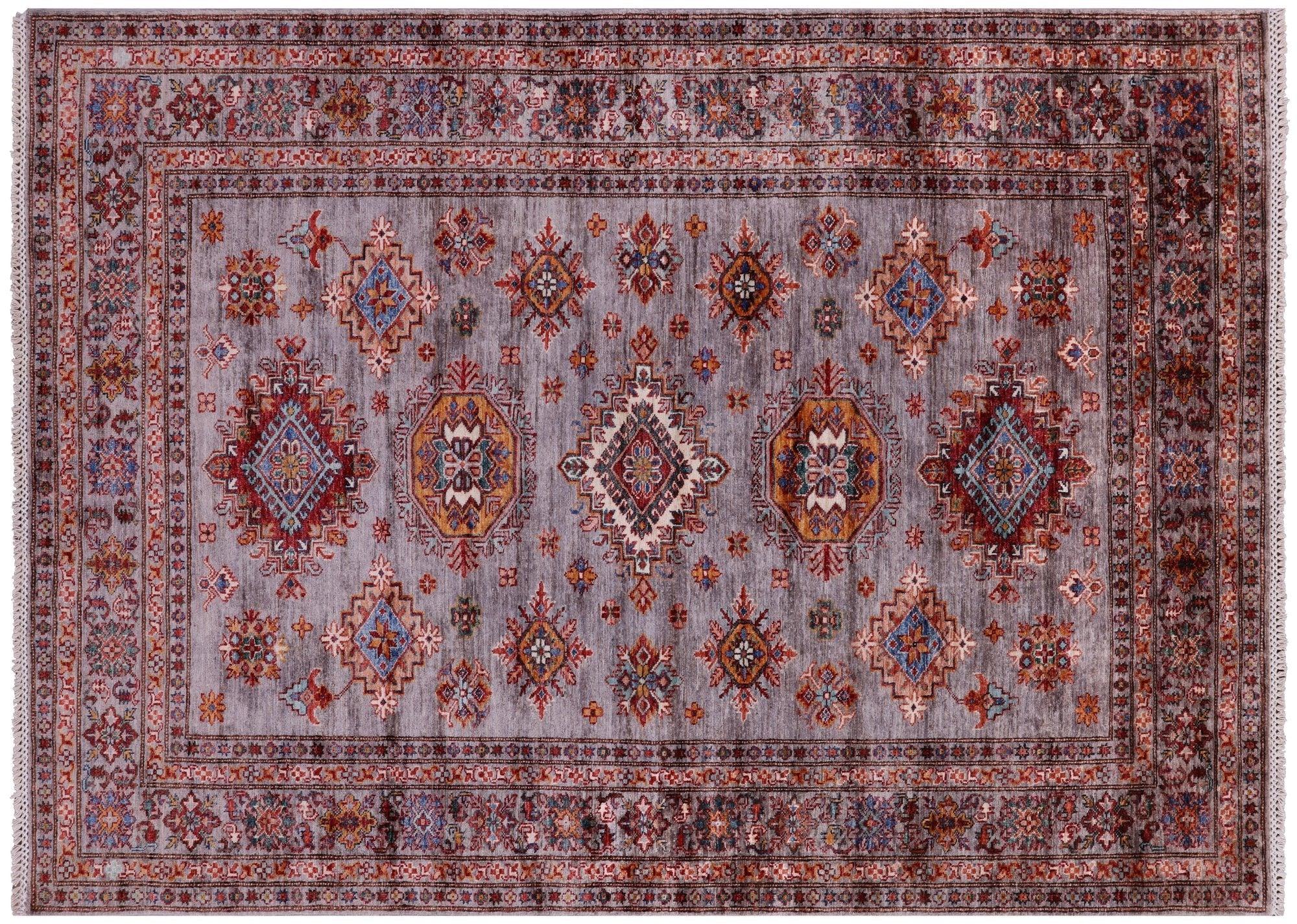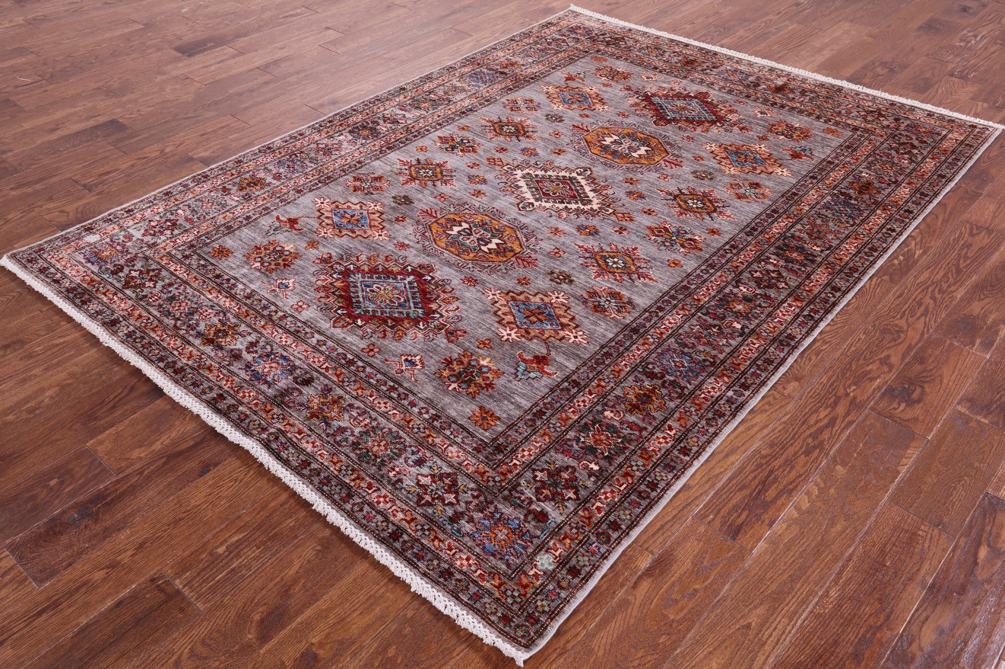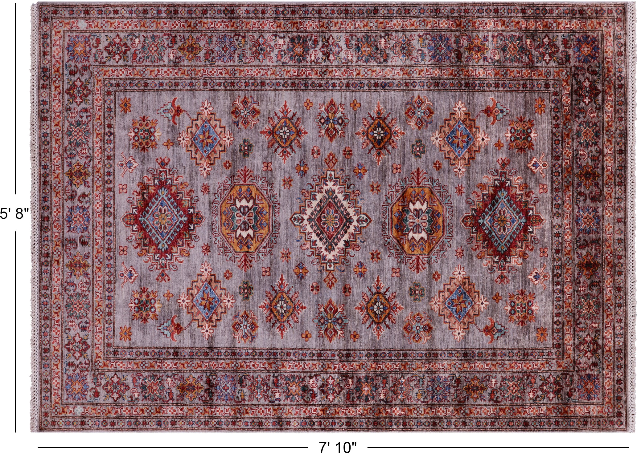 Grey Super Kazak Hand Knotted Wool Rug 5' 8" X 7' 10" - Q10256
