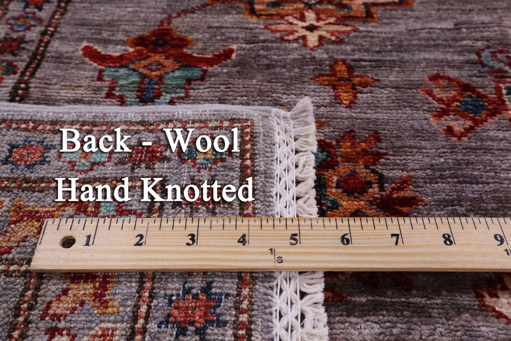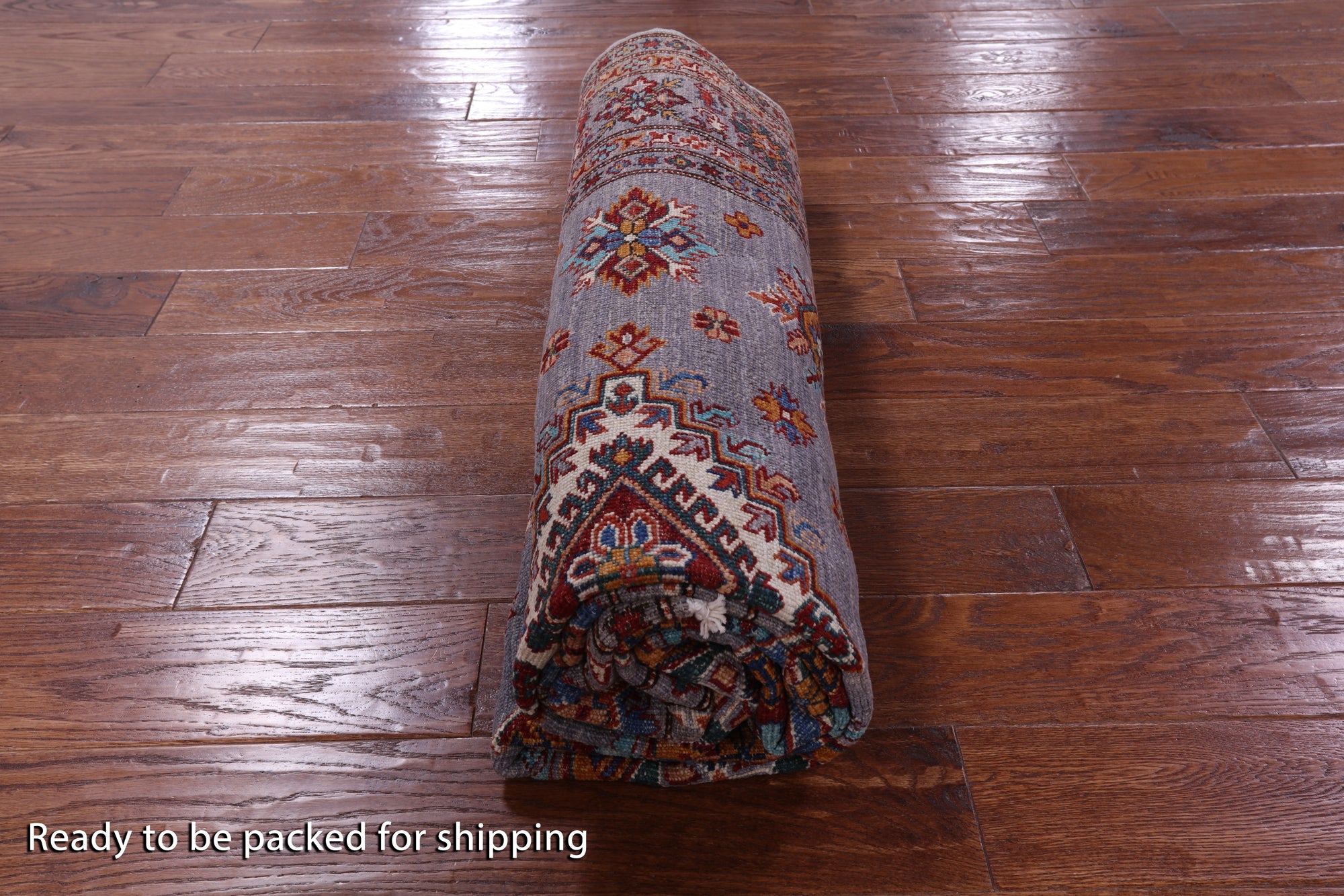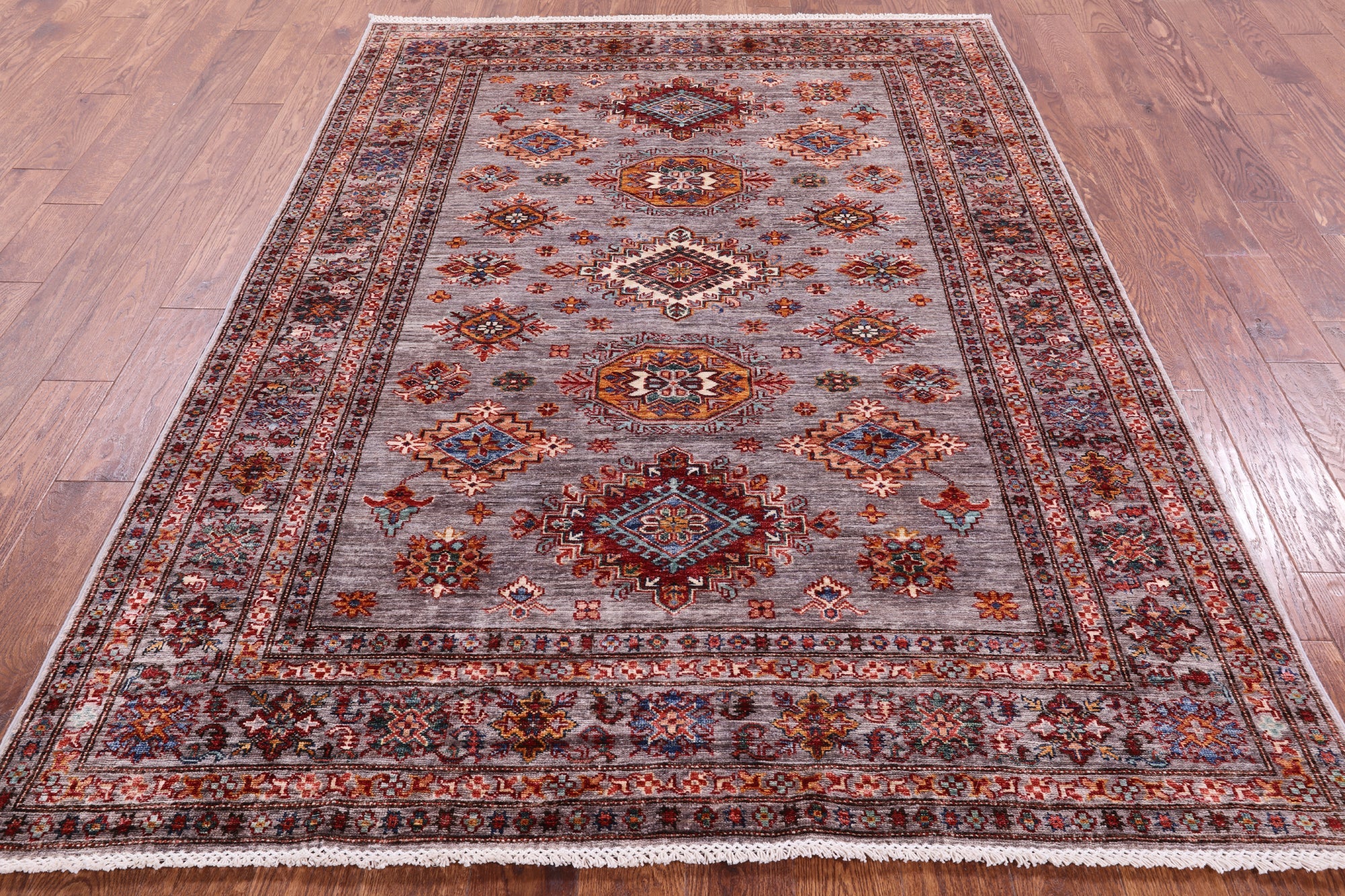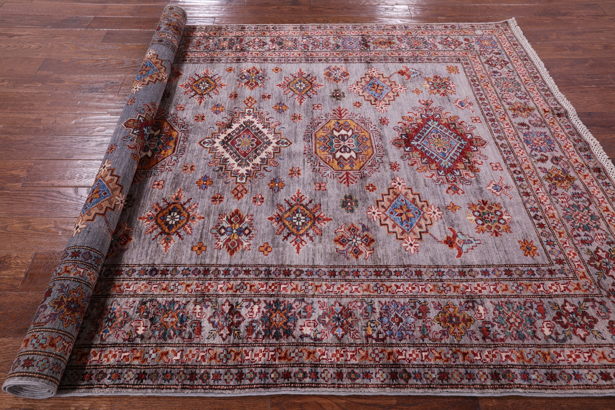 Grey Super Kazak Hand Knotted Wool Rug 5' 8" X 7' 10" - Q10256