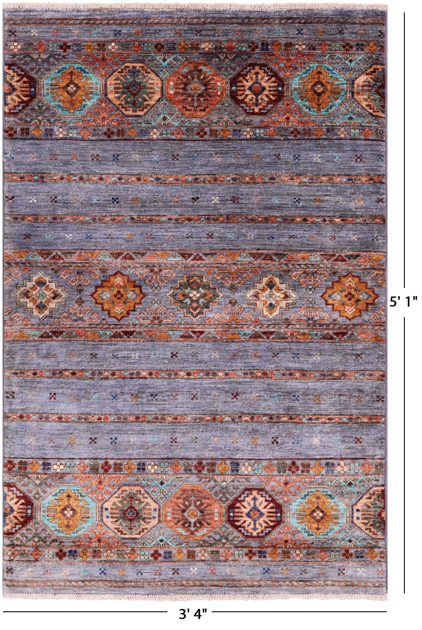 Grey Super Kazak Khorjin Hand Knotted Rug 3' 4" X 5' 1" - Q17797 is backordered and will ship as soon as it is back in stock.